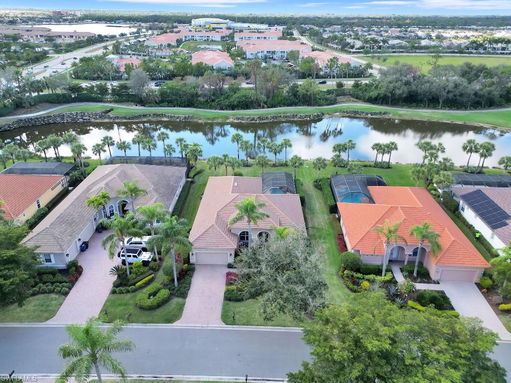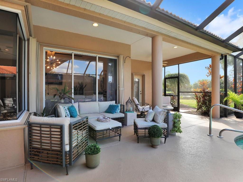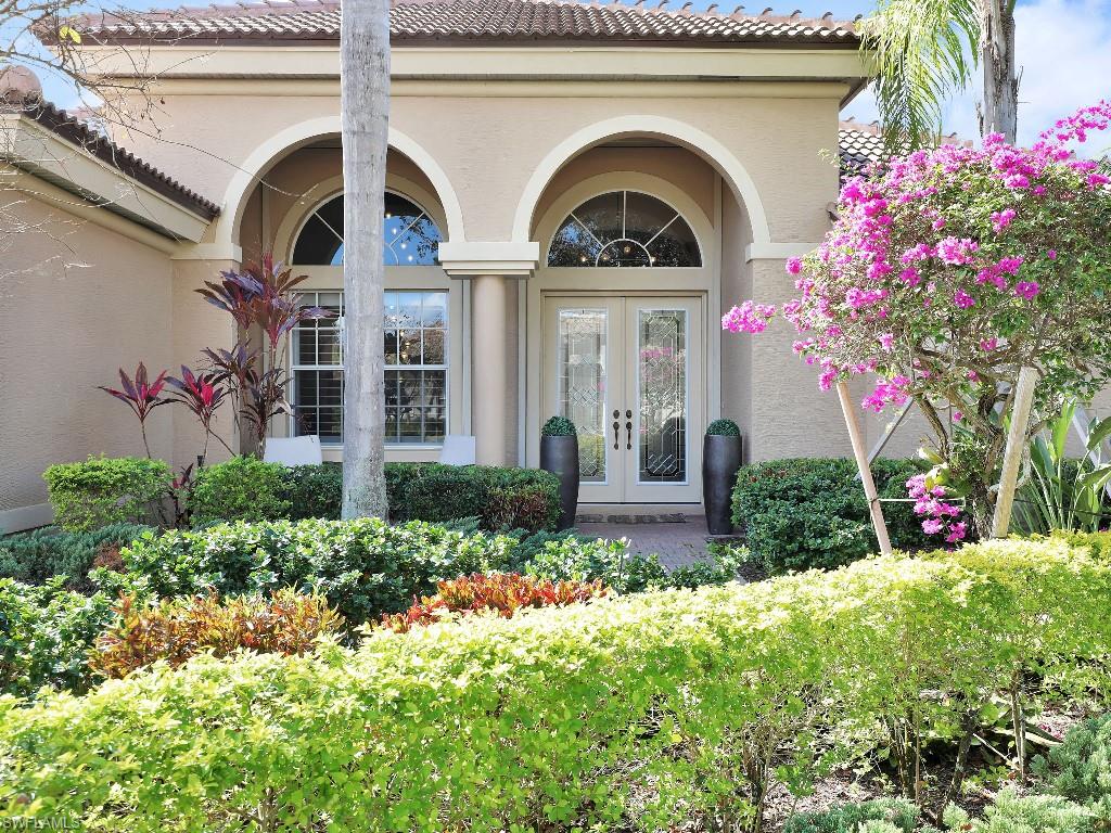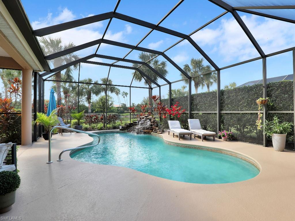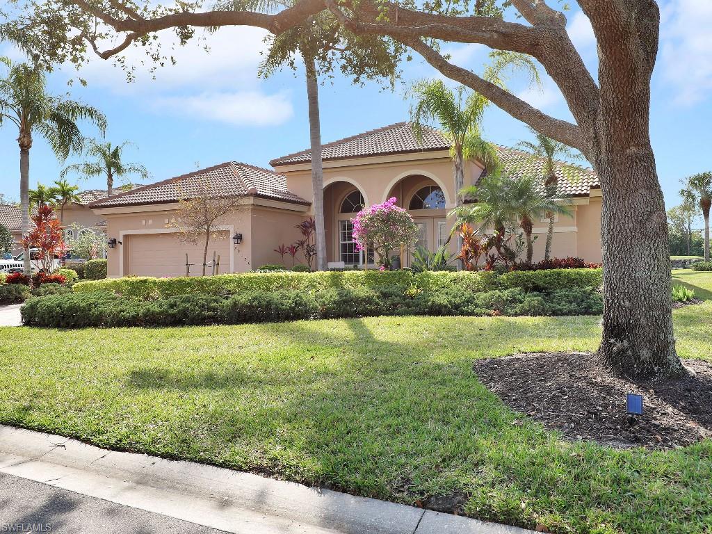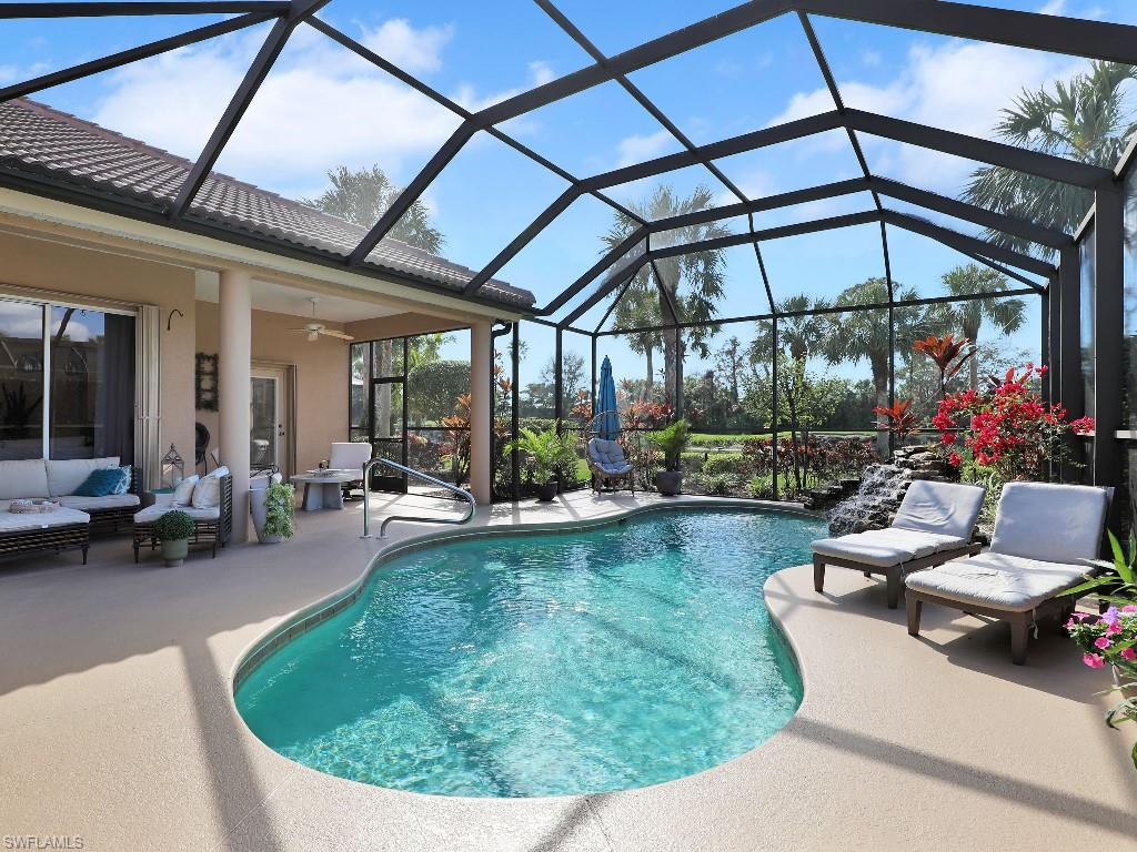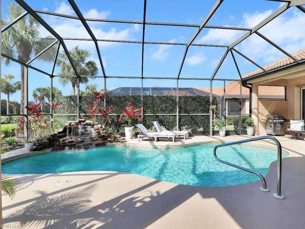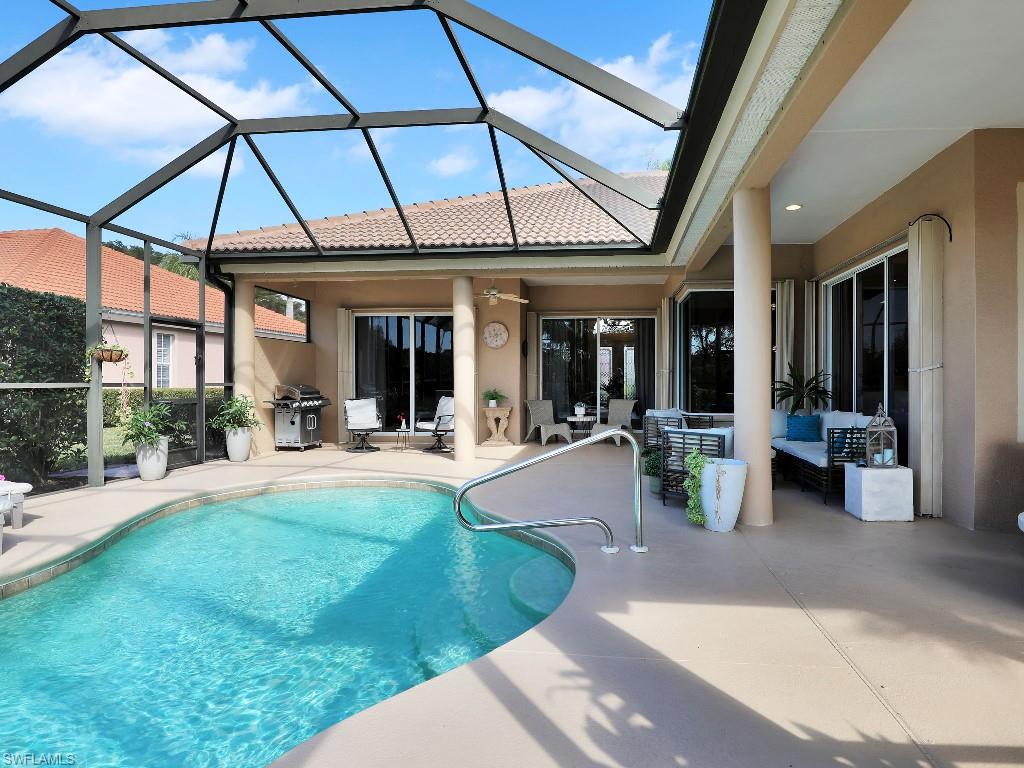 This beautiful home is located in Grandezza Golf and Country Club in the prestigious Cypress Cove neighborhood. This model has an open floor plan with split bedrooms and stunning lake and golf course views. This home features 4 bedrooms, 3 bathrooms, and a 2 car garage. The spacious living room has high ceilings with sliding glass doors that open to the pool area. The formal dining room has high coffered ceilings. The large kitchen has white cabinets, granite countertops, stainless steel appliances, and pantry. Enjoy the beautiful views from the cozy breakfast nook area! The family room has coffered ceilings, and a sliding door to the lanai. The spacious master suite has his/her walk in closets, coffered ceilings, and sliding glass doors that open to the pool area. The master bathroom has a garden tub, dual sinks, and a separate shower. The guest rooms are generously sized. The outdoor oasis offers views to the lake, golf course, and a gorgeous landscaping. This home is perfect for entertaining! All bedrooms have been updated with COREtec flooring, new inside paint, new light fixtures, and ceiling fans. The roof was replaced in 2022. This home has plantation shutters, electric and accordion shutters, and a screened lanai. Grandezza features resort style amenities including pool/ spa, clubhouse with casual and fine dining, newly renovated gym and fitness studio, bocce ball, tennis courts, full service poolside cabana, and a private 18-hole championship golf course. Amazing location close to the airport, shopping, restaurants, Hertz arena, and next to FGCU. Schedule your private showing today!