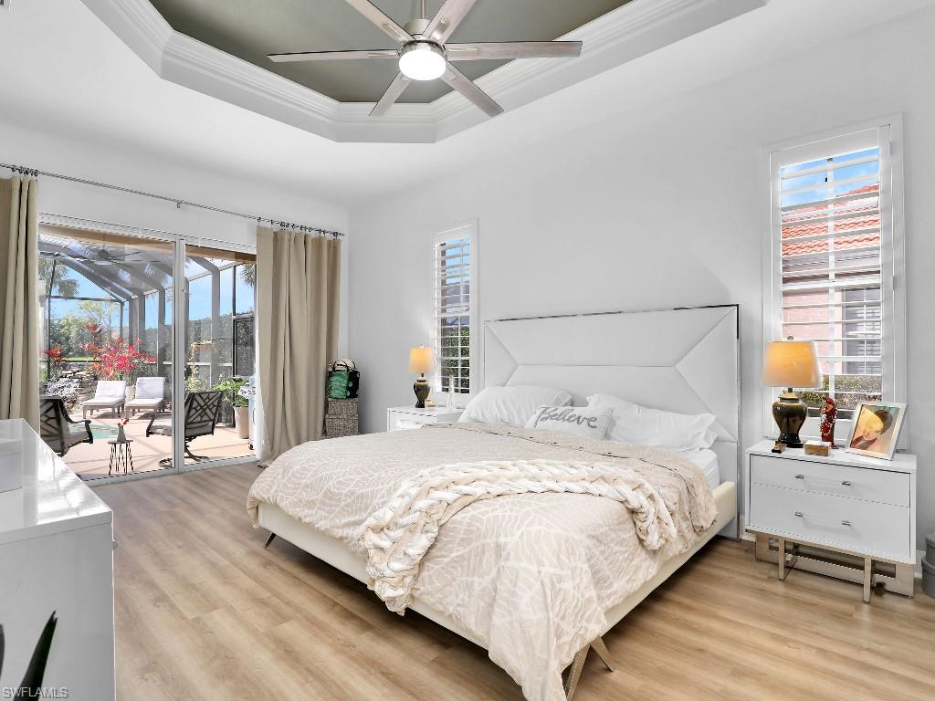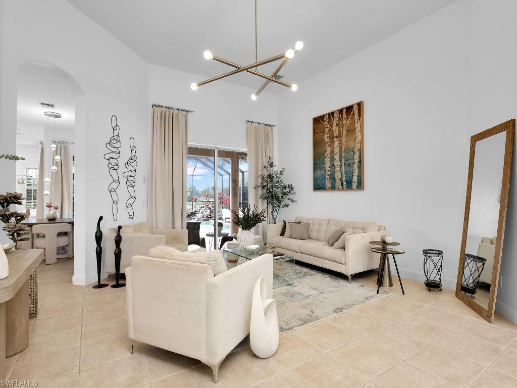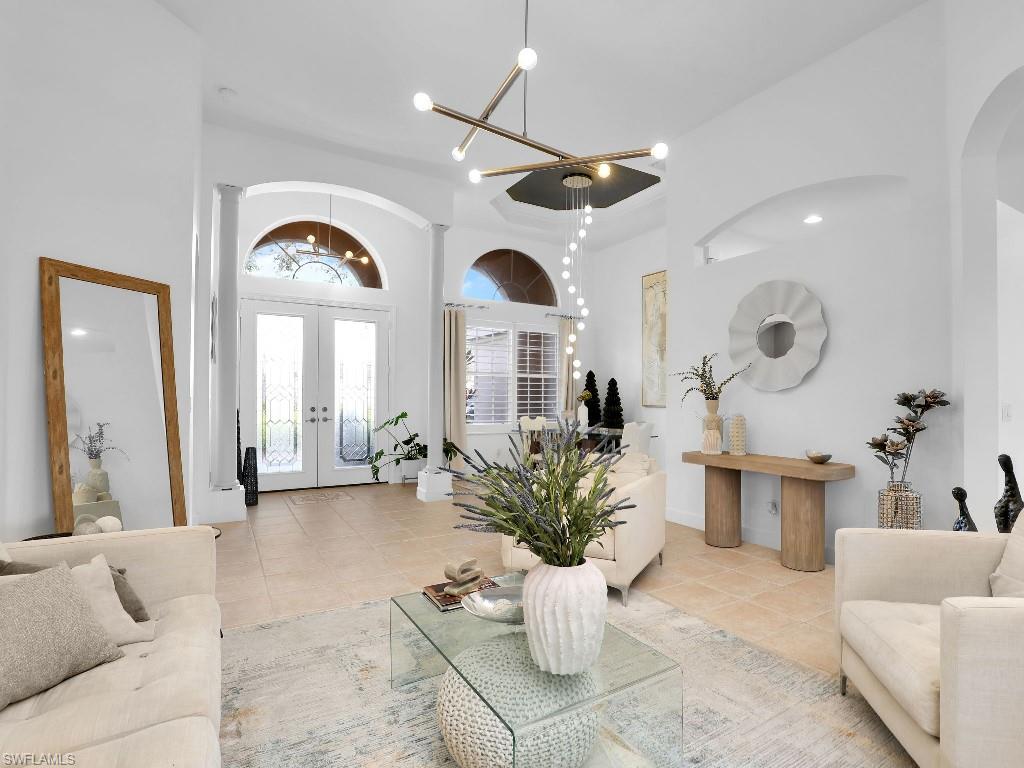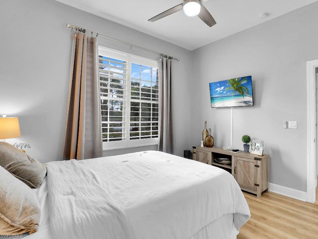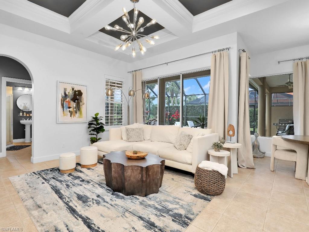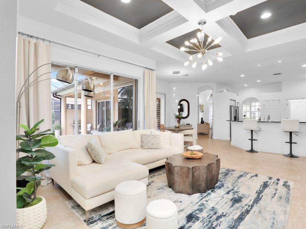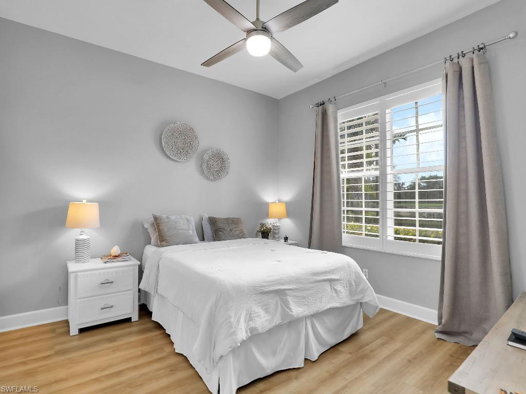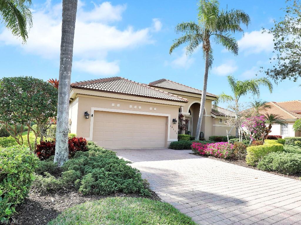 This beautiful home is located in Grandezza Golf and Country Club in the prestigious Cypress Cove neighborhood. This model has an open floor plan with split bedrooms and stunning lake and golf course views. This home features 4 bedrooms, 3 bathrooms, and a 2 car garage. The spacious living room has high ceilings with sliding glass doors that open to the pool area. The formal dining room has high coffered ceilings. The large kitchen has white cabinets, granite countertops, stainless steel appliances, and pantry. Enjoy the beautiful views from the cozy breakfast nook area! The family room has coffered ceilings, and a sliding door to the lanai. The spacious master suite has his/her walk in closets, coffered ceilings, and sliding glass doors that open to the pool area. The master bathroom has a garden tub, dual sinks, and a separate shower. The guest rooms are generously sized. The outdoor oasis offers views to the lake, golf course, and a gorgeous landscaping. This home is perfect for entertaining! All bedrooms have been updated with COREtec flooring, new inside paint, new light fixtures, and ceiling fans. The roof was replaced in 2022. This home has plantation shutters, electric and accordion shutters, and a screened lanai. Grandezza features resort style amenities including pool/ spa, clubhouse with casual and fine dining, newly renovated gym and fitness studio, bocce ball, tennis courts, full service poolside cabana, and a private 18-hole championship golf course. Amazing location close to the airport, shopping, restaurants, Hertz arena, and next to FGCU. Schedule your private showing today!
