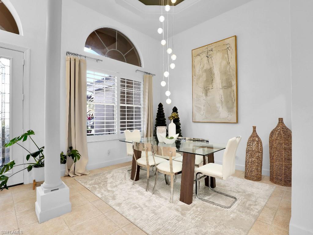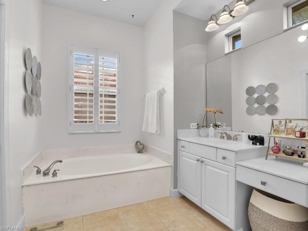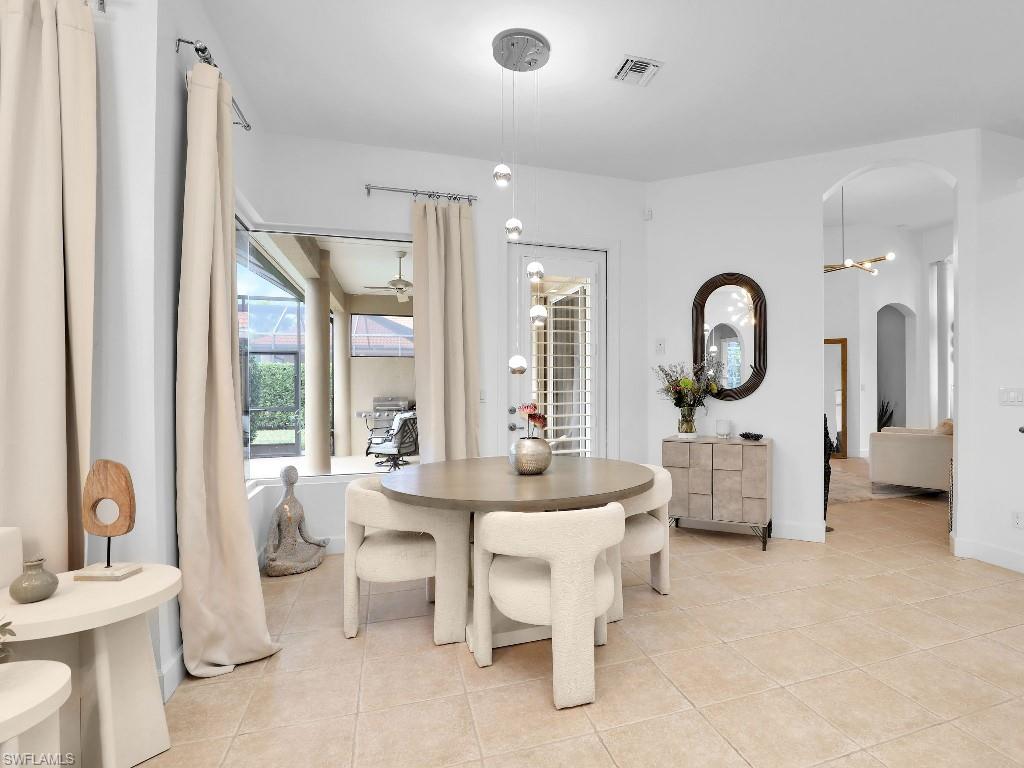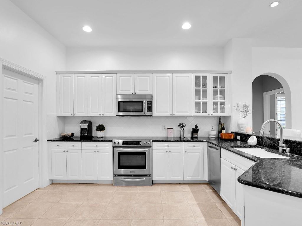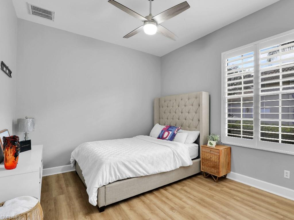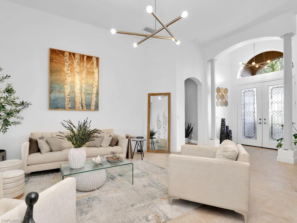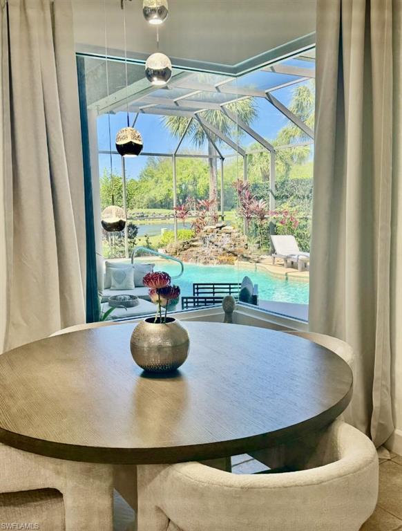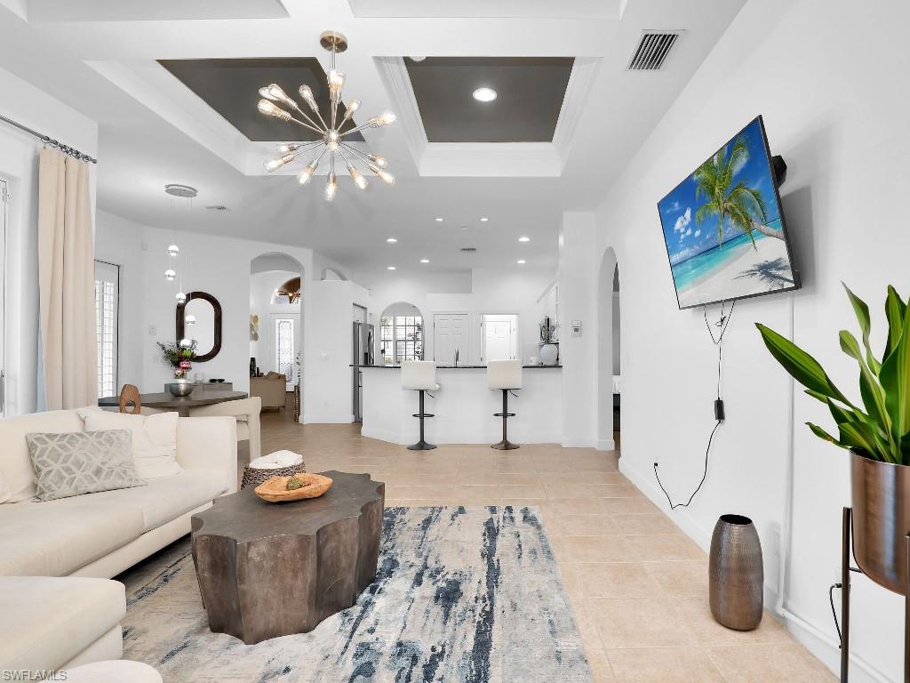 This beautiful home is located in Grandezza Golf and Country Club in the prestigious Cypress Cove neighborhood. This model has an open floor plan with split bedrooms and stunning lake and golf course views. This home features 4 bedrooms, 3 bathrooms, and a 2 car garage. The spacious living room has high ceilings with sliding glass doors that open to the pool area. The formal dining room has high coffered ceilings. The large kitchen has white cabinets, granite countertops, stainless steel appliances, and pantry. Enjoy the beautiful views from the cozy breakfast nook area! The family room has coffered ceilings, and a sliding door to the lanai. The spacious master suite has his/her walk in closets, coffered ceilings, and sliding glass doors that open to the pool area. The master bathroom has a garden tub, dual sinks, and a separate shower. The guest rooms are generously sized. The outdoor oasis offers views to the lake, golf course, and a gorgeous landscaping. This home is perfect for entertaining! All bedrooms have been updated with COREtec flooring, new inside paint, new light fixtures, and ceiling fans. The roof was replaced in 2022. This home has plantation shutters, electric and accordion shutters, and a screened lanai. Grandezza features resort style amenities including pool/ spa, clubhouse with casual and fine dining, newly renovated gym and fitness studio, bocce ball, tennis courts, full service poolside cabana, and a private 18-hole championship golf course. Amazing location close to the airport, shopping, restaurants, Hertz arena, and next to FGCU. Schedule your private showing today!