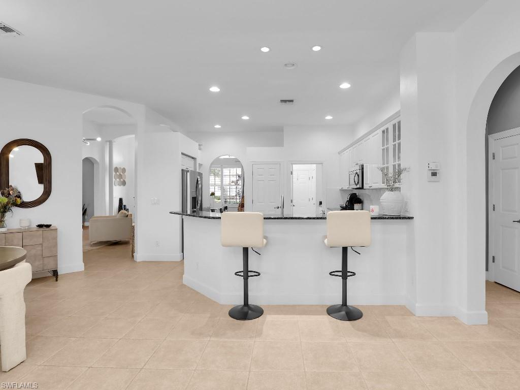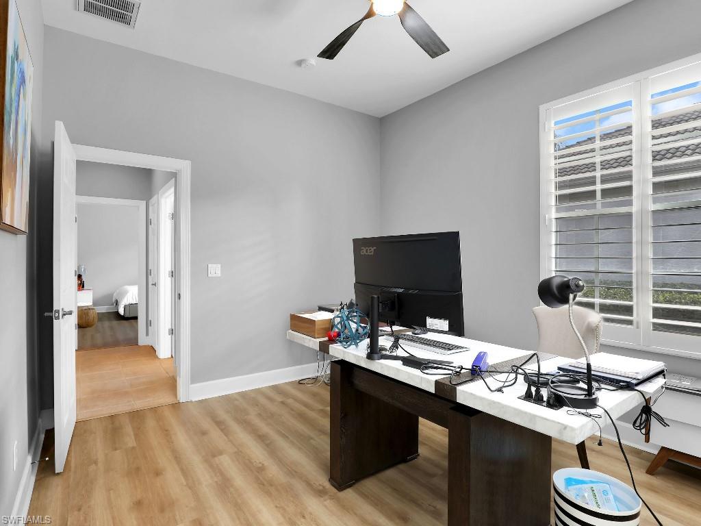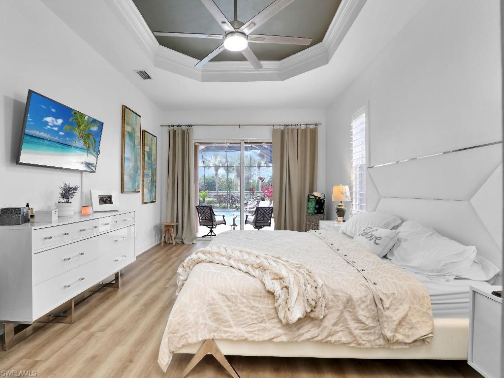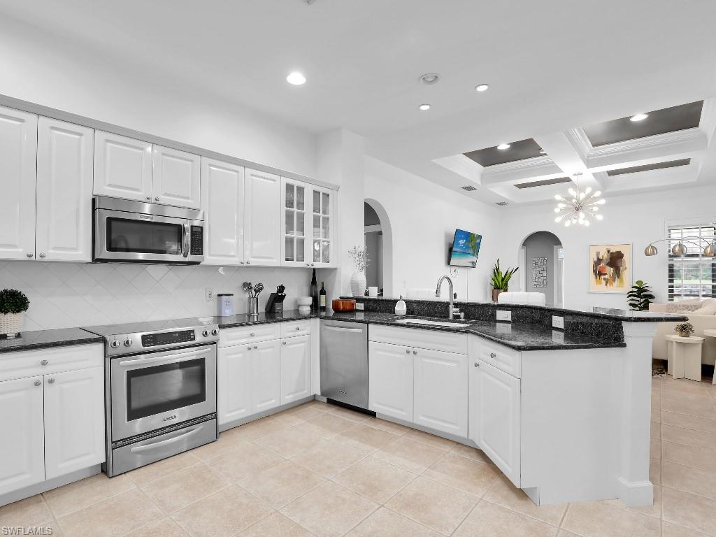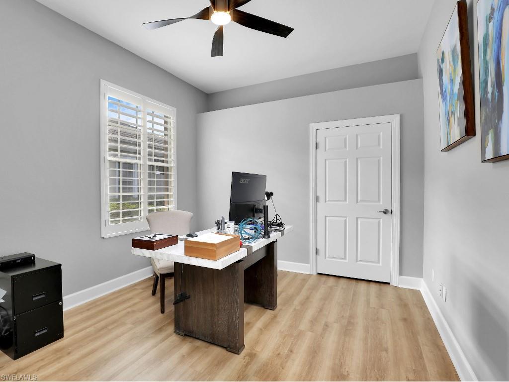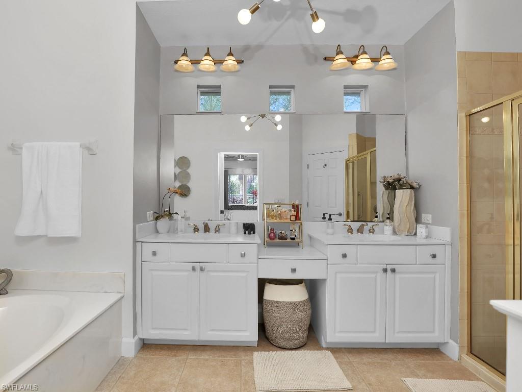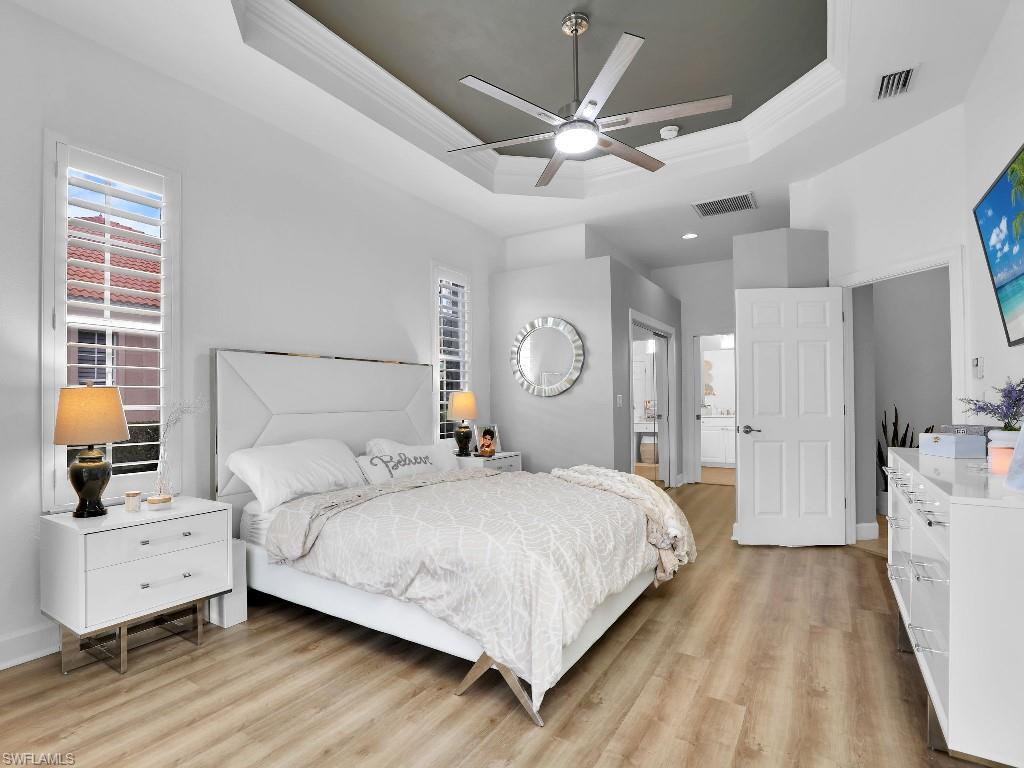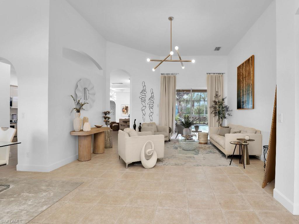 This beautiful home is located in Grandezza Golf and Country Club in the prestigious Cypress Cove neighborhood. This model has an open floor plan with split bedrooms and stunning lake and golf course views. This home features 4 bedrooms, 3 bathrooms, and a 2 car garage. The spacious living room has high ceilings with sliding glass doors that open to the pool area. The formal dining room has high coffered ceilings. The large kitchen has white cabinets, granite countertops, stainless steel appliances, and pantry. Enjoy the beautiful views from the cozy breakfast nook area! The family room has coffered ceilings, and a sliding door to the lanai. The spacious master suite has his/her walk in closets, coffered ceilings, and sliding glass doors that open to the pool area. The master bathroom has a garden tub, dual sinks, and a separate shower. The guest rooms are generously sized. The outdoor oasis offers views to the lake, golf course, and a gorgeous landscaping. This home is perfect for entertaining! All bedrooms have been updated with COREtec flooring, new inside paint, new light fixtures, and ceiling fans. The roof was replaced in 2022. This home has plantation shutters, electric and accordion shutters, and a screened lanai. Grandezza features resort style amenities including pool/ spa, clubhouse with casual and fine dining, newly renovated gym and fitness studio, bocce ball, tennis courts, full service poolside cabana, and a private 18-hole championship golf course. Amazing location close to the airport, shopping, restaurants, Hertz arena, and next to FGCU. Schedule your private showing today!