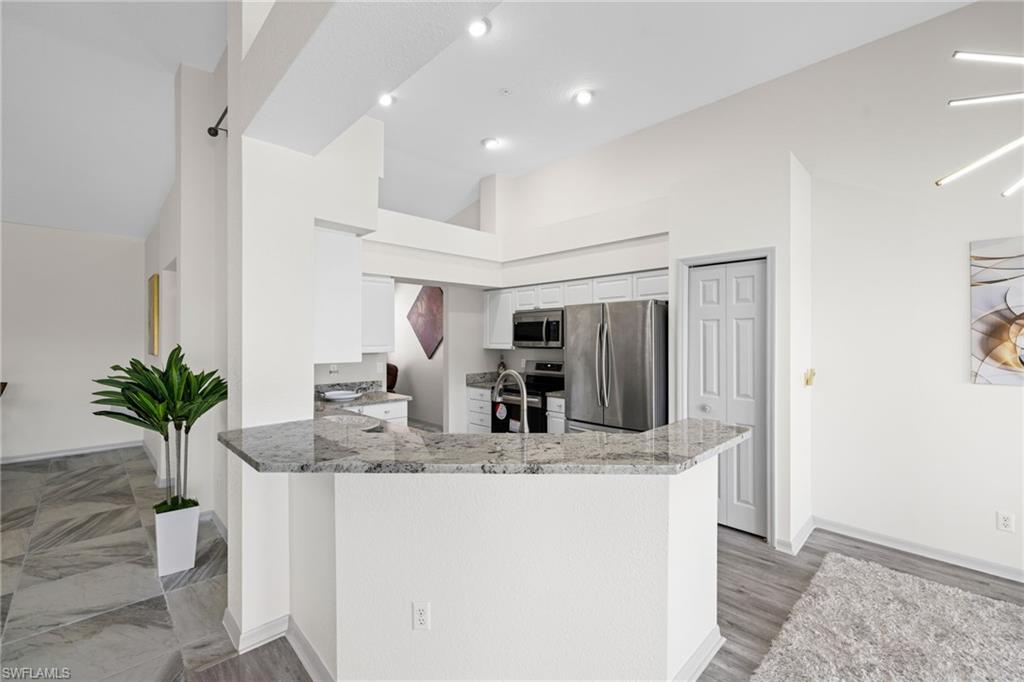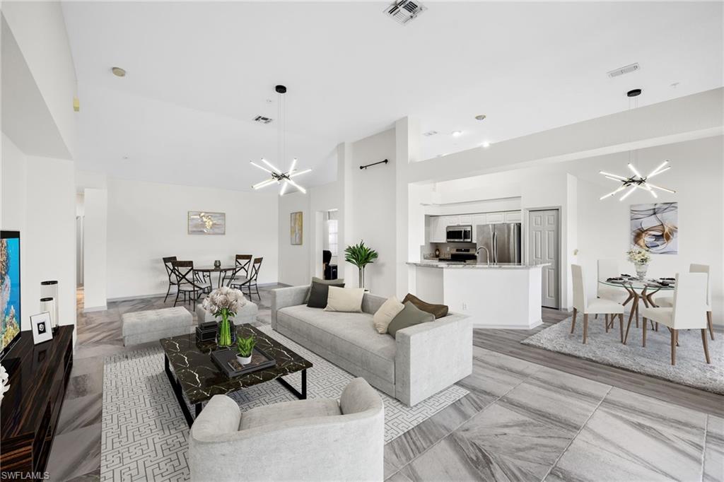 Discover living in the Middleburg community at the prestigious Stonebridge Country Club of Naples, Florida. What a great location! This spacious and appealing 3 BR/2BA second floor fully furnished condo has enviable golf course & lake views, offering a blend of elegance and carefree living, perfect for those seeking a serene and luxurious lifestyle. Stonebridge Golf & Country Club recently completed (in December 2023) a $12M plus golf course and clubhouse renovation, affording all owners whether new or long-standing, plenty of opportunity to enjoy these beautiful facilities and amenities. In addition to the golf for which Stonebridge is famous, you can enjoy include tennis, dining at the the new Bistro Cafe, a brand new Stonebridge CC pool (plus, you can enjoy the lovely Middleburg community pool just a short distance from your residence, which is also located conveniently near the clubhouse). As you step inside this Middleburg residence, you're greeted by an open and spacious layout, accented by high ceilings, and natural light streaming through expansive windows. The living area flows seamlessly into a well-appointed kitchen, complete with high-end finishes and ample counter space & storage, ideal for both everyday living and entertaining guests. There are three separate dining areas as well - dining/living, in-kitchen, and in the enclosed lanai so you can enjoy the best views. Updates include: new paint, New a/c (1 1/2 years old), New lighting & Stainless appliances. With a generous 2,172 square feet of living space, there's plenty of room to relax and unwind, including watching fellow golfers on the course with picture perfect scenery including a tranquil lake and water feature. Stonebridge Country Club provides secured & gated entry for peace of mind. And, a bonus for pet people - one pet, up to 45 lbs., is permitted with Board approval. Close to all the finest Naples has to offer including nearby beaches, great dining and world class shopping destinations.