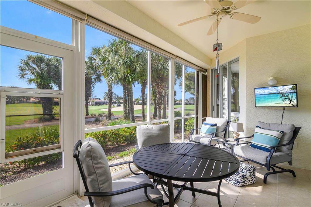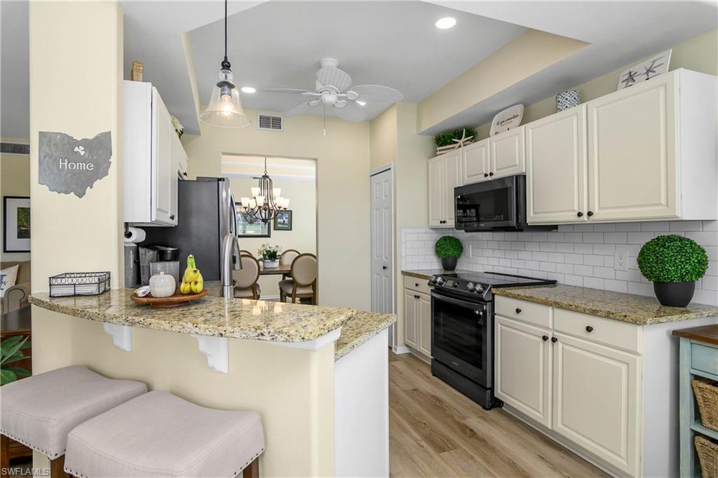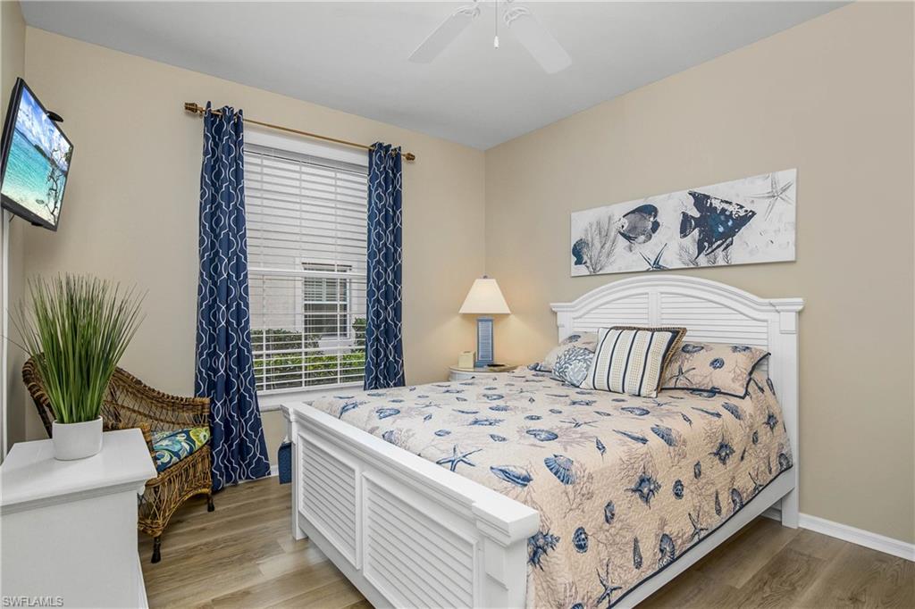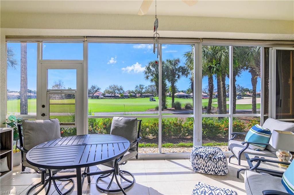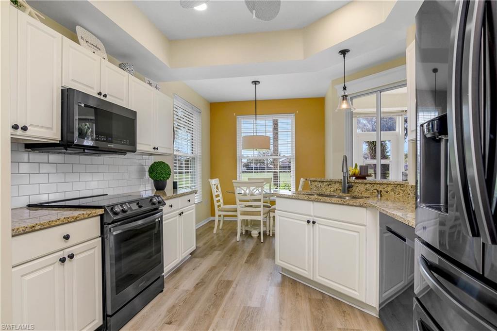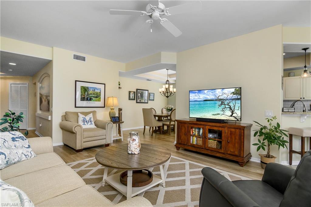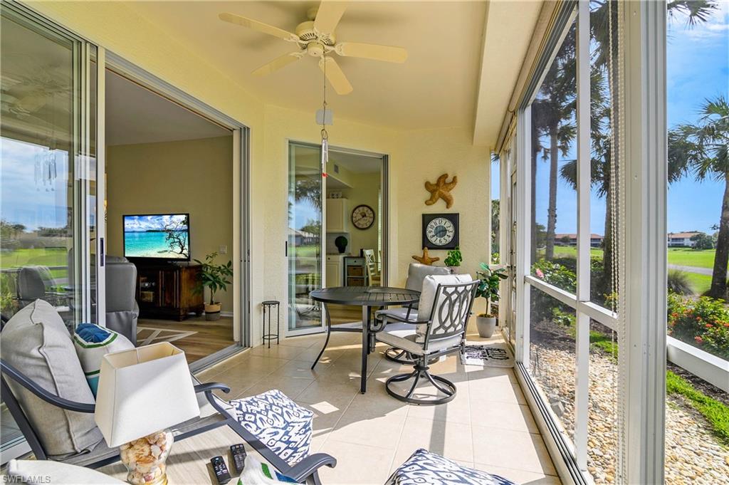 COASTAL CONTEMPORARY decor and finishes in this partially furnished first floor end unit in the demand bundled golf community of Copperleaf at the Brooks. New luxury vinyl flooring throughout, new kitchen appliances 2023, guest room and kitchen single hung windows upgraded to hurricane grade 2021, and updated baths! HVAC 2016, roof 2020, and wind resistant sliding panels in lanai so you can close and air condition the space for more living area, or close when away to protect your furnishings. You will love the location with nearby shopping, restaurants, SWFL beaches, and SWFL Int'l Airport. Copperleaf is a premier gated, bundled golf community so as soon as you close on your home, you are an immediate golfing member of one of the finest bundled golf communities SWFL has to offer. There is also tennis and Bocce, exercise facility and library onsite. Enjoy it's newly remodeled state of the art clubhouse and restaurants. Private membership to the Brooks Commons Club is optional and offers a private restaurant, fitness center, pickleball and events as well as a private beach. Agents see supplements for exclusions to personal property.