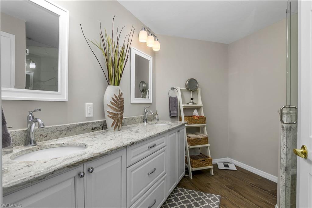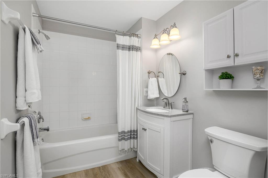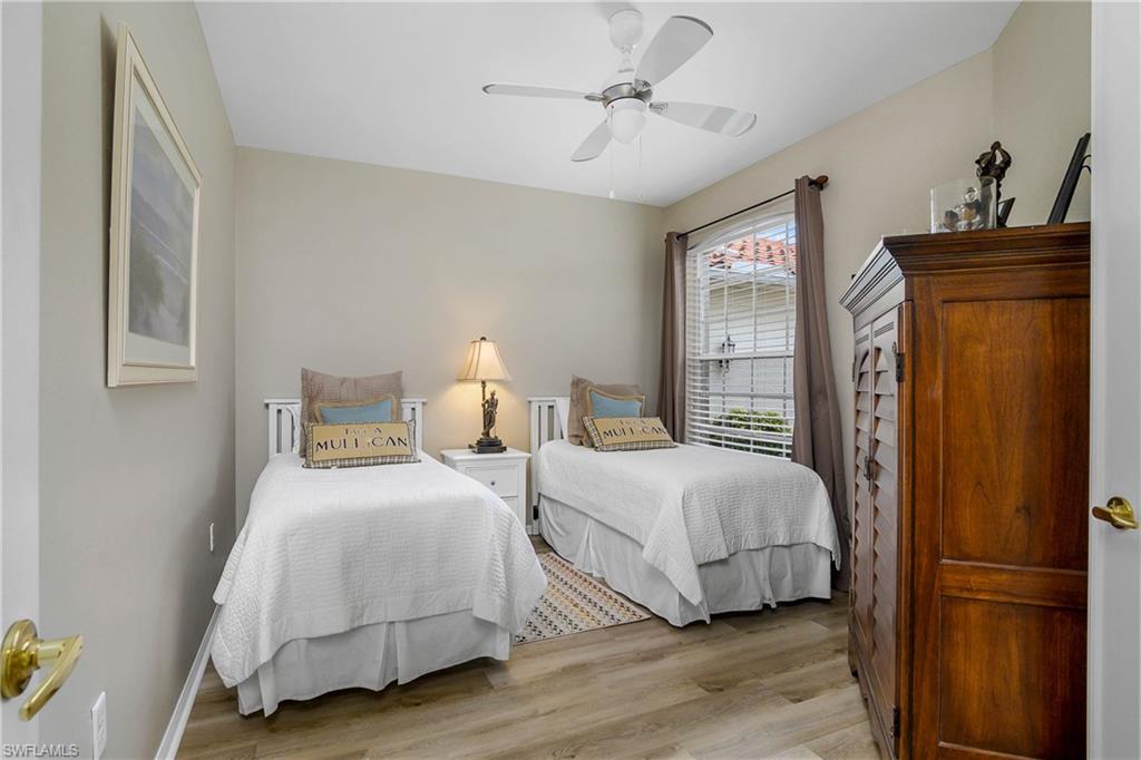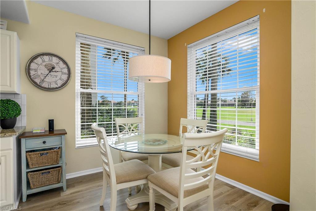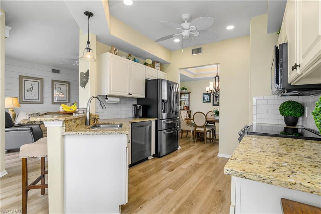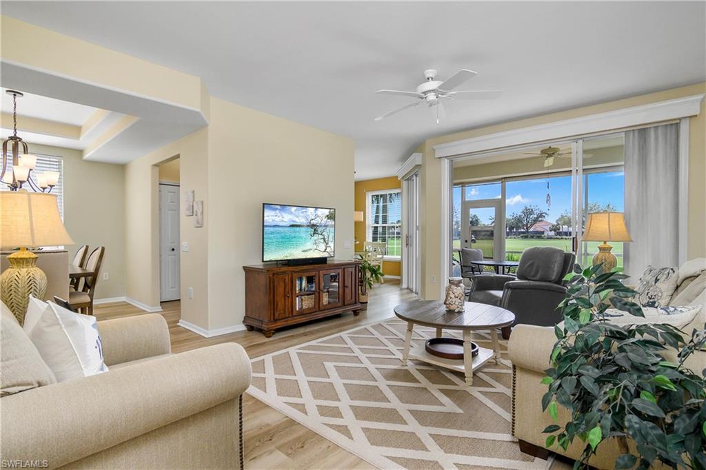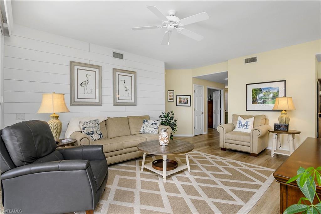 COASTAL CONTEMPORARY decor and finishes in this partially furnished first floor end unit in the demand bundled golf community of Copperleaf at the Brooks. New luxury vinyl flooring throughout, new kitchen appliances 2023, guest room and kitchen single hung windows upgraded to hurricane grade 2021, and updated baths! HVAC 2016, roof 2020, and wind resistant sliding panels in lanai so you can close and air condition the space for more living area, or close when away to protect your furnishings. You will love the location with nearby shopping, restaurants, SWFL beaches, and SWFL Int'l Airport. Copperleaf is a premier gated, bundled golf community so as soon as you close on your home, you are an immediate golfing member of one of the finest bundled golf communities SWFL has to offer. There is also tennis and Bocce, exercise facility and library onsite. Enjoy it's newly remodeled state of the art clubhouse and restaurants. Private membership to the Brooks Commons Club is optional and offers a private restaurant, fitness center, pickleball and events as well as a private beach. Agents see supplements for exclusions to personal property.
