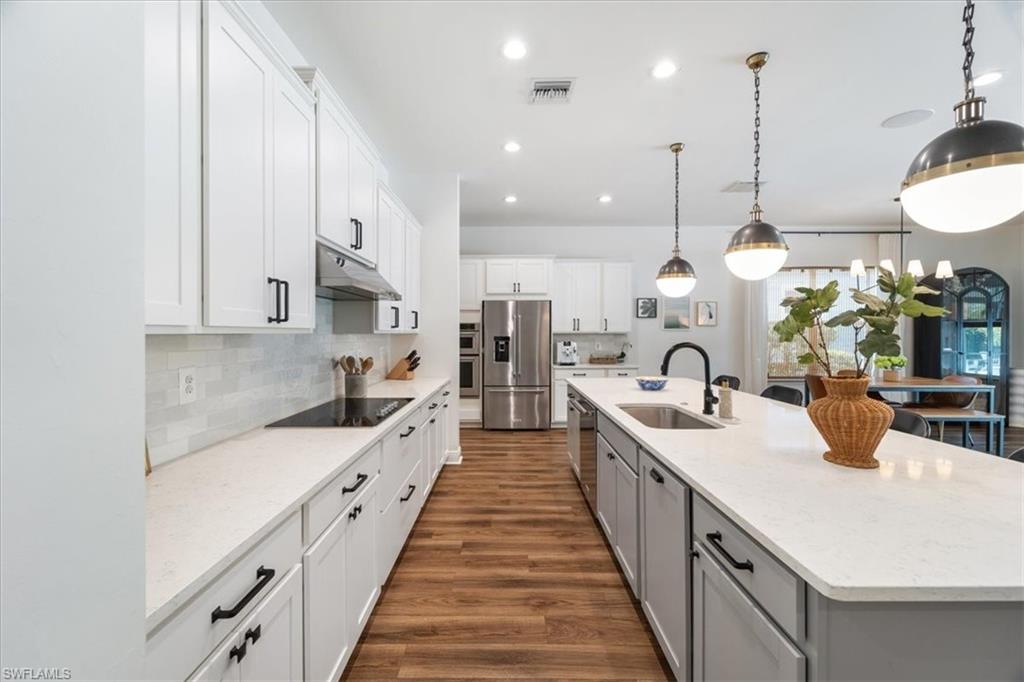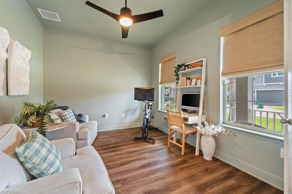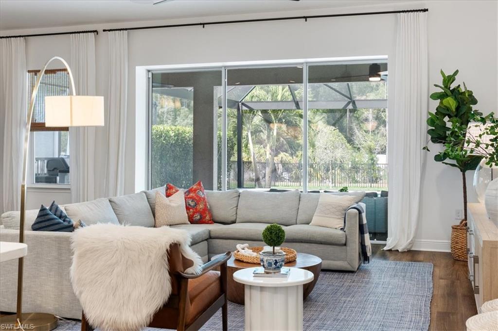 Welcome to 3524 Pilot Circle, a stunning residence in the heart of Naples, FL, where elegance meets comfort. This exquisite home spans 2,937 square feet, offering a seamless blend of sophistication and modern design. As you enter, you're greeted by an inviting shiplap wall in the entryway, setting the tone for the home's graceful aesthetic. The open floor plan creates an ideal space for both entertaining and everyday living, anchored by a modern kitchen. Here, you'll find sleek white cabinetry, quartz countertops, and a large center island—a true chef's delight. The main level is designed with a master bedroom, complete with an ensuite featuring a shower, separate soaking tub, and dual vanities. The office is also located downstairs, providing convenience and privacy. Upstairs, discover three additional bedrooms, ensuring comfort for family or guests. A versatile family room completes this upper level, perfect for relaxation or recreation. Step outside to your personal oasis—this property offers the longest lot in the neighborhood, which allows for a fenced grass backyard, in addition to a pool and spa with an oversized deck, all enclosed by panoramic super screens on all three sides. The outdoor space, paired with preserve views, provides privacy and is perfect for gatherings or relaxing evenings under the stars. Compass Landing is a gated community featuring low HOA fees, a pool, clubhouse, exercise room, and a strong sense of community. It boasts a central location near Founders Square, three grocery stores, shopping options, and is situated in an A-rated school zone. Additionally, it offers quick access to I-75 and is just 15 minutes from Naples beaches.