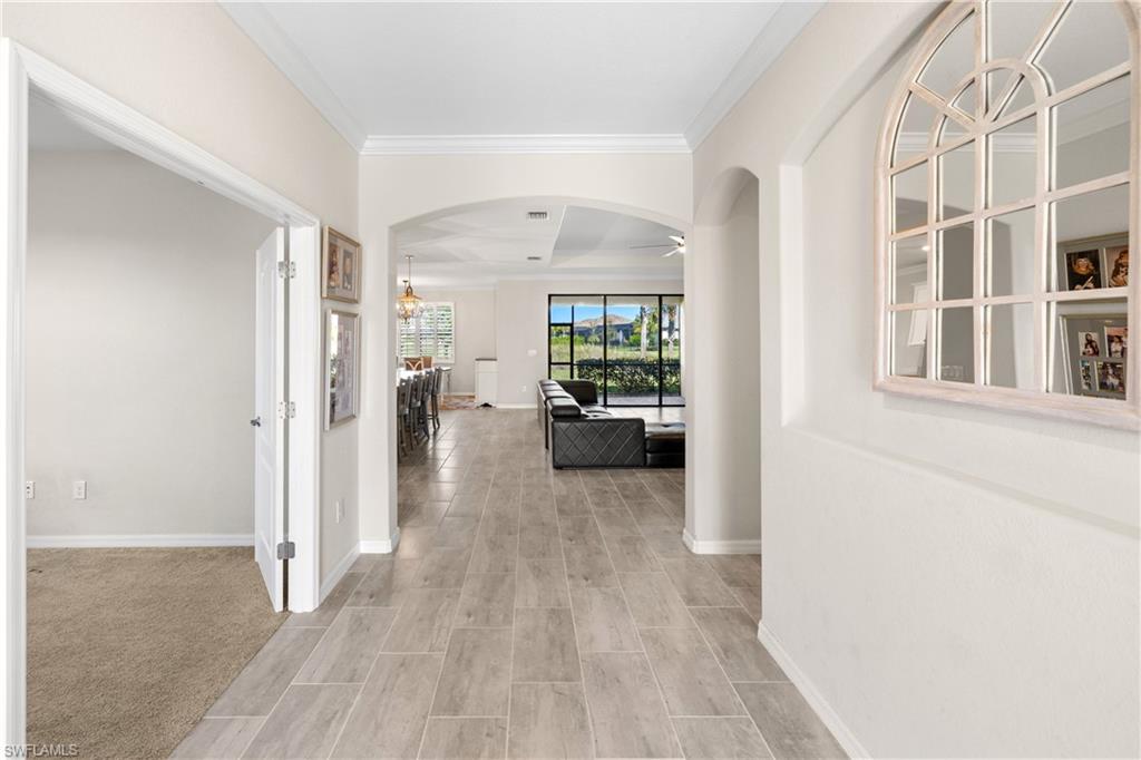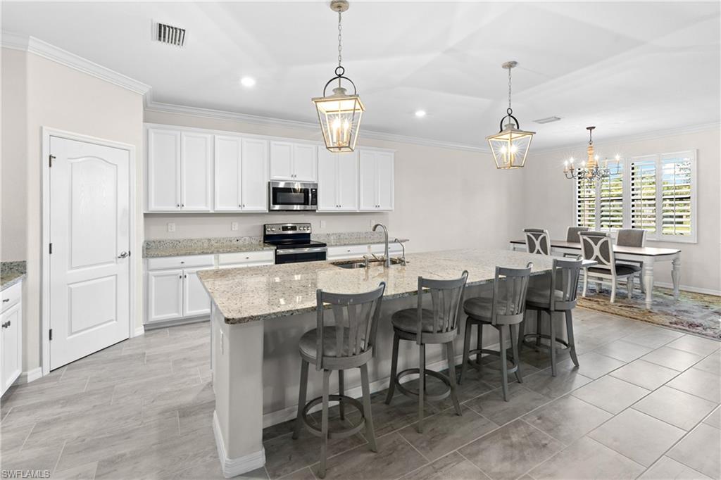 PRICE IMPROVED FOR A QUICK SALE! OVERSIZED HOMESITE (ALMOST 1/3RD OF AN ACRE) WITH EXTRA ROOM ON BOTH SIDES OF THE HOME! NEW UPGRADED CARPET IN THE BEDROOMS AND DEN. MOVE IN RIGHT AWAY! ENJOY SUNSETS OVER THE MARSH, PINES, AND PALMS FROM YOUR COVERED LANAI IN THIS 3 CAR GARAGE "SUMMERVILLE" MODEL IN THE PLACE AT CORKSCREW. This Residence offer 3 Bedrooms + Den, 3 Full Baths (1 Guest Bath is En-suite), 3 car garage, and 2445sf living space. This home boasts long and NATURAL SERENE VIEWS and a spacious backyard. The Northwestern rear exposure provides for SPECTACULAR FLORIDA SUNSETS in the evening. When arriving at this residence, you will be greeted by a spacious DOUBLE DOOR entry with DESIGNER GLASS DOOR INSERTS that brighten this home’s living space with natural light. The OPEN CONCEPT LAYOUT is optimal for gatherings with family and friends. The CHEF’S KITCHEN with White Cabinetry, Granite Countertops, Stainless Steel Appliances, REVERSE OSMOSIS at the kitchen sink, Pendant accent lighting and an EXPANSIVE KITCHEN ISLAND which is perfect for mealtime conversation and entertaining. The kitchen is joined by the dining area with LARGE WINDOWS for an abundant amount of natural light. The Greatroom with TRAY CEILING and CROWN MOLDING opens up to your screened covered lanai. Relax on your screened covered lanai and take in the Florida Sunsets while you enjoy the shaded space year round. The EXTRA DEEP BACKYARD (APPROX 60') has an abundant amount of greenspace which is perfect for you to create your Dream Oasis... Build your Custom Pool/Spa or install a perimeter fence for your children and pets to play... or do BOTH!! The Lanai can be accessed directly from the OWNERS SUITE as well. The Primary Bedroom is enhanced by a TRAY CEILING and joined by DUAL CLOSETS and a Luxurious Primary Bath showcasing SPLIT VANITIES and offers a SEPARATE TUB AND ENLARGED SHOWER SPACE. Other Post Closing upgrades include CULLIGAN WATER SOFTNER SYSTEM, EPOXY GARAGE FLOORS and PLANTATION SHUTTERS. PROPERTY IS HIGH AND DRY AND LOCATED IN FLOOD ZONE X... NO FLOOD INSURANCE REQUIRED! The amenities at The Place at Corkscrew include... Resort Pool w/100' Waterslide & Spa, Indoor Restaurant and Bourbon Bar, Cafe, Outdoor Bar, Fitness Center, Movement Studio, Tennis, Pickleball, Bocce, Basketball, Playground, Dog Park, Childwatch, Spa Services, 2 Entry Gates. Just Minutes to Schools, Shopping, Restaurants, Airport, Beaches. For GOLF ENTHUSIASTS, the highly rated Jack Nicklaus designed OLD CORKSCREW GOLF CLUB is open to the public and located directly across the street from the community entrances! NEW PUBLIX GROCERY STORE PLAZA... JUST 1.4 MILES AWAY!!! TENANTS INCLUDE DUNKIN DONUTS, UPS STORE, LEGNO ITALIAN RESTAURANT, HAIR & NAIL SALON, HEARTLAND DENTAL, AND MORE!