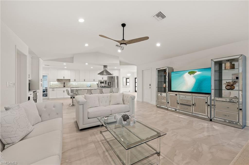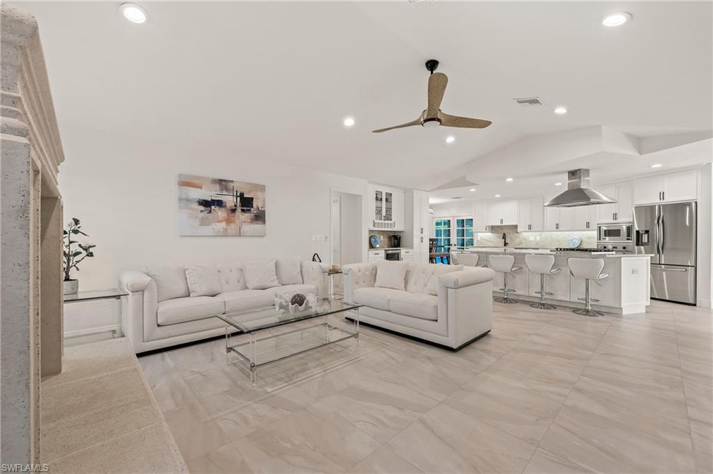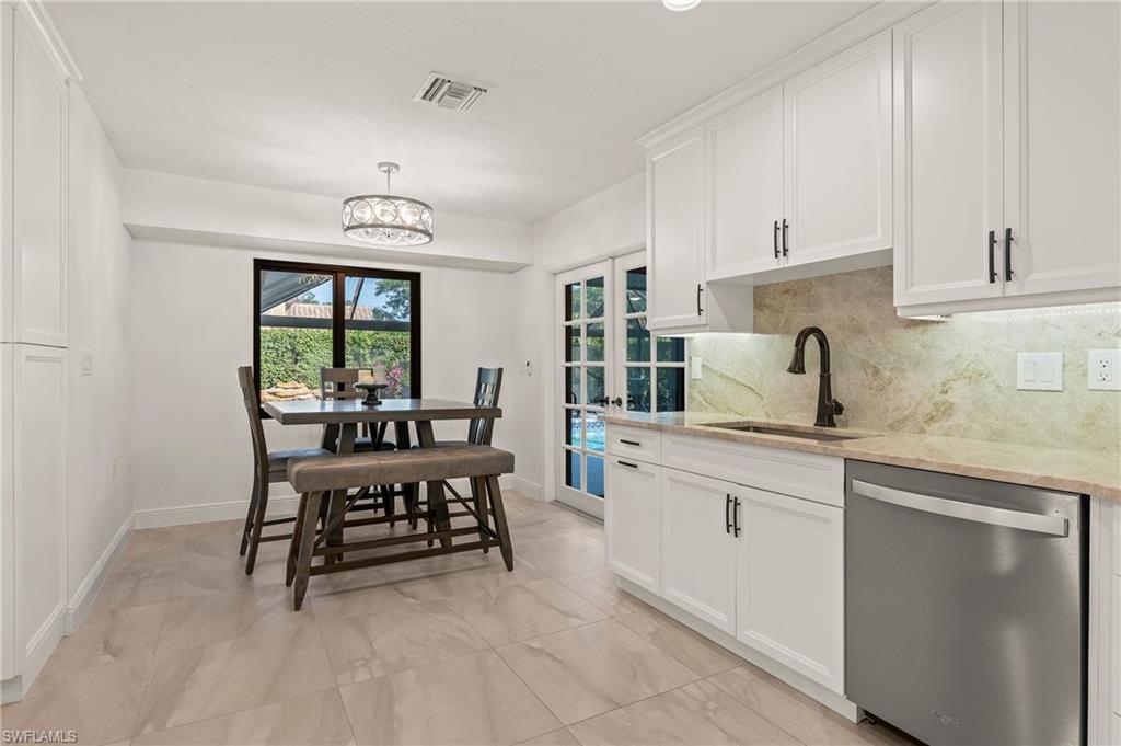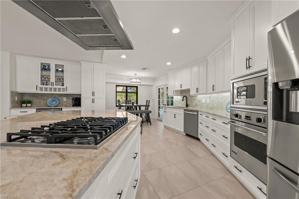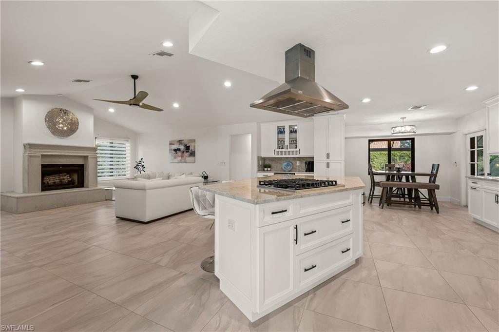 Exquisite Luxury Living in the Highly Sought-After Kings Lake Community! 3 CAR GARAGE, GAS COOKTOP, WOOD BURNING FIREPLACE!! ENTERTAINERS DREAM HOME, a stunningly remodeled oasis that epitomizes luxury and elegance. Nestled in the prestigious Kings Lake community, this remarkable residence has been transformed from top to bottom, offering an unparalleled living experience for those who appreciate the finer things of life. This home has been fully remodeled and updated in almost every way possible and is being sold furnished turnkey. New roof (2023), Carrier A/C system and duct work (2023), hurricane impact windows and doors, new paint inside and out, all new electric, new light fixtures, new kitchen, bathrooms, laundry room, tile floor etc. This home has it all, including GAS STOVE, WOOD BURNING FIREPLACE, FULLY FENCED BACK YARD... As you step inside, you are greeted by an inviting foyer that flows seamlessly into a living room and a formal dining room, perfect for hosting lavish dinner parties or intimate family gatherings. The heart of this home is the open kitchen, featuring a large island that serves as both a culinary workspace and a gathering spot for friends and family. This dream kitchen features new wood cabinetry, a gas cooktop, stainless steel appliances, wine cooler, custom quartz countertops, dry bar/coffee station. The spacious family room is designed for relaxation and entertainment, complete with a cozy fireplace. Both bathrooms have been fully updated with top-of-the-line custom cabinets, stylish tile work and floating mirrors. The expansive master bedroom is a true sanctuary, featuring a lavish ensuite bath designed for relaxation and rejuvenation. Indulge in the opulence of the spa-like atmosphere, complete with high-end fixtures and finishes that elevate your daily routine to an extraordinary experience. Large walk-in closet, adorned with custom built-ins, offers not only ample storage but also an organized haven for your wardrobe. Enclosed lanai (Florida room) is currently set up as a dining area but can be used as a den/office. Step outside to discover your private paradise—heated saltwater pool, covered and uncovered outdoor area and a very private backyard. Pool has been resurfaced in 2023, new pool equipment in 2023 as well. This stunning home also features a rare 3 CAR GARAGE (with brand new epoxy floors), providing not only convenience but also plenty of storage options for all your recreational gear or vehicles. This home would be an ideal investment property, it can be rented monthly (12 times a year). Kings Lake community offers VERY LOW HOA FEES (only $434 a year), walking and biking trails, a tennis/pickleball courts all within minutes of famous 5th Ave, Naples Pier and white sand beaches. Don’t miss out on this extraordinary opportunity! Schedule your private tour today and step into a life of luxury where every moment feels like a vacation. Your dream home awaits!