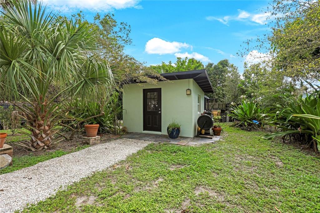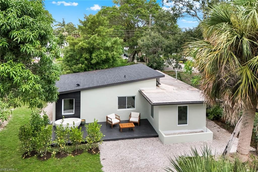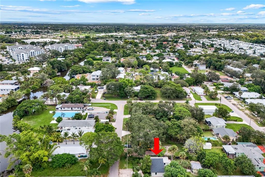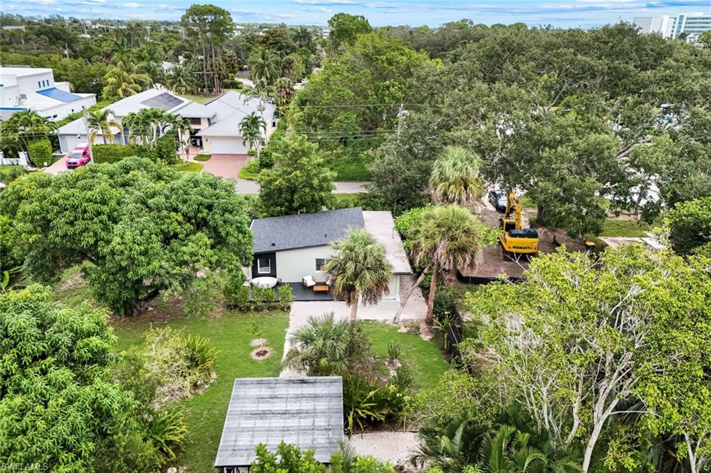 Situated just off vibrant and bustling Bayshore Drive! Walk or boat to the lively and popular Celebration Park featuring delectable food trucks, a spacious bar & live music! Launch your boat at public, nearby Bayview Park with ramps, a playground plus picnic areas with tables & benches-perfect for relaxing while taking in glistening waterfront views! This single-family home offers a desirable south facing sunny backyard. Features of its bright, open floorplan include sunny, south facing open patio w/sitting area & soaking tub! Double French doors lead to/from screened lanai w/ garden views, dry bar w/ fridge & privacy fence. Beautiful open kitchen has stainless appliances, cooktop stove & stunning marble look counters/backsplash! Adequate office or 2nd bedroom. Detached storage shed is 12x12. Large yard w/many mature canopy shade trees viewed from large windows throughout. Light color tile throughout. Directly west of 3032 (nextdoor) is an adjacent vacant lot (see ML #225021623-000 Coco Ave) which may be combined and utilized as one double lot for a new single-family home build along with other newly built homes on Coco Ave! Treat yourself and family meeting new friends at the popular, nearby Botanical Gardens Naples for lovely year-round gatherings and/or exploring educational exhibits (all may be found on their website.) Additional notable stops along Bayshore Dr. include newer Rebeccas 360 Wine Market, The Real McCaw, Ankrolab Brewing and Viage Marina, to name a few! Keep your calendar handy to keep track of your exciting schedule all along lovely Bayshore Drive while soaking up our sunny Naples weather!