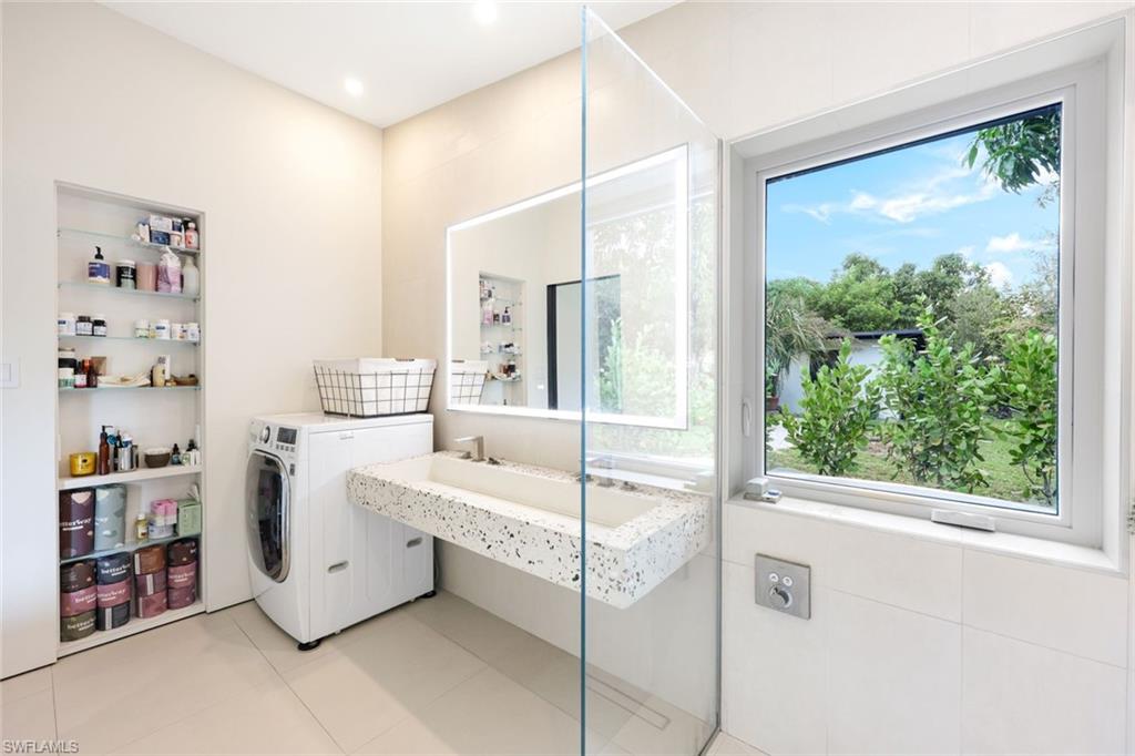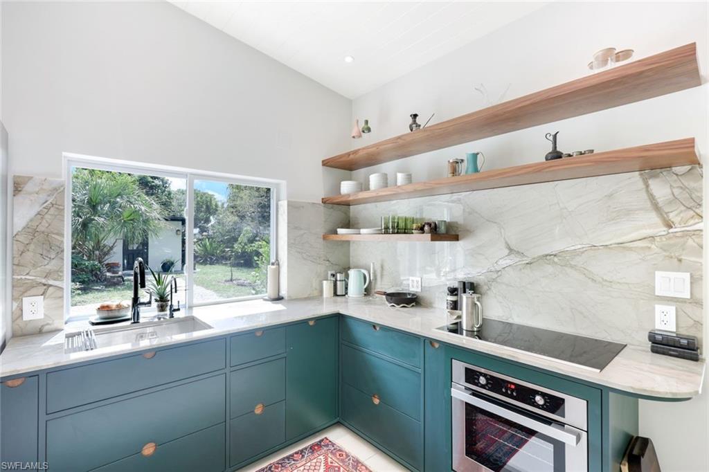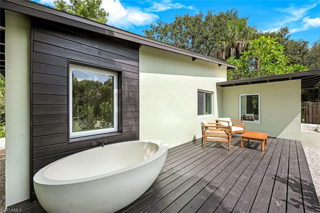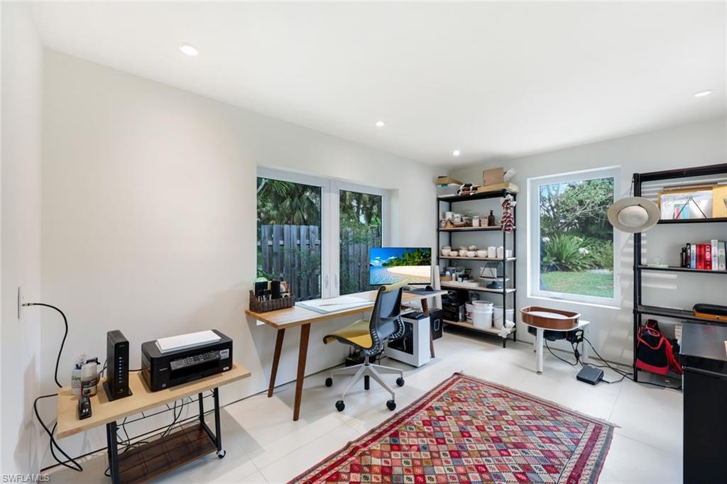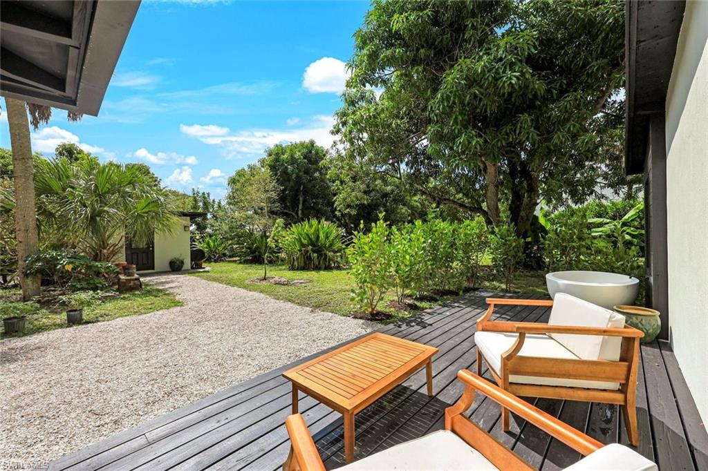 Situated just off vibrant and bustling Bayshore Drive! Walk or boat to the lively and popular Celebration Park featuring delectable food trucks, a spacious bar & live music! Launch your boat at public, nearby Bayview Park with ramps, a playground plus picnic areas with tables & benches-perfect for relaxing while taking in glistening waterfront views! This single-family home offers a desirable south facing sunny backyard. Features of its bright, open floorplan include sunny, south facing open patio w/sitting area & soaking tub! Double French doors lead to/from screened lanai w/ garden views, dry bar w/ fridge & privacy fence. Beautiful open kitchen has stainless appliances, cooktop stove & stunning marble look counters/backsplash! Adequate office or 2nd bedroom. Detached storage shed is 12x12. Large yard w/many mature canopy shade trees viewed from large windows throughout. Light color tile throughout. Directly west of 3032 (nextdoor) is an adjacent vacant lot (see ML #225021623-000 Coco Ave) which may be combined and utilized as one double lot for a new single-family home build along with other newly built homes on Coco Ave! Treat yourself and family meeting new friends at the popular, nearby Botanical Gardens Naples for lovely year-round gatherings and/or exploring educational exhibits (all may be found on their website.) Additional notable stops along Bayshore Dr. include newer Rebeccas 360 Wine Market, The Real McCaw, Ankrolab Brewing and Viage Marina, to name a few! Keep your calendar handy to keep track of your exciting schedule all along lovely Bayshore Drive while soaking up our sunny Naples weather!