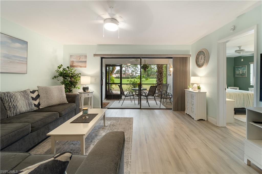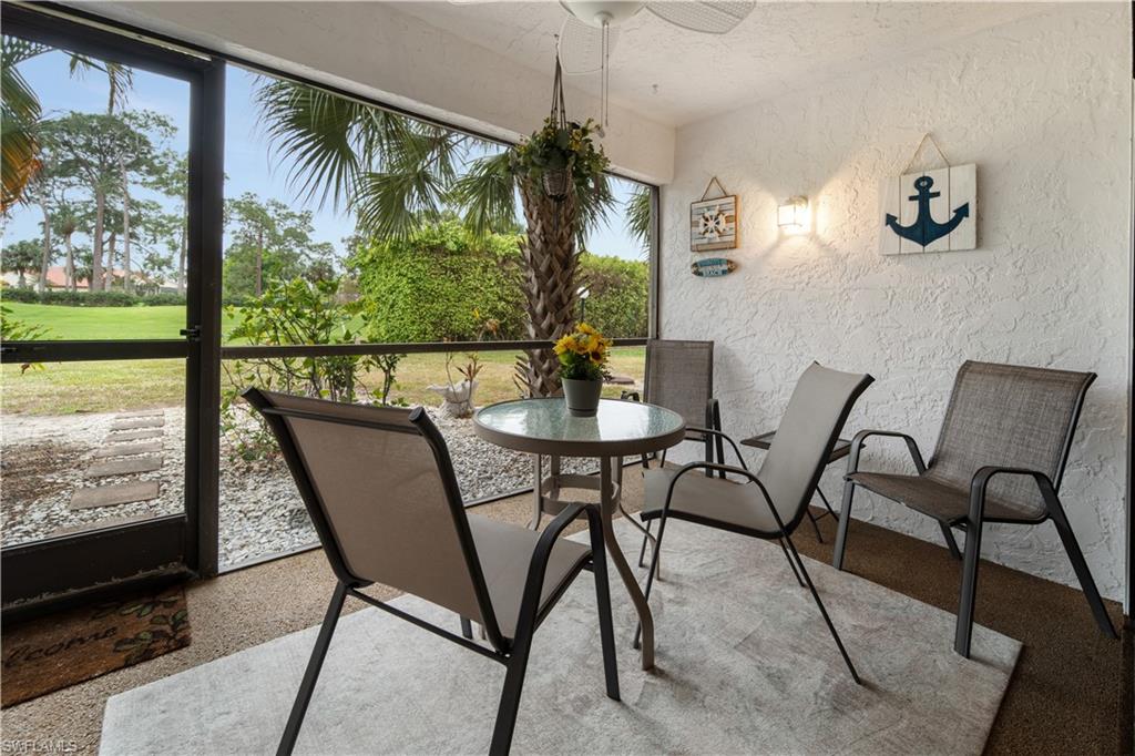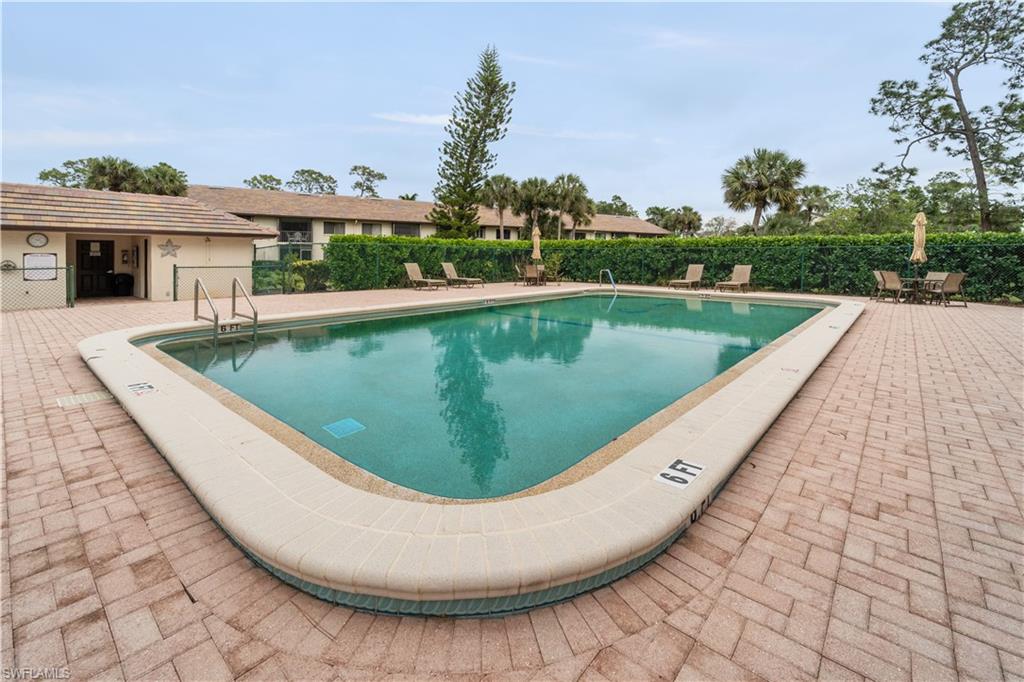 Discover this charming end unit condo on the golf course in Naples! This first-floor unit features 2 bedrooms and 2 bathrooms, offering comfortable living. Enjoy extra storage on the lanai and a carport with additional storage. The community pool is perfect for relaxing under the Florida sun. Conveniently located with easy access to Santa Barbara Blvd, you'll find shopping and dining nearby, plus just 15 minutes to downtown Naples and the beautiful beaches. Don’t miss out on this great opportunity!