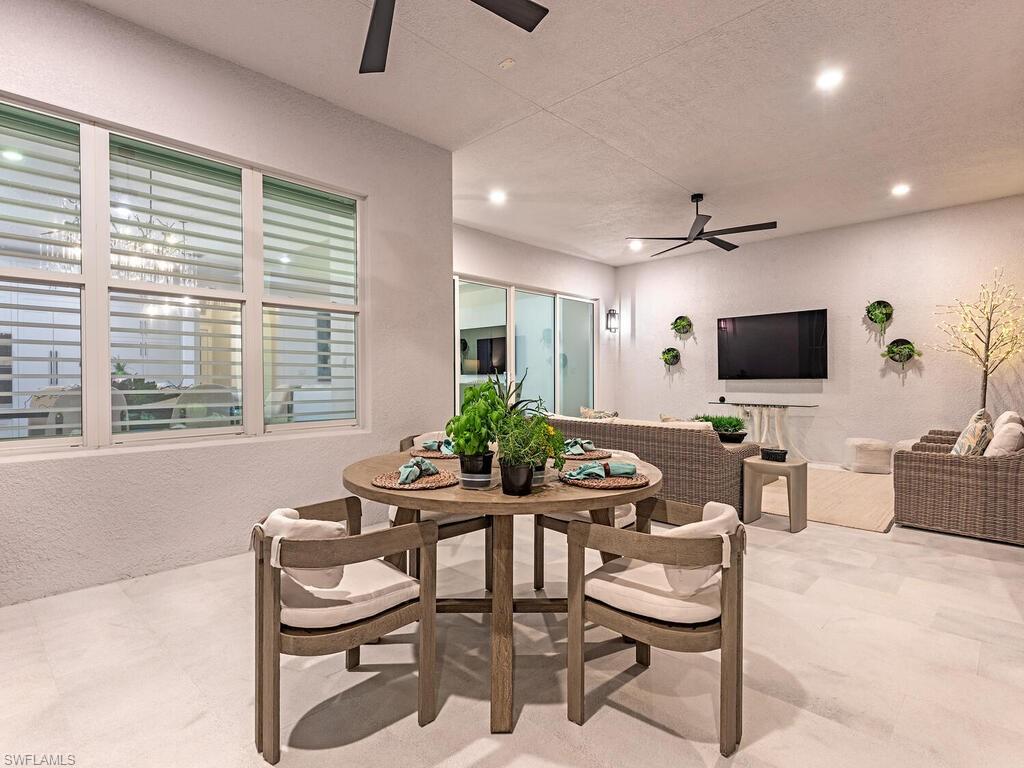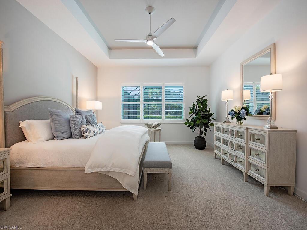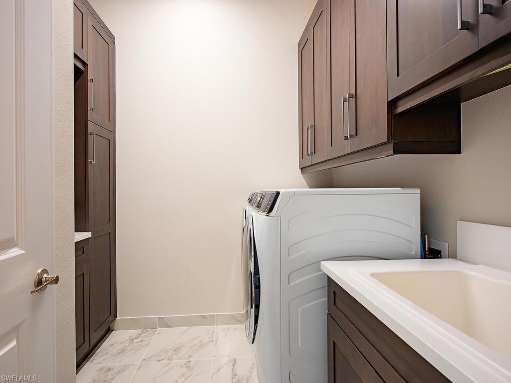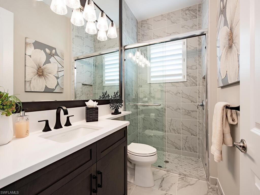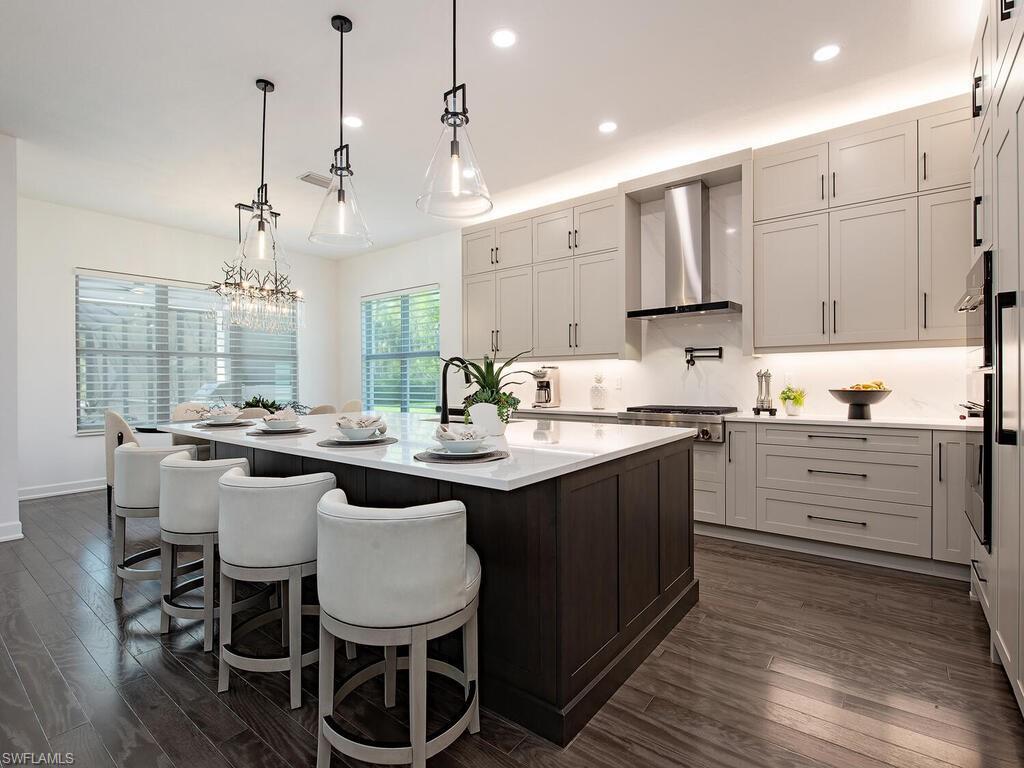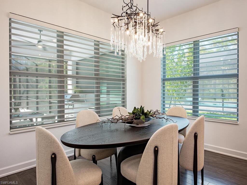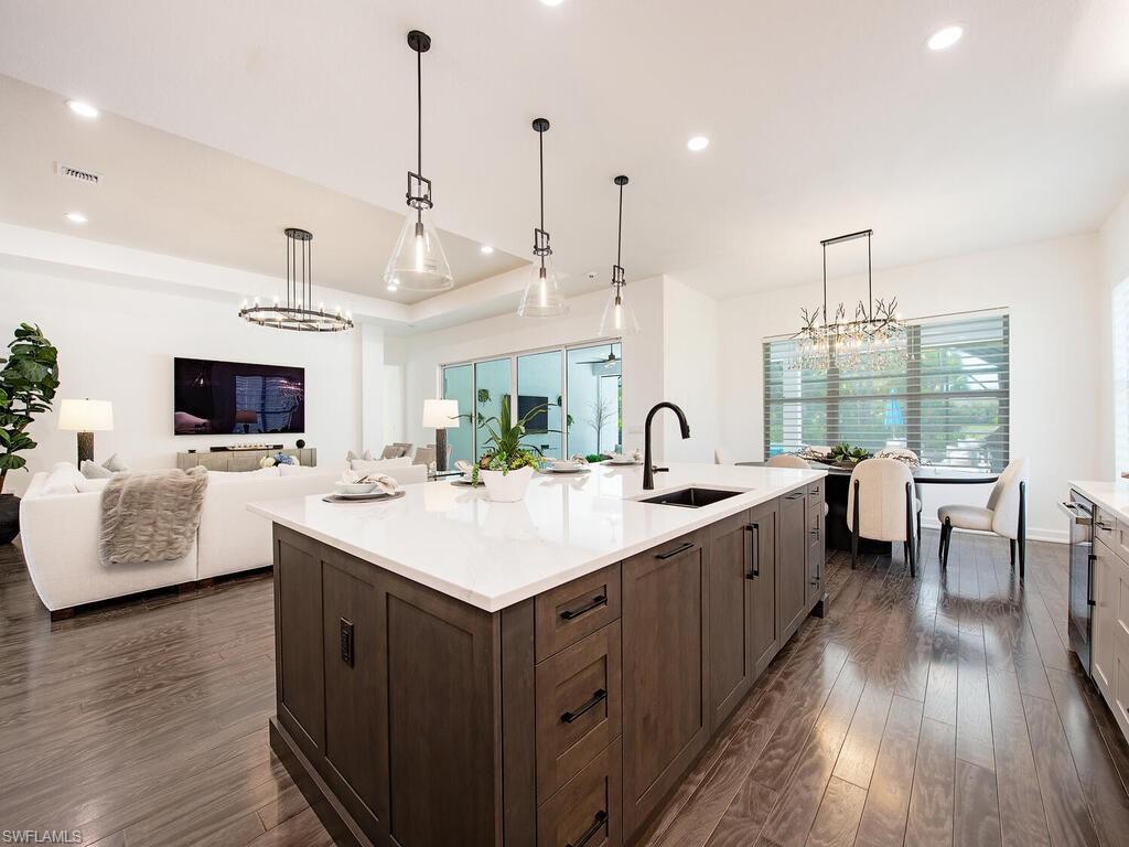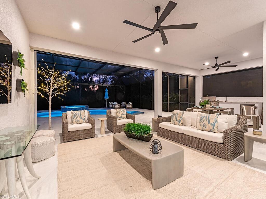 Introducing an unparalleled opportunity to experience luxury living in one of the most coveted homes within Valencia Trails. This meticulously curated & customized Sunrise floor plan offers an exceptional living experience with top-tier finishes that go beyond the builder level with flooring, kitchen & primary bath installed after closing. The open living space seamlessly blends magnificent interiors with the splendor of outdoor Florida living. The main living area flows effortlessly onto a sprawling, covered lanai. The outdoor space is a true masterpiece, featuring exquisite Akoya marble tile pavers, a sparkling free-form pool, and a spa – encased within a panoramic screen offering a tranquil preserve view with a lovely lake in the distance. For ultimate outdoor indulgence, a fully equipped summer kitchen awaits, ensuring that al fresco dining is always at your fingertips. As you enter through the sleek glass & metal front door, you are greeted by a grand foyer illuminated by dramatic lighting. The expansive living area is enhanced by an entertainer's dream kitchen, equipped with custom cabinetry, stunning quartz countertops/backsplash, and Jenn-Air appliances – including a paneled refrigerator/freezer, 6-burner gas cooktop, vented hood, wall oven, microwave & wine cooler. The oversized island offers additional storage & serves as the perfect gathering spot. The kitchen is completed by a Blanco granite composite sink, pendant & ambient lighting, and a pot filler. The master suite is an indulgent retreat, offering a spa-like bath with a frameless glass-enclosed rainfall shower, an oval soaking tub, and custom cabinetry. Each guest bath is its own sanctuary, featuring quartz countertops, walk-in showers with tile extending to the ceiling, upgraded cabinetry & designer fixtures. Additionally, this home is outfitted with Shaw hardwood flooring, plantation shutters, silhouette shades, custom closets throughout, millwork, fresh paint, a Culligan water softener & solid core doors. Hurricane impact windows & doors, along with electric hurricane-rated screens on the lanai ensure complete peace of mind. The laundry room features custom cabinetry, a sink, and GE Power Steam washer & dryer. The finished garage offers polyurea flooring, storage cabinetry, an extra fridge & insulated ceiling. There is also a 6’x10’ fenced dog run and lush, tropical landscaping surrounds this incredible home. Valencia Trails is more than just a community; it's a lifestyle. This exclusive 55+ community boasts world-class amenities, including a 43,000 square-foot clubhouse with a gourmet restaurant, poolside bar, and resort-style pools. Whether you enjoy tennis, pickleball, bocce, or more tranquil activities like yoga or art classes, Valencia Trails has it all. Additional features include a fitness center, sports lounge, card rooms, cooking studio, spa, dog park & a vibrant calendar of events so every day feels like a vacation. This is your invitation to live life luxuriously.