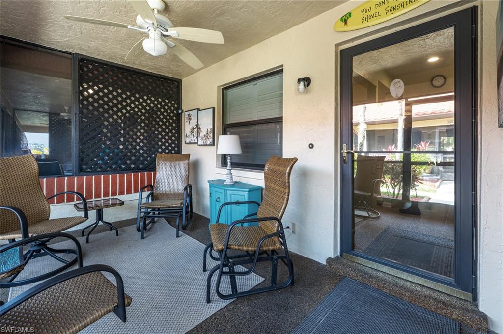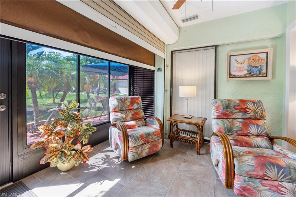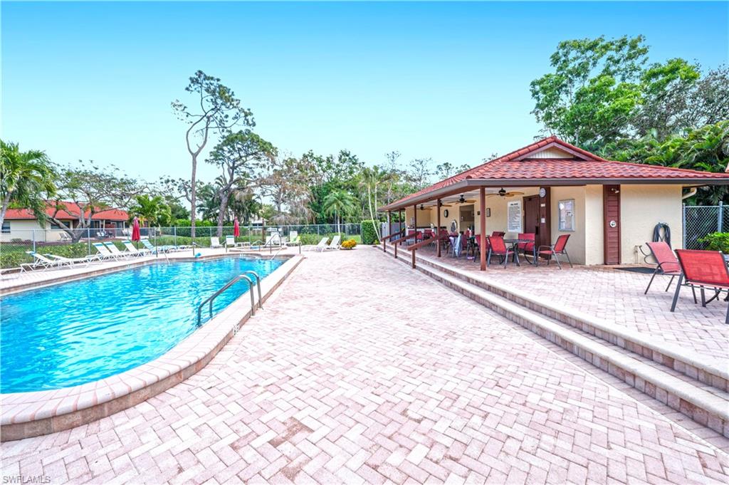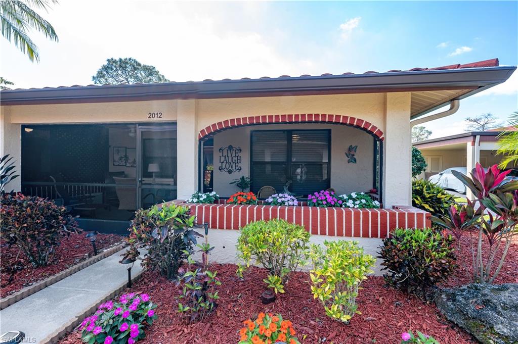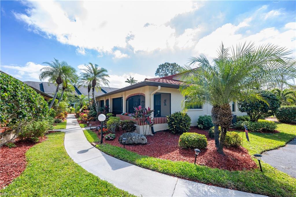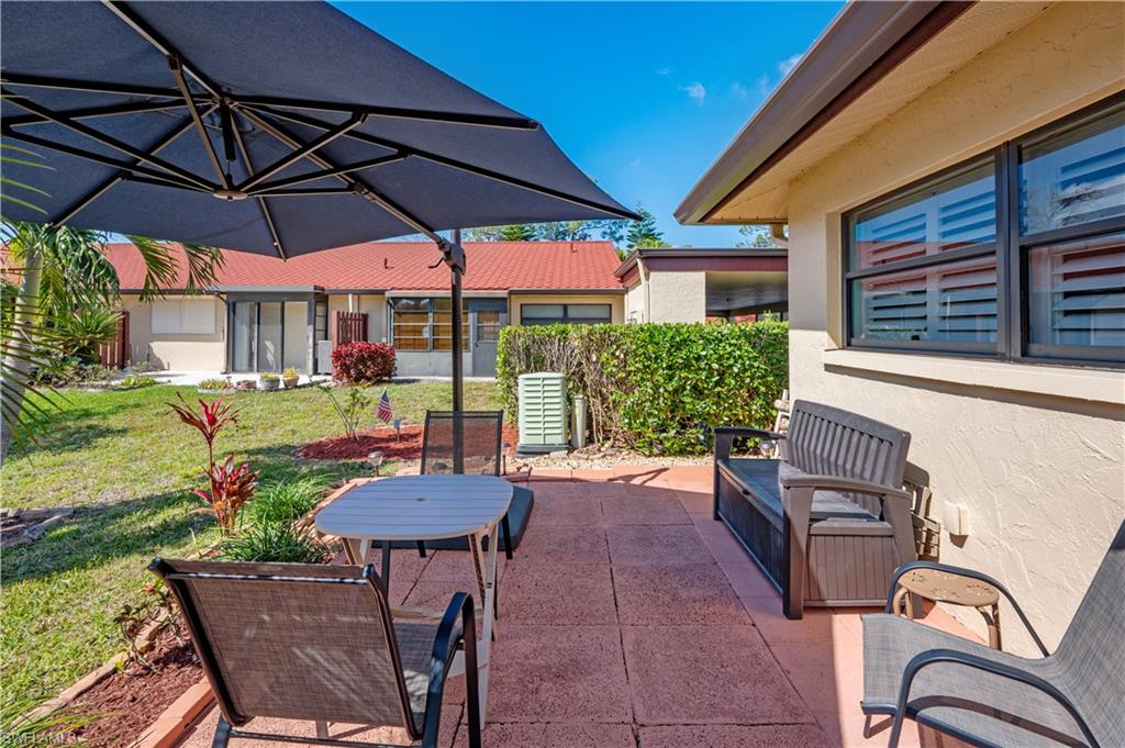 PRICE IMPROVEMENT and offering a 1 YEAR Home WARRANTY at close! Beautifully updated southern exposure end unit villa with 2 bedrooms and 2 bathrooms in Boca Ciega Manor, includes TWO carports and TWO storage units. This fully furnished home is a peaceful retreat close to the vibrant heart of downtown Naples and the beaches. The open-concept design seamlessly connects the living and dining areas, creating an inviting atmosphere for relaxation and entertaining and leads directly outside to your private patio. The home has all tile floors. The windows and doors are impact and the roofs are newer with new wind mitigations. The Florida room has 2 ELECTRIC shutters. The side windows have manual shutters. The updated kitchen has quartz countertops, a built in pantry, several cabinets have pull outs, the range is newer, and a low profile Over-the-Range microwave. The community pool fence is being replaced soon and will be a bronze aluminum fence. This home offers easy access to local attractions, shopping, dining, and the beautiful Gulf Coast beaches. With its prime location and comfortable living space, this home presents an excellent opportunity to experience the best of Naples living.