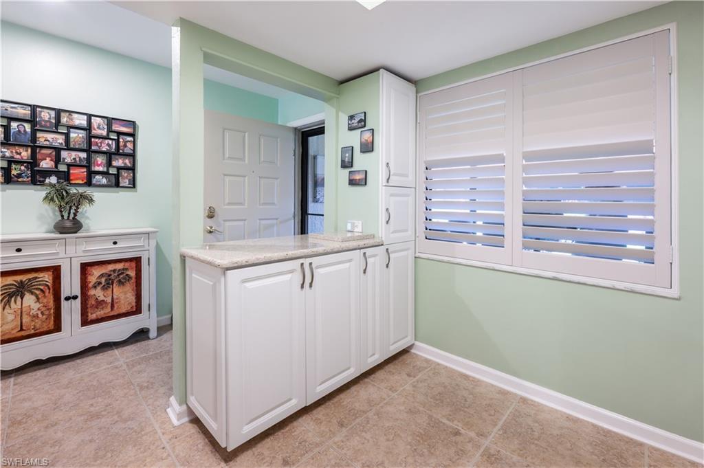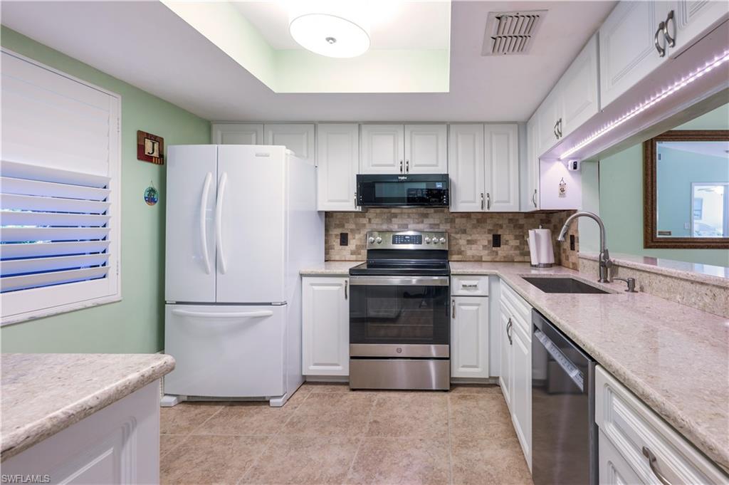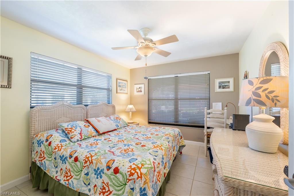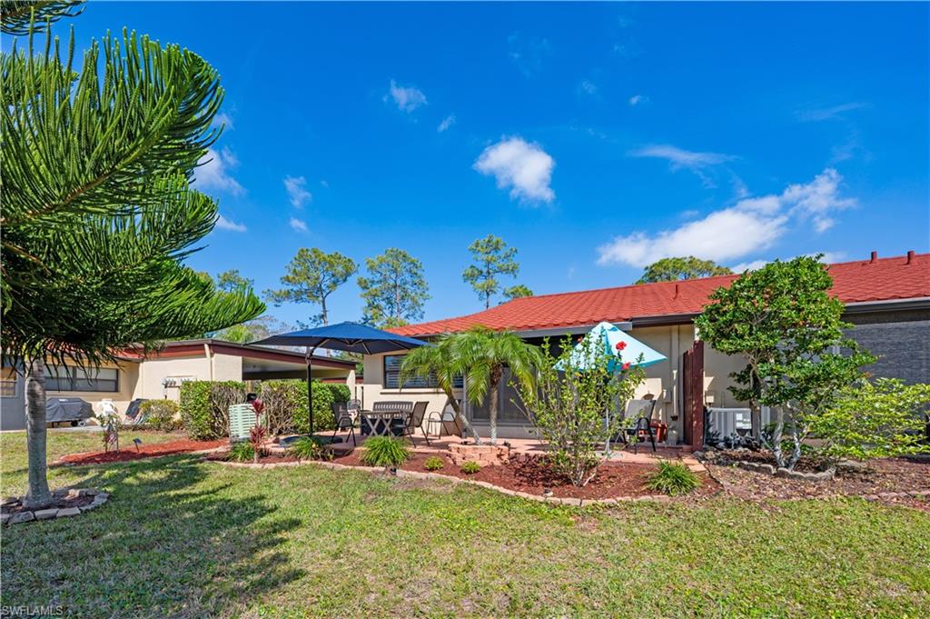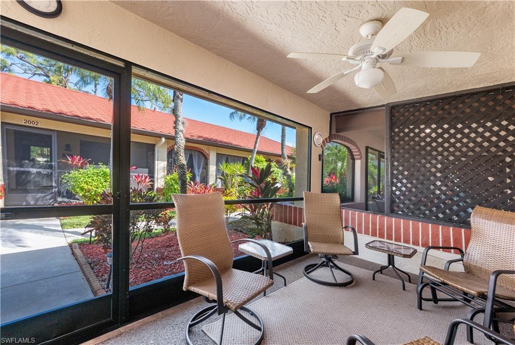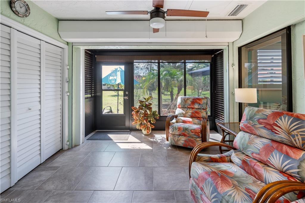 PRICE IMPROVEMENT and offering a 1 YEAR Home WARRANTY at close! Beautifully updated southern exposure end unit villa with 2 bedrooms and 2 bathrooms in Boca Ciega Manor, includes TWO carports and TWO storage units. This fully furnished home is a peaceful retreat close to the vibrant heart of downtown Naples and the beaches. The open-concept design seamlessly connects the living and dining areas, creating an inviting atmosphere for relaxation and entertaining and leads directly outside to your private patio. The home has all tile floors. The windows and doors are impact and the roofs are newer with new wind mitigations. The Florida room has 2 ELECTRIC shutters. The side windows have manual shutters. The updated kitchen has quartz countertops, a built in pantry, several cabinets have pull outs, the range is newer, and a low profile Over-the-Range microwave. The community pool fence is being replaced soon and will be a bronze aluminum fence. This home offers easy access to local attractions, shopping, dining, and the beautiful Gulf Coast beaches. With its prime location and comfortable living space, this home presents an excellent opportunity to experience the best of Naples living.
