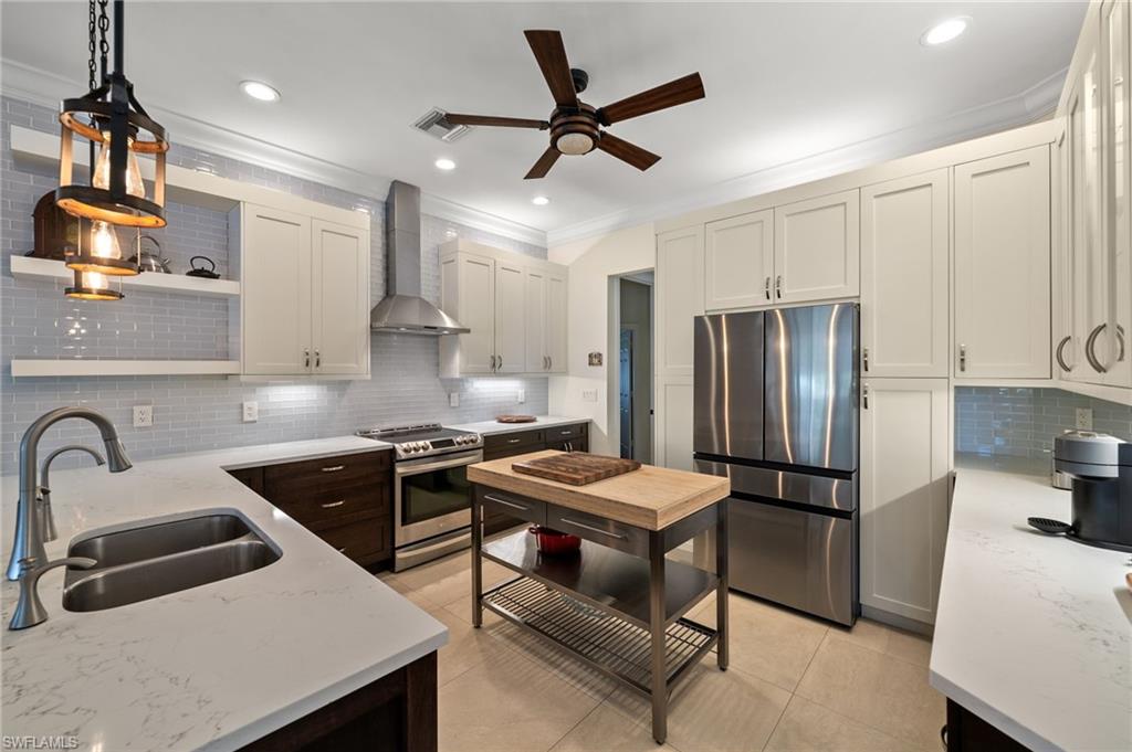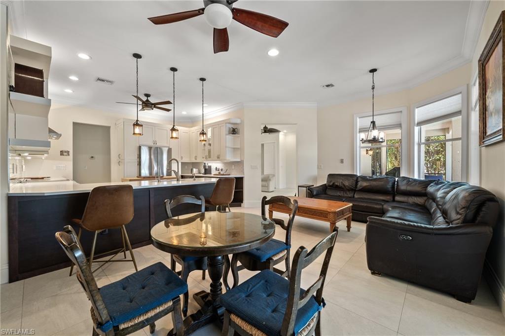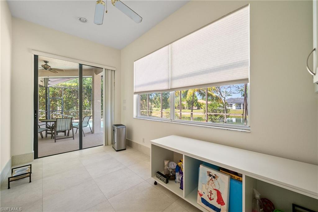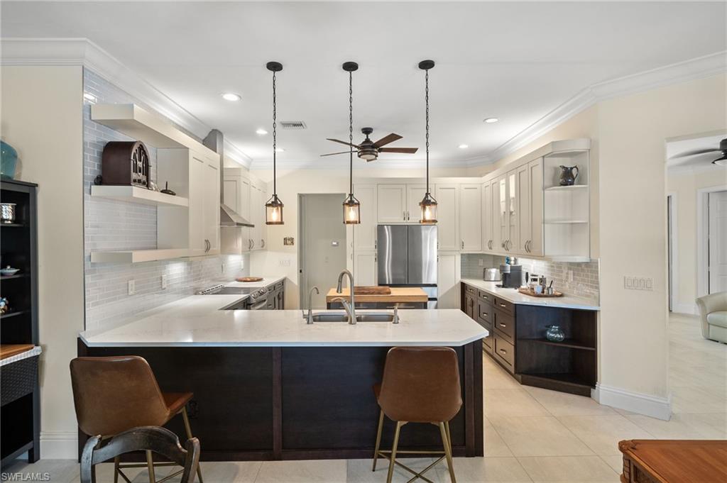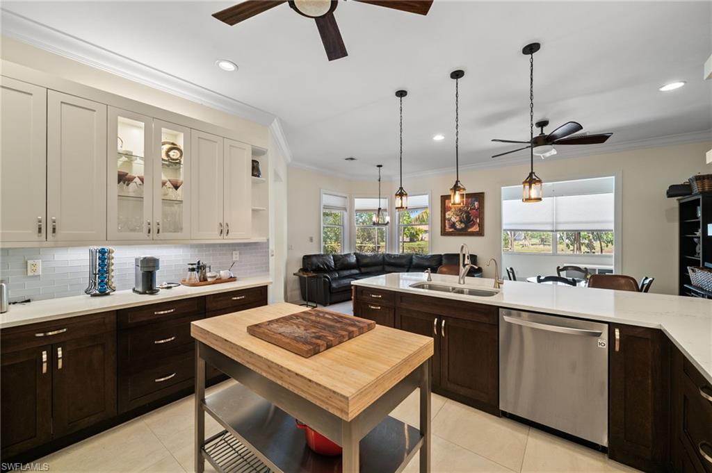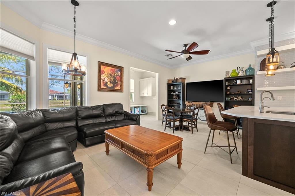 Back on market for you !! Buyer loss your gain, Seller packed ready to move Price reduced 599k Remarkable home with a private apartment-guest suite with a full kitchen and separate entrance Large open spaces in the 2,618 sq ft 3 car garage lake front & remodeled residence stands out with its unparalleled layout, multiple living areas, making it ideal for work-from-home flexibility, multi-generational living, and effortless entertaining. Be sure you view our video to feel the great lifestyle fully. The bright, airy feel and well-designed flow includes 4 bedrooms, 3 bathrooms, a formal living room, a formal dining room, a spacious family room with informal dining, and a versatile den/flex space, offering endless possibilities. The central kitchen is a showstopper, seamlessly blending timeless design with modern elegance, featuring quartz countertops, floating shelves, stylish subway tile backsplash extending from the countertop to the ceiling, a breakfast bar, and a cozy morning room. It's a dream space for both casual and gourmet cooking. Meanwhile, the guest suite's eat-in kitchen is fully equipped with stainless steel appliances and a pantry, providing a self-sufficient retreat with private access. the guest suite can also convert to a 2 bedroom suite/apartment. The primary suite is pure luxury, boasting a spa-like ensuite bath with a freestanding soaking tub, walk-in shower, and floating vanities with dual sinks. Elegant crown molding and large diagonal tile flooring further elevate the home's appeal. Beyond its stunning interior, the outdoor living is great with a spacious screened lanai and a sparkling pool surrounded by dining and lounging areas, perfect for relaxing or entertaining guests. The guest suite's private patio & entrance overlooking the lake offers even more seclusion, making it a true independent retreat. Exceptional amenities include locked storage lot for large vehicles etc. clubhouse, lakefront resort-style pool, fishing pier, tennis and pickleball courts, a fitness center, and more. Ideally situated near schools without crossing major roads. Plus, it's just minutes from Big Corkscrew Island Regional Park, a 150-acre destination for sports, an aquatic complex, playgrounds, and more. If you're looking for a home that outshines the rest—one that offers luxury, versatility, and the ultimate work-from-home lifestyle—look no further. Schedule your private showing today!