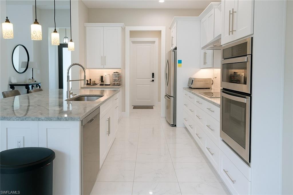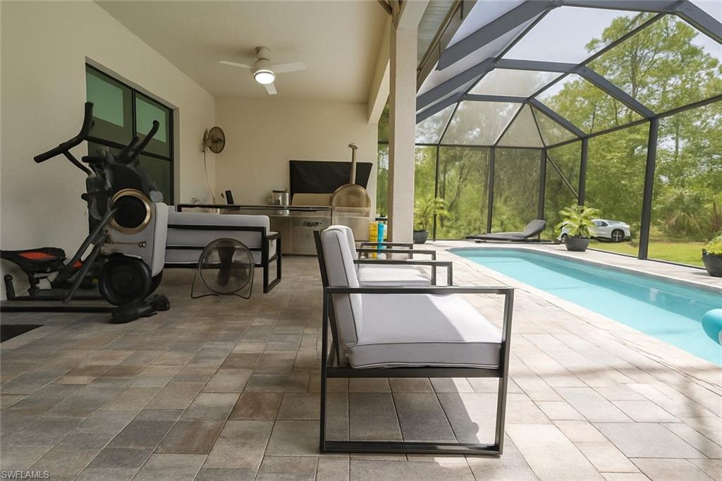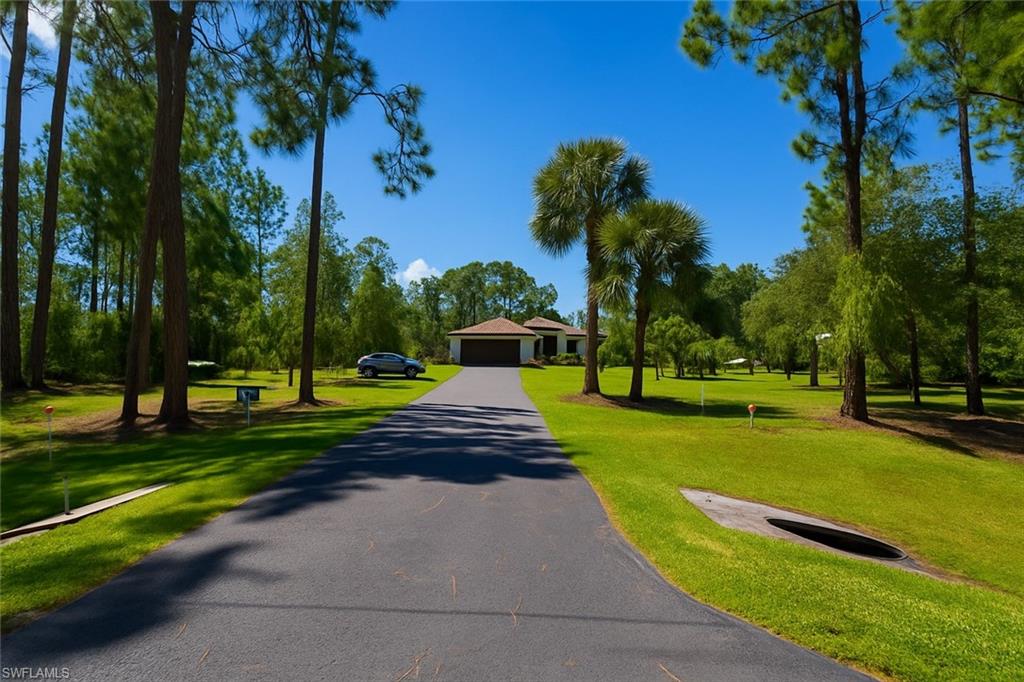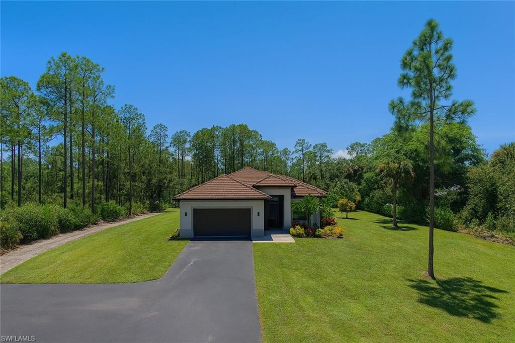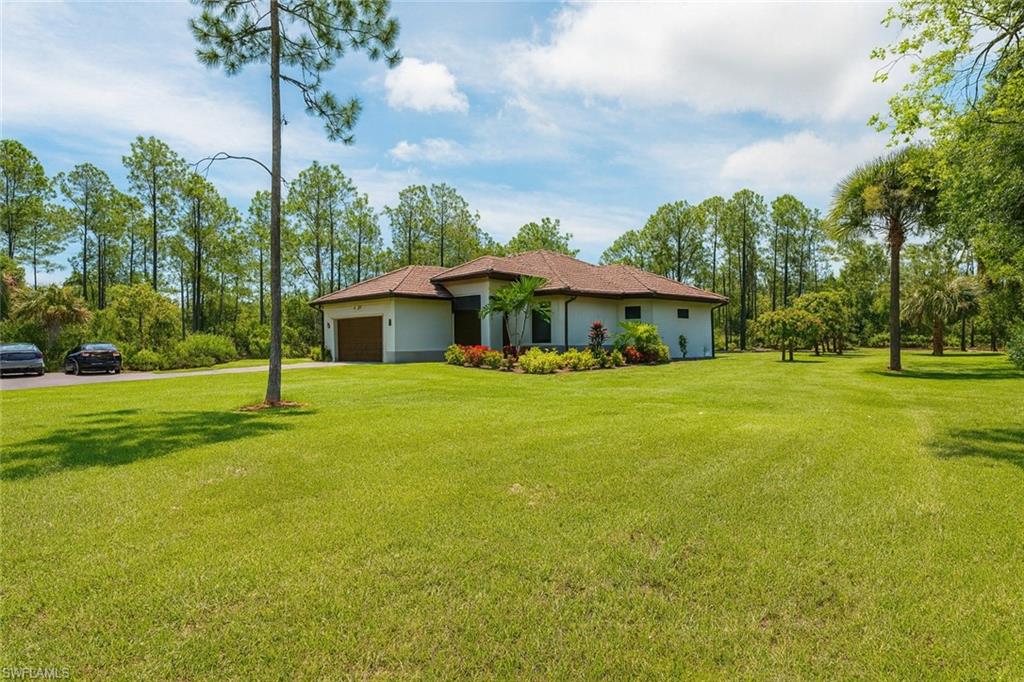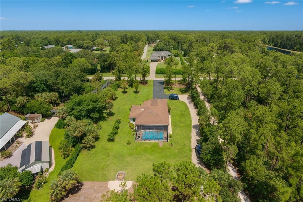 This beautiful 3-bedroom, 2-bathroom home in Naples, FL sits on a 2.27-acre 100% UPLAND LOT IN AN X FLOOD ZONE, NO FLOOD INSURANCE IS REQUIRED! Located on a quiet street in Golden Gate Estates, this home boasts an open floor plan, 10-foot ceilings, marble floors, 8-foot doors, and high baseboards throughout, showcasing exceptional attention to detail. The gourmet kitchen features granite countertops, stainless steel appliances, a double oven, an oversized island, and white shaker soft-close cabinetry. An automated sprinkler system keeps the grass and landscaped areas pristine, while the surrounding natural wooded space offers endless possibilities. Loaded with premium upgrades, this home includes impact-resistant windows and doors, screened in front door entryway, a custom-built walk-in closet, a 500-gallon whole-home reverse osmosis water filtration system, built-in Bluetooth ceiling speakers, a high-end indoor/outdoor surveillance camera system, custom lighted mirrors, and floating bathroom vanities. The 2-car garage is finished with sleek epoxy flooring for a polished touch. Step outside to your private oasis, featuring an oversized screened lanai and a stunning in-ground heated pool—perfect for year-round relaxation. Featuring beautifully designed outdoor kitchen, complete with a full-sized pizza oven, offers the perfect blend of functionality and luxury, allowing you to create authentic, wood-fired pizzas while entertaining in your own backyard oasis. Prime location! Just 1.5 miles from the Everglades Square Shopping Center and conveniently close to Golden Gate Blvd., this home offers the perfect blend of luxury, privacy, and convenience. NO HOA! This property offers plenty of room for a boat or RV, giving you the freedom and flexibility you’ve been looking for. Conveniently located near the future Vanderbilt Road Extension, you’ll enjoy easy access to surrounding areas while still having space and privacy at home!