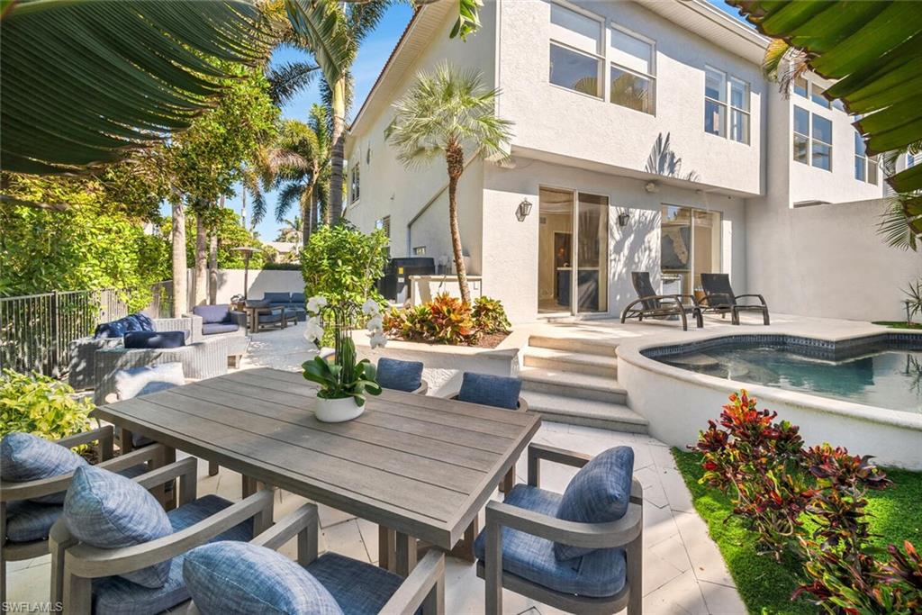 Discover the epitome of luxury living in the heart of Old Naples with this light, bright townhome in the exclusive Villa D’Anna community. A rare opportunity to own in this prime location, this beautifully designed end-unit residence is ideally situated within walking distance of the world-class dining and boutique shopping of both 5th Avenue and 3rd Street. Just five blocks away, Naples' renowned sugar-sand beaches offer the perfect setting for sun-soaked relaxation and breathtaking Gulf Coast sunsets. Designed with effortless Florida living in mind, this exquisite townhome showcases elegant oak wood flooring, custom-built living room cabinetry, and designer wall coverings that add warmth and sophistication. High-end finishes throughout enhance the home’s timeless appeal, while a thoughtfully designed layout provides both space and privacy. Offering three generously sized bedrooms, a den, and a private garage, this home is ideal for both entertaining and everyday comfort. The primary suite serves as a serene retreat, featuring a walk-in closet and a spa-inspired ensuite bath complete with dual vanities and a walk-in shower. Step outside to your own private paradise—an expansive tropical outdoor living area designed for relaxation and entertainment. A stunning freeform onyx pool serves as the focal point, surrounded by marble decking, no-maintenance turf, and lush landscaping that creates a secluded, resort-like ambiance. Multiple seating areas provide the perfect setting for hosting guests, watching the game on a flat-screen TV, or simply unwinding with a good book and a glass of wine. Situated in an intimate, pet-friendly community of just eight residences, this townhome offers an exclusive and tranquil lifestyle in one of Naples' most coveted neighborhoods. Recent updates, including a new A/C and a 2017 roof, ensure peace of mind and modern convenience. Don’t miss this rare opportunity to own a piece of paradise in one of Naples' most sought-after locations—where luxury, comfort, and prime location come together in perfect harmony.