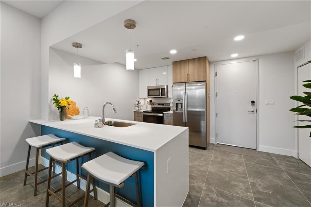 Welcome to Botanika at Bonita Fairways, an exciting new community offering modern living in the heart of Bonita Fairways. Presenting The Beechwood, a beautifully designed 2-bedroom, 2-bath condo on the second floor, featuring preserve views and a thoughtfully crafted 981 sq. ft. layout. Built to the latest construction standards (December 2024), this four-story building blends contemporary design with high-end features. Enjoy a modern kitchen with quartz countertops, stainless steel appliances, designer cabinetry, under-cabinet lighting, and a striking waterfall island. The open-concept living space is enhanced by storm-resistant impact windows, sleek tile flooring, and a spacious screened-in balcony, perfect for unwinding after a day in the Florida sun. A dedicated storage closet provides added convenience. The first floor is reserved for covered parking, with an elevator providing direct access to your unit. As a Botanika resident, you’ll have exclusive access to a brand-new resort-style pool, spa, and clubhouse. Additionally, Bonita Fairways offers an impressive array of amenities, including a gated entrance, 18-hole golf course with a pro shop, lighted tennis and pickleball courts, bocce ball, a state-of-the-art fitness center, yoga classes, and an on-site café with a banquet hall. Enjoy low HOA fees while living just minutes from Southwest Florida’s most stunning beaches, as well as premier shopping and dining at The Promenade, Coconut Point, Mercato, and downtown Bonita Springs. This is Florida living at its finest! Move-in ready and waiting for you—schedule your private tour today!