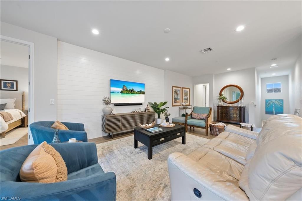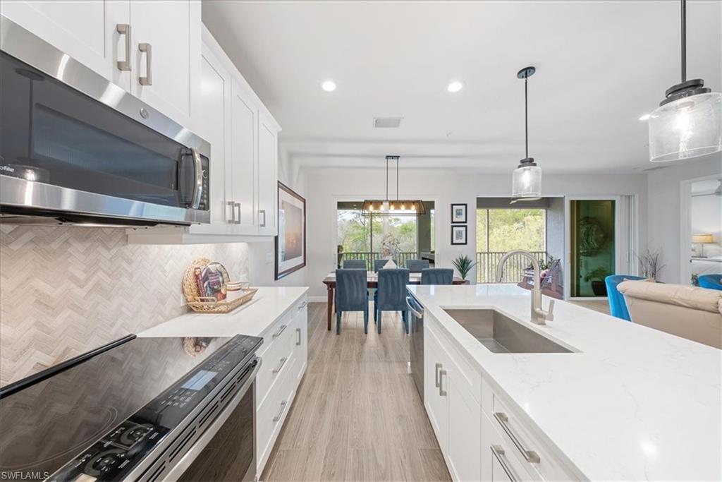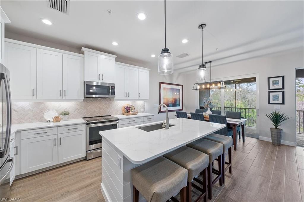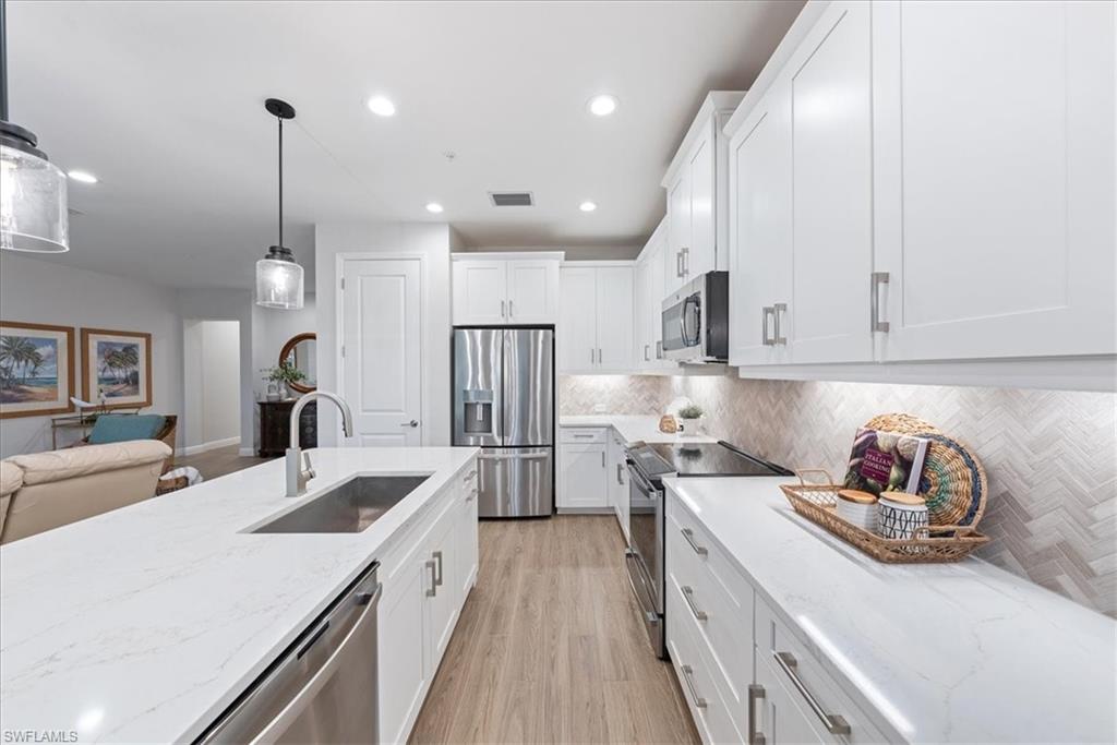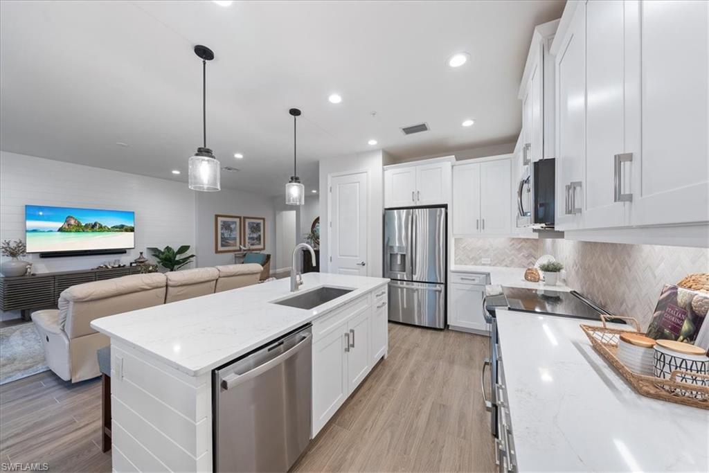 SELLER SAYS PRICE TO SELL! NEW POSITIONED PRICE FOR A LIMITED TIME!! ONE OF THE BEST LOCATIONS IN THE COMMUNITY, PRIVATE PRESERVE VIEWS. Welcome to your exquisite West Indies style second-floor coach home. A true gem, offering 3 spacious bedrooms, 2 luxurious bathrooms, and a convenient 2-car garage. Quiet and Serene Preserve Views, as you watch birds fly and deer stroll. Step inside to discover a meticulously upgraded interior that shows like a model home, featuring custom ship lap additions, elegant custom lighting, and recessed lighting throughout that illuminates every corner. Plantation shutters throughout adding beautiful natural light. The modern kitchen is adorned with sleek quartz countertops, 42” cabinets and designer backsplash providing both style and durability. GE Profile appliances, including induction cooktop, add to this chef ready kitchen. Impact windows offer peace of mind and energy efficiency. Oversized lanai lets you take in the best of nature! Nestled within the beautiful community of Seychelles, this home boasts resort-style amenities that cater to your every desire, including a state-of-the-art fitness center, a stunning resort-style pool and spa, a BBQ area perfect for entertaining, and a cozy fire pit for evenings under the stars. Why wait for new construction when this impeccable home is ready for you to move in today?! On top of that this is a very pet friendly community. Located just 10 minutes from downtown Naples and 5th Avenue. Come experience luxury living at its finest, with every detail thoughtfully crafted to enhance your lifestyle.