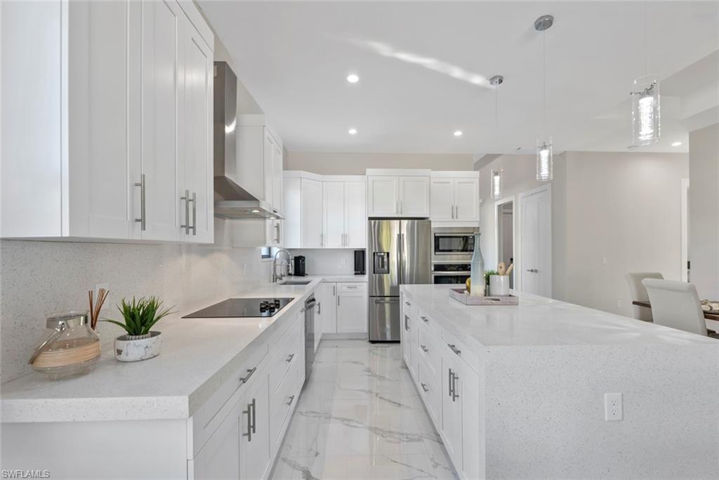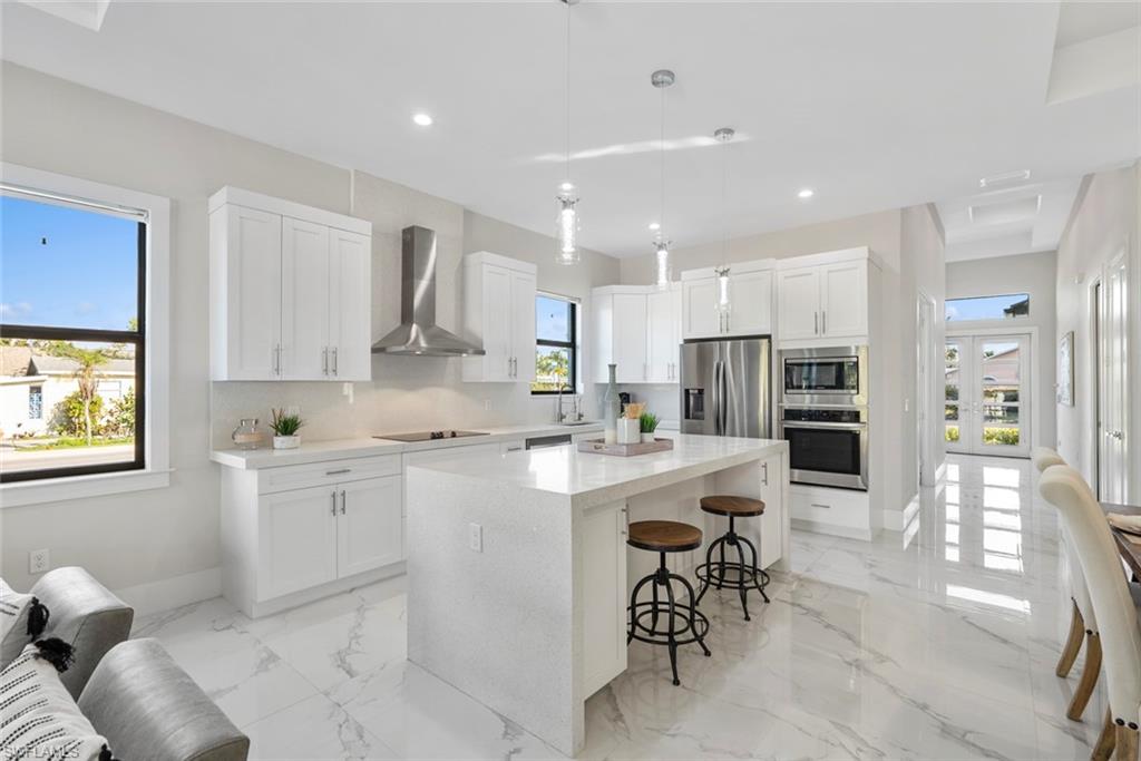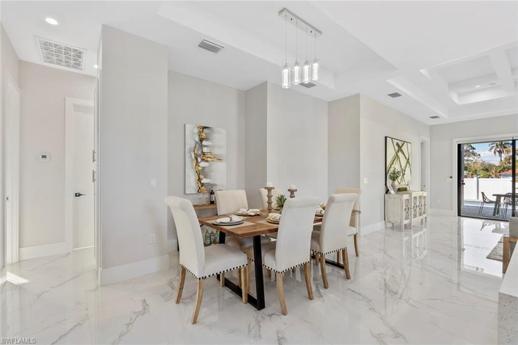 Minutes to Vanderbilt Beach and the Ritz Carlton, welcome to 799 108th Ave N, a stunning home in the highly sought-after Naples Park, ideal for full-time living, a vacation retreat, or a lucrative investment property like Airbnb. This 4-bedroom, 3-bathroom pool home offers a fantastic combination of luxury and convenience. Professionally furnished, this modern gem features an open-concept floor plan with high ceilings, crown molding, and a sleek tile roof. The gourmet kitchen boasts 42" white wood cabinets, a large dine-at island with Quartz countertops, stainless steel appliances, and a hooded range that flows seamlessly into the spacious living area with coffered tray ceilings and large paneled sliding doors. Step outside to enjoy the expansive lanai, complete with an outdoor kitchen and built-in BBQ, perfect for entertaining. The private, fenced-in pool adds a touch of relaxation. The primary suite is a true retreat, with a walk-in shower, freestanding soaking tub, dual vanity, and a generous walk-in closet with an organizing system. Just 5 minutes from Naples' stunning beaches, Mercato shopping and dining, and the newly updated Pavilion shopping center, you can easily drive, walk, or bike to all the best local attractions. Don’t miss the opportunity to own this incredible property in one of Naples’ most desirable neighborhoods!