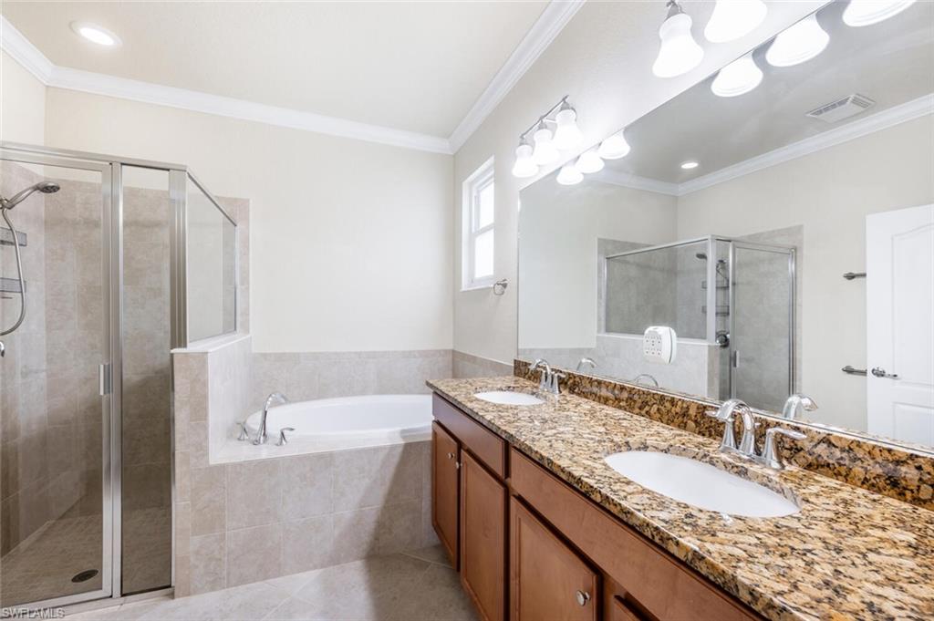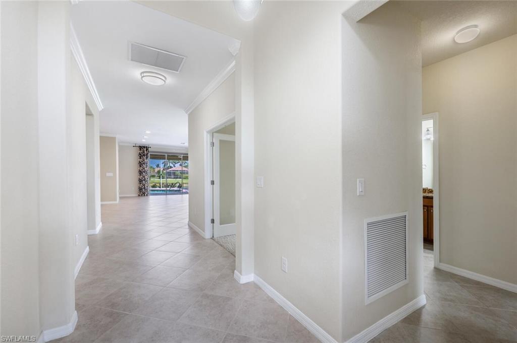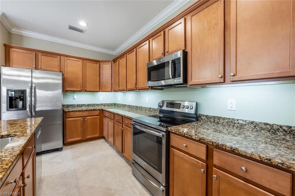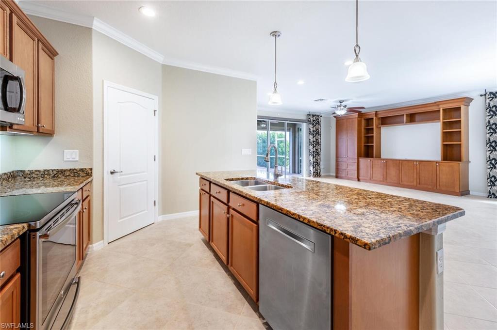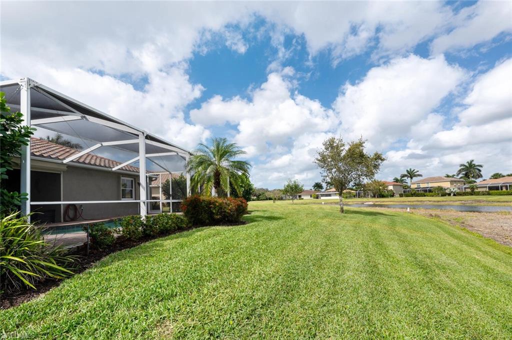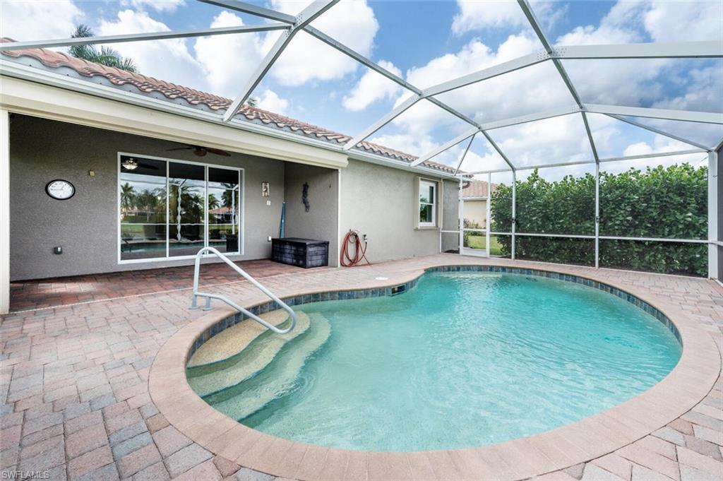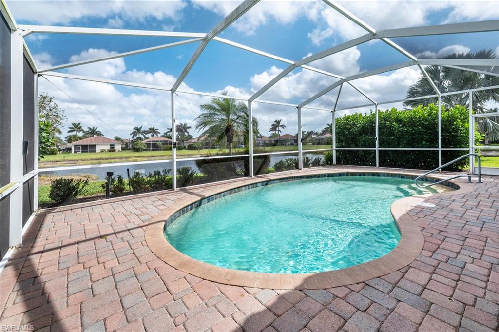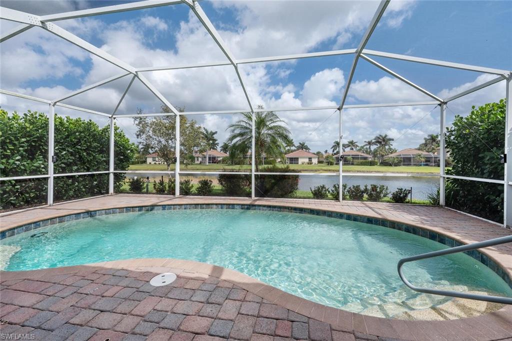 Bring your offer! 4 bedroom, 3 bathroom Lakefront, pool home in the gated community Reflection Lakes in Naples that has a transferable flood policy if needed. Plus the home comes with a 1 year warranty!!! This beautiful home is located on an extra wide lot for large lake views! The home is also near the end of a cul-de-sac and features separation of bedrooms ensuring everyone has their own space. The gourmet kitchen has granite countertops, stainless steel appliances, and a large island, making it a chef's dream. The open floor plan is designed for both comfort and entertaining, seamlessly connecting the living, dining, kitchen and lanai areas. The salt water and heated pool is relaxing and refreshing year round and for entertaining. The home has impact windows and doors as well as electric, accordion, and roll down shutters. The home has crown molding, an en-suite guest room, tile on the diagonal, and built in cabinets. The front door has glass installed and a retractable screen. Reflection Lakes offers a host of amenities, including a clubhouse with a stunning pool, kiddie pool play area, exercise facility, ballroom, billiards, bocce court, picnic area, management on site, and more. Located just a short drive from Naples' pristine beaches, shopping, and dining options, this home combines luxury, convenience, and an amazing Florida lifestyle.