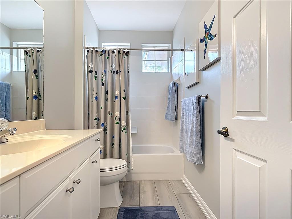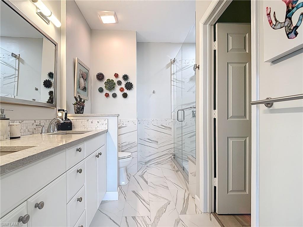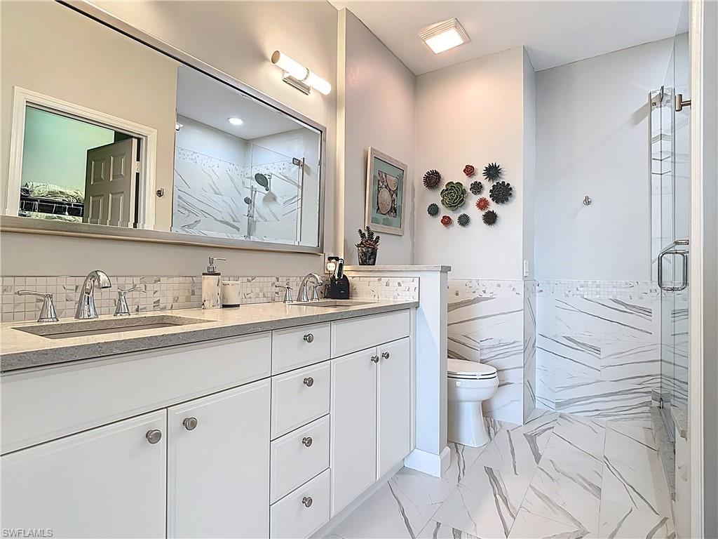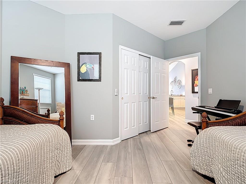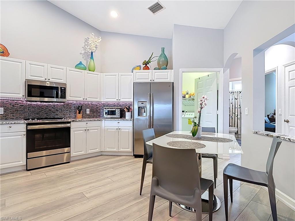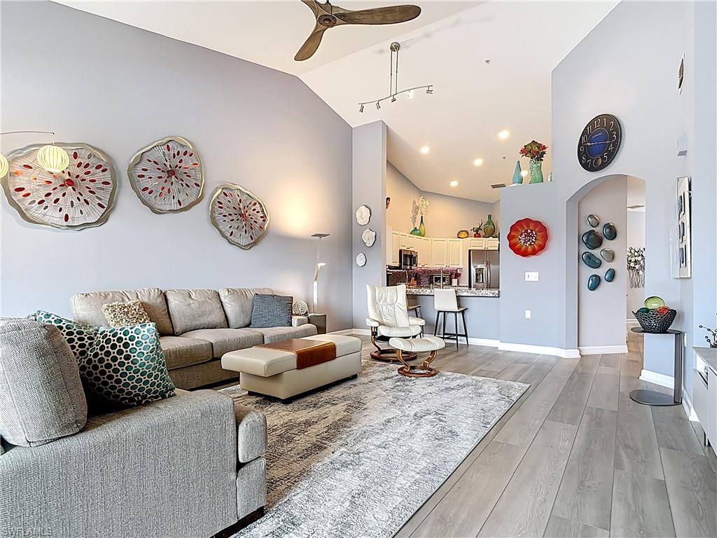 Welcome to this beautifully updated 2nd floor "Carriage" home in the highly sought-after community of Bridgewater Bay! This awesome south-facing condo receives more direct sunlight throughout the day, creating a bright and cheerful living space. With 1818 sq. ft. under air and vaulted cathedral ceilings, this freshly painted home includes 3 full bedrooms and 2 1/2 bathrooms, with updated ceiling fans and Smart Home lighting. This gorgeous home is being offered furnished with some exclusions. Beautifully maintained, the spacious kitchen has been updated with high-end leather granite countertops and a granite composite sink, both resistant to scratches, stains, and heat. The newer GE stainless steel appliances and expandable frosted glass dining set complete a kitchen you'll love to entertain in! You'll find wide, beveled edge Cortec flooring throughout the condo, providing a beautiful and carefree living space. This home is a must see! The master bath has been recently updated with oversize tile, creating an attractive open shower, with gorgeous dual sinks and a beautiful quartz countertop. This spectacular condo is located just steps away from the amenity-rich Bridgewater Bay Clubhouse. The attached one-stall garage is sizeable and provides ample storage space. Bridgewater Bay is a centrally located gated community that is close to the beach, the fine dining of 5th Avenue, and in close proximity to area shopping. The spectacular amenities include a resort style pool, screened-in lap pool, newly updated social room, pickleball, tennis, fitness room, community hot tub, steam room, sauna, and so much more! Residents do enjoy a full calendar of community events each season! Buy this lovely condo today to experience everything this friendly and welcoming community has to offer!