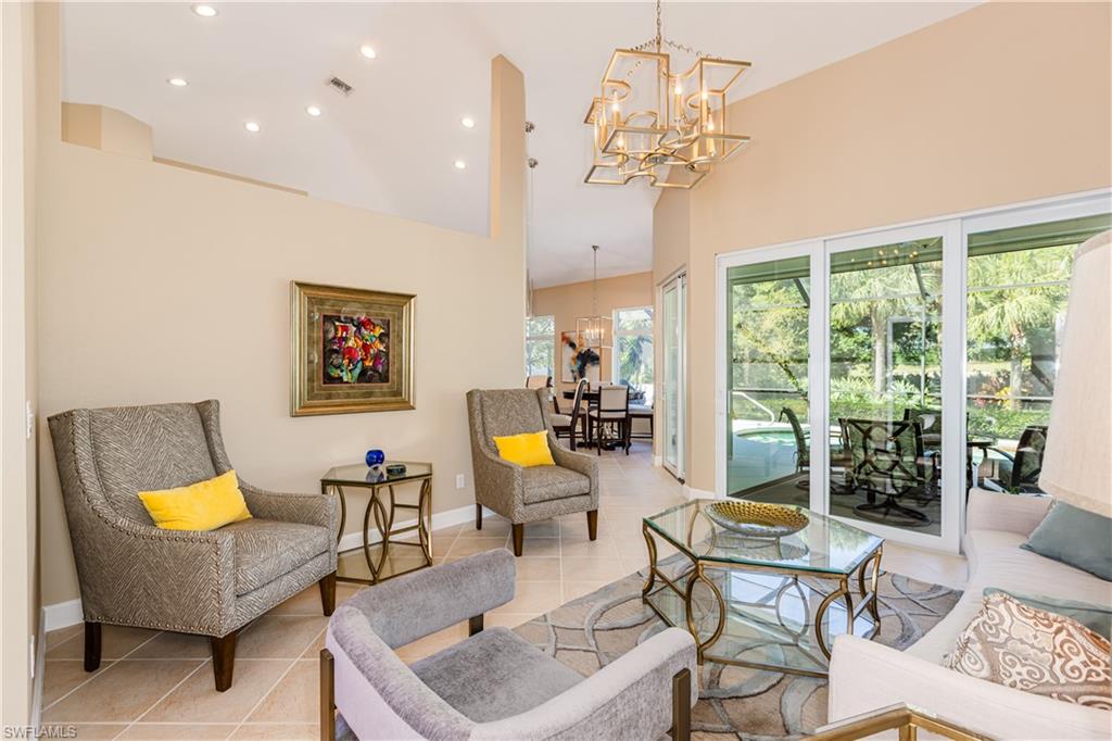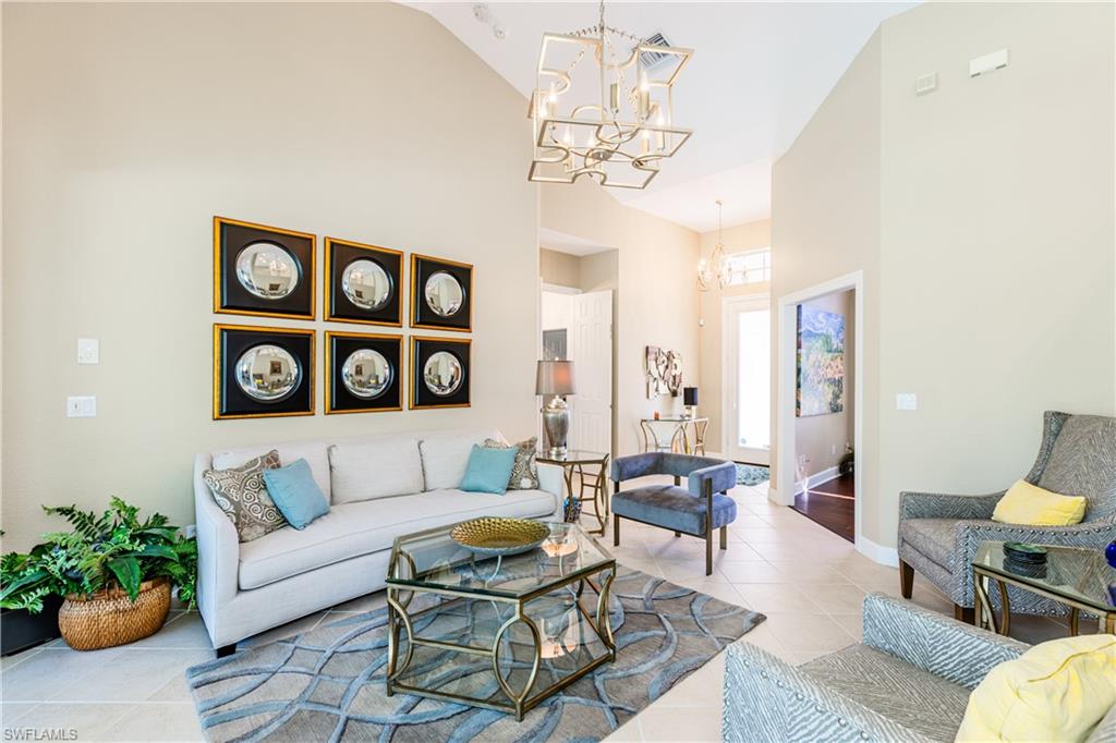 Enjoy golf & landscaped views from your pool & lanai of this beautiful cul-de-sac home in the Cypress Cove section of Grandezza Golf & CC offered Turnkey! This was the “Areca” floor plan which very few were built & hard to come by. The 3 BR + Den home flows nicely, without wasted space, from the comfortable living room, to the open kitchen & breakfast area, to the spacious family room. This home is very clean & shows well with attractive decor. The owners remodeled several years ago, with quality Bosch S.S. appliances, light cabinetry, attractive granite counter tops & a beverage refrigerator. The owners also added 2 large picture windows in the family room bringing the colors of the outdoors into the home. The tile flooring in the main areas were laid on the diagonal, & rich engineered wood flooring in the bedrooms & family room were also added. The home has impact glass, electric storm shutters as well as manual shutters giving it good protection when needed. The den has been used as a formal dining room. The roof was replaced in 2020. Other features include plantation shutters, an outdoor propane fire pit, a Weber BBQ, storage chests on the lanai & also in the garage , a newer heat pump for the pool & more! Turnkey means all you need is a toothbrush! Grandezza is a year-round, active community, with its luxurious 53,000 sq. ft. clubhouse, golf memberships available, in a fabulous location, across from Germain Arena, Miromar Outlets, next to a shopping center, FGCU, near hotels, restaurants , the airport & more to come.