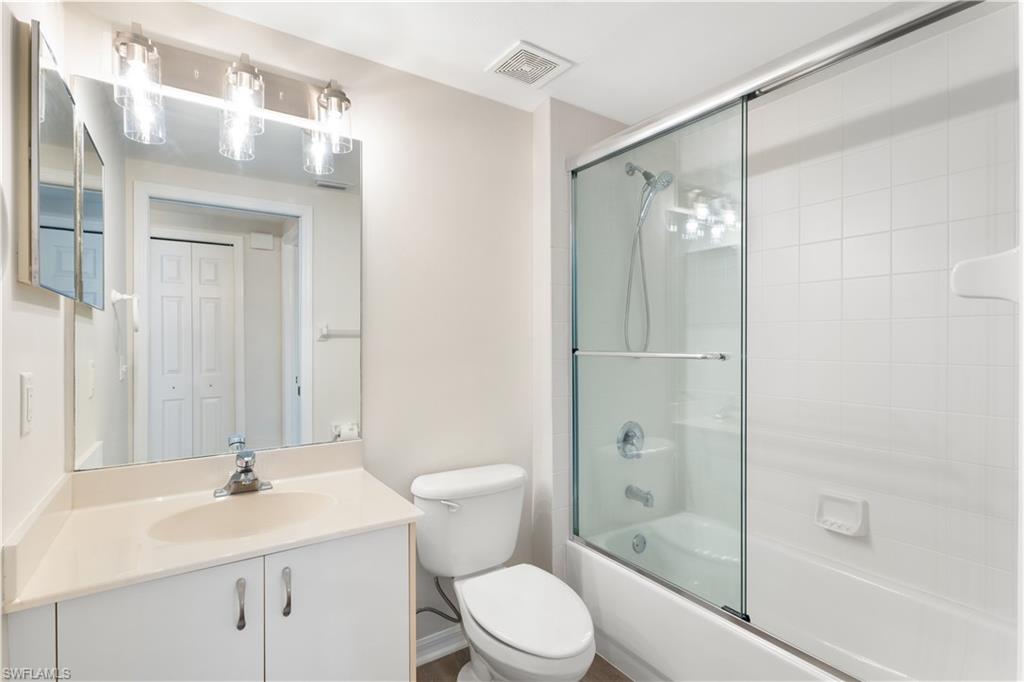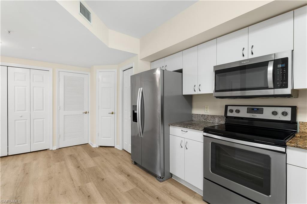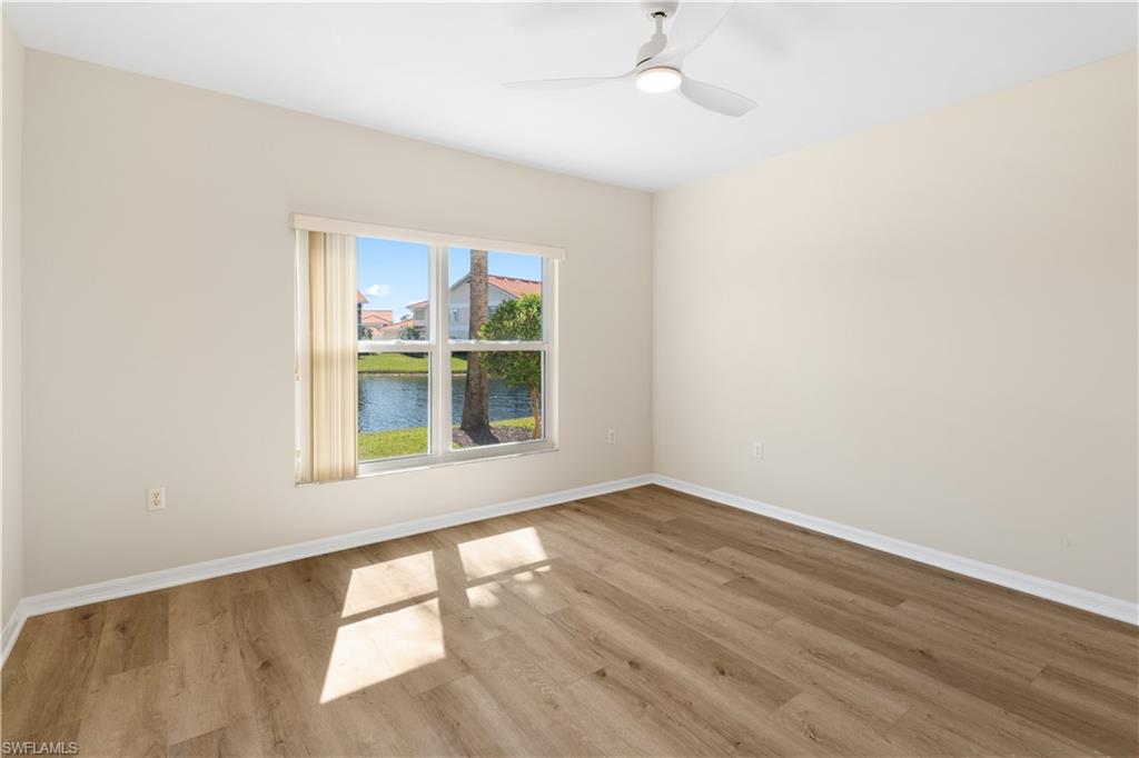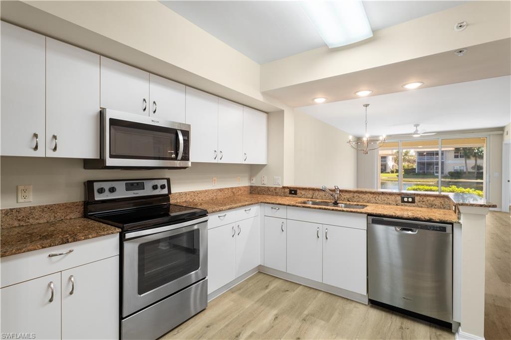 This immaculate FIRST FLOOR 2 bedroom, 2 bath condo features a bright and airy floorplan with lake views. BRAND NEW LVP flooring, fresh paint from top to bottom, and new lights/fans make this condo move in ready. Storm ready with BRAND NEW HURRICANE IMPACT WINDOWS/SLIDING GLASS DOOR & ELECTRIC ROLL DOWN SHUTTER ON THE LANAI. The primary suite features dual sinks, walk in shower with frameless shower enclosure, and walk in closet. The unit comes with one covered parking spot. NEW Roofs installed (2023)! Carlton Lakes features a clubhouse, tennis and bocce courts, two access gates and is located in a prime North Naples location next to Seed to Table and just 2 min from I75.