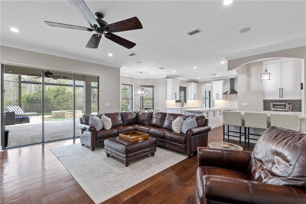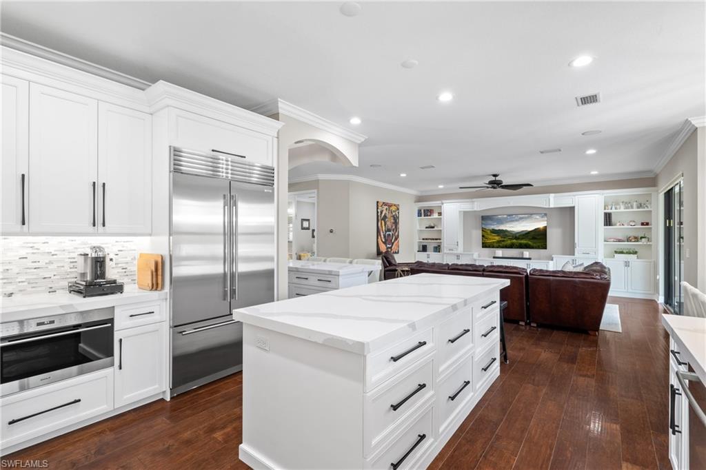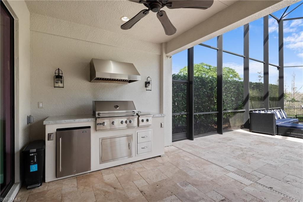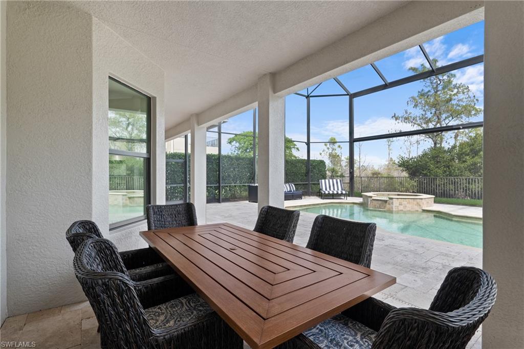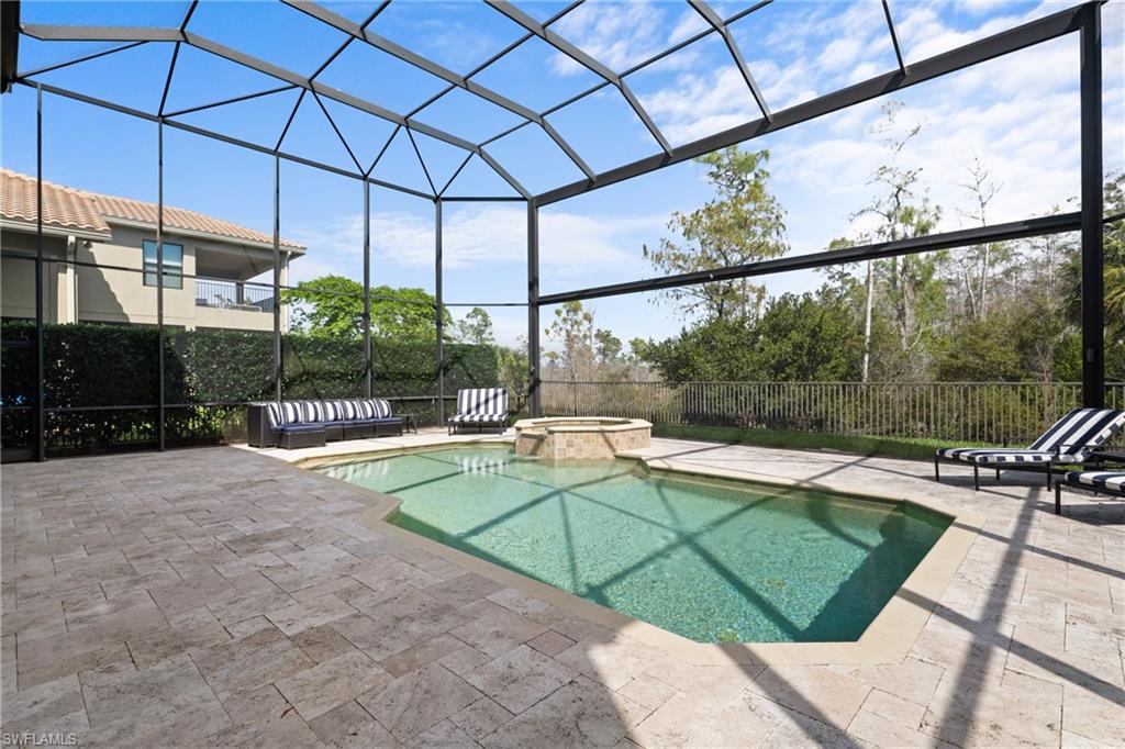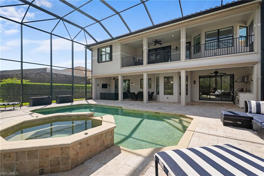 Nestled overlooking a private and protected preserve, this meticulously maintained "Venetian" floorplan home offers just over 4,500 sq. ft. of luxurious living space. With 5 bedrooms, den, loft, 5 full baths, and a 3-car garage, this residence provides ample room for family living and entertaining. The split floorplan includes formal living and dining rooms, an updated chef’s kitchen, a spacious family room, and a den with an ensuite bath that can easily be used as a 6th bedroom all on the ground floor. Upstairs, you’ll find a generously sized loft, 4 guest bedrooms (3 of which have ensuite baths), and a magnificent primary suite featuring a sitting area, his and her walk-in closets with built-ins, and a luxurious bath with oversized vanities, center soaking tub, and walk-in shower. Both the loft and the primary suite open to a 35’x11’ screened balcony, offering serene views of the preserve. The home is designed for both comfort and entertaining, with a stunning outdoor living area complete with a fully-equipped outdoor kitchen, and heated saltwater pool with raised spa. Special features abound, including a recently remodeled kitchen (2023) with custom cabinetry, double-thick quartz countertops, and high-end appliances, including a 48” built-in Sub-Zero refrigerator/freezer, Wolf oven, microwave, and induction cooktop. Additional updates include two newer HVAC systems with all-new ductwork; a two-story screen cage with super screen (installed 2019); freshly painted exterior (2024); whole-house water softener; glued-down engineered wood floors on the first floor and updated sculpted carpeting in the den and second floor; custom built-in in the family room; crown molding throughout the common areas and primary suite; plantation shutters; in-ceiling speakers; fenced rear yard; and more! Storm safety and convenience are top priorities with hurricane impact windows on the front of the home, accordion shutters on side windows, and Stormsmart electric roll-down hurricane screens on the rear of the home, enclosing both covered lanais. Located in Riverstone, North Naples' premier community, this home offers access to incredible amenities, including a clubhouse with a fitness center, indoor/outdoor basketball courts, a resort-style pool, lap pool, kiddie water park, playground, 5 tennis courts, billiards room, social hall, game room, and more. Riverstone’s prime location is just minutes from I-75, the beach, Mercato, RSW, and downtown Naples. Top-rated schools are nearby, including Laurel Oak Elementary, Oakridge Middle School, and Aubrey Rogers High School. Low HOA Fees of just $1450/quarter which includes all clubhouse amenities, gated entry, home landscaping, home irrigation water, and home irrigation system maintenance.