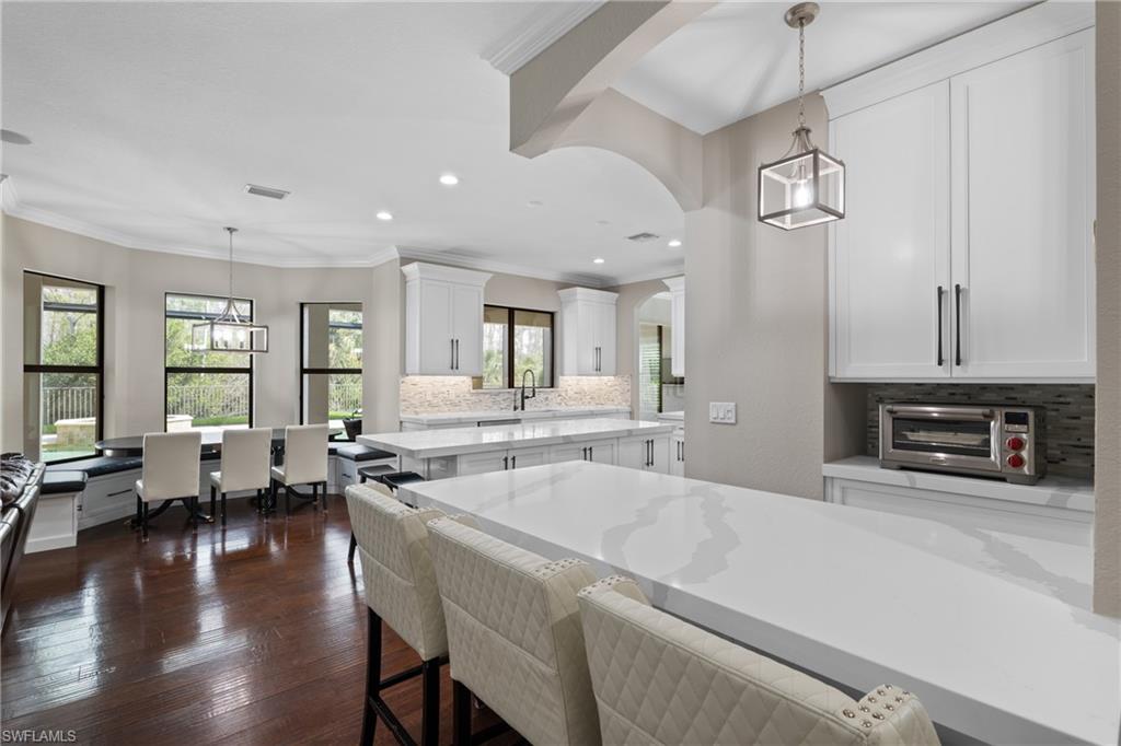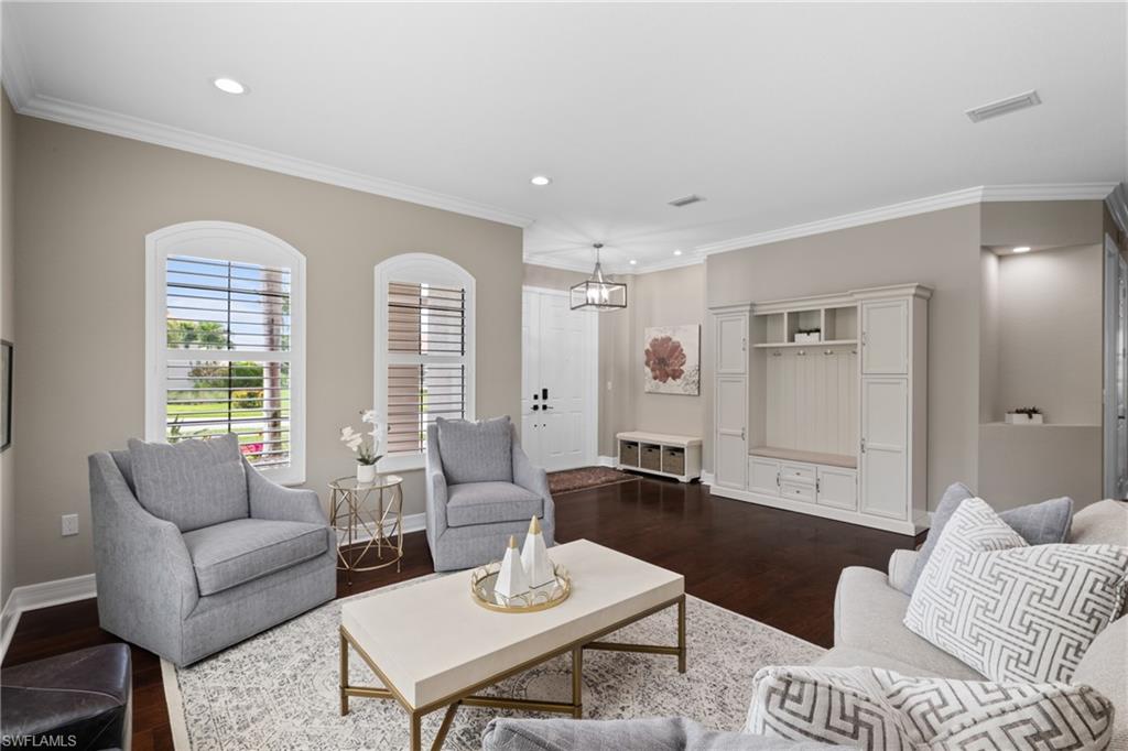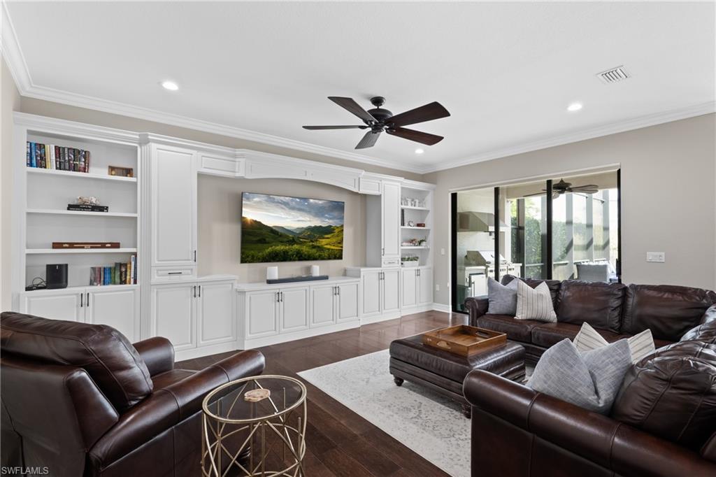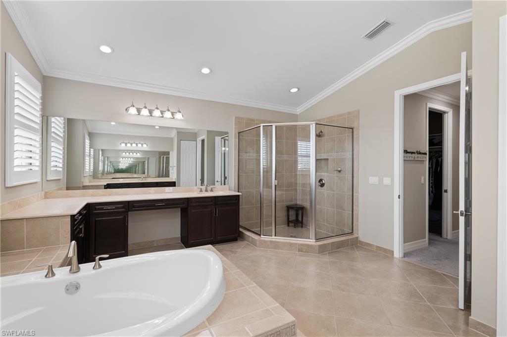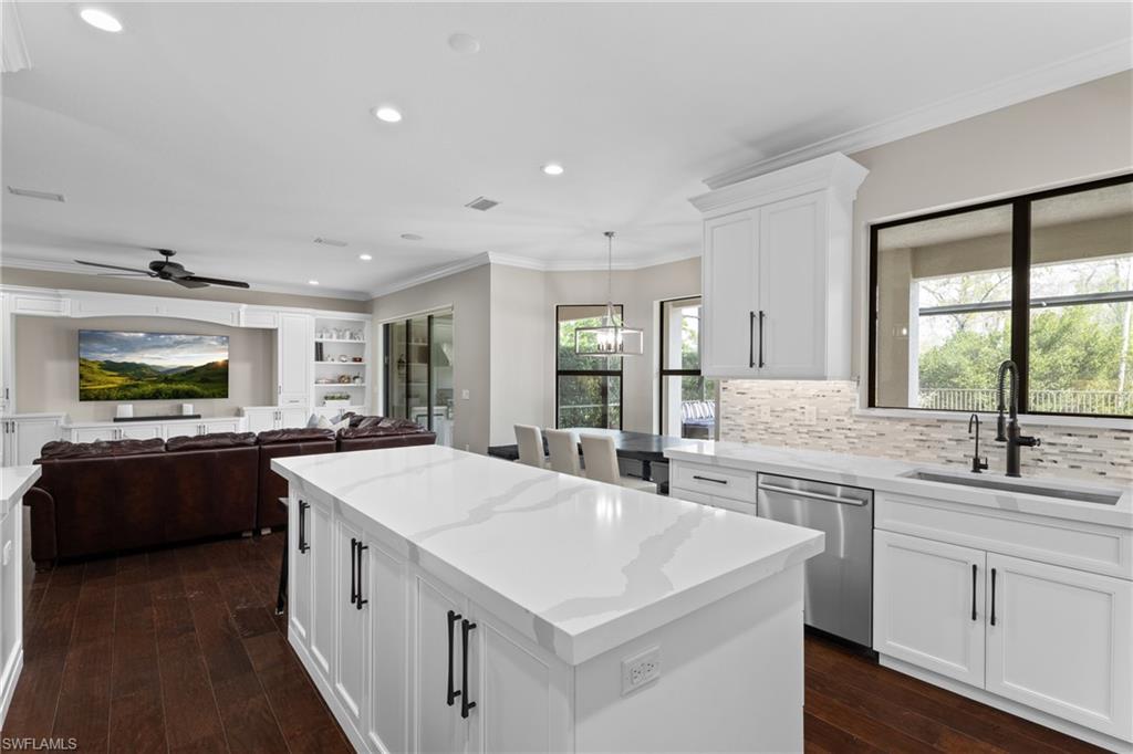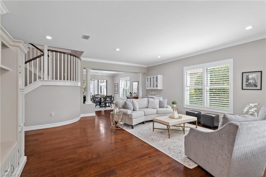 Nestled overlooking a private and protected preserve, this meticulously maintained "Venetian" floorplan home offers just over 4,500 sq. ft. of luxurious living space. With 5 bedrooms, den, loft, 5 full baths, and a 3-car garage, this residence provides ample room for family living and entertaining. The split floorplan includes formal living and dining rooms, an updated chef’s kitchen, a spacious family room, and a den with an ensuite bath that can easily be used as a 6th bedroom all on the ground floor. Upstairs, you’ll find a generously sized loft, 4 guest bedrooms (3 of which have ensuite baths), and a magnificent primary suite featuring a sitting area, his and her walk-in closets with built-ins, and a luxurious bath with oversized vanities, center soaking tub, and walk-in shower. Both the loft and the primary suite open to a 35’x11’ screened balcony, offering serene views of the preserve. The home is designed for both comfort and entertaining, with a stunning outdoor living area complete with a fully-equipped outdoor kitchen, and heated saltwater pool with raised spa. Special features abound, including a recently remodeled kitchen (2023) with custom cabinetry, double-thick quartz countertops, and high-end appliances, including a 48” built-in Sub-Zero refrigerator/freezer, Wolf oven, microwave, and induction cooktop. Additional updates include two newer HVAC systems with all-new ductwork; a two-story screen cage with super screen (installed 2019); freshly painted exterior (2024); whole-house water softener; glued-down engineered wood floors on the first floor and updated sculpted carpeting in the den and second floor; custom built-in in the family room; crown molding throughout the common areas and primary suite; plantation shutters; in-ceiling speakers; fenced rear yard; and more! Storm safety and convenience are top priorities with hurricane impact windows on the front of the home, accordion shutters on side windows, and Stormsmart electric roll-down hurricane screens on the rear of the home, enclosing both covered lanais. Located in Riverstone, North Naples' premier community, this home offers access to incredible amenities, including a clubhouse with a fitness center, indoor/outdoor basketball courts, a resort-style pool, lap pool, kiddie water park, playground, 5 tennis courts, billiards room, social hall, game room, and more. Riverstone’s prime location is just minutes from I-75, the beach, Mercato, RSW, and downtown Naples. Top-rated schools are nearby, including Laurel Oak Elementary, Oakridge Middle School, and Aubrey Rogers High School. Low HOA Fees of just $1450/quarter which includes all clubhouse amenities, gated entry, home landscaping, home irrigation water, and home irrigation system maintenance.