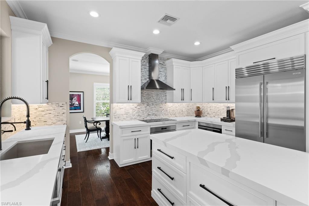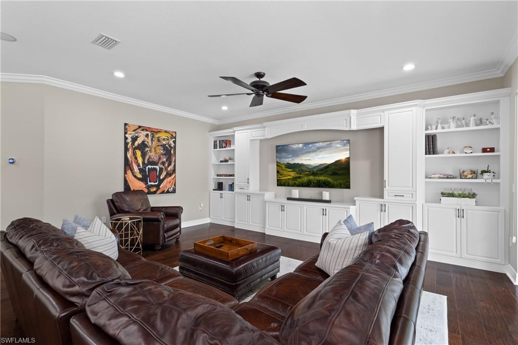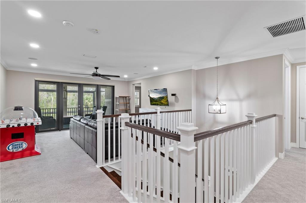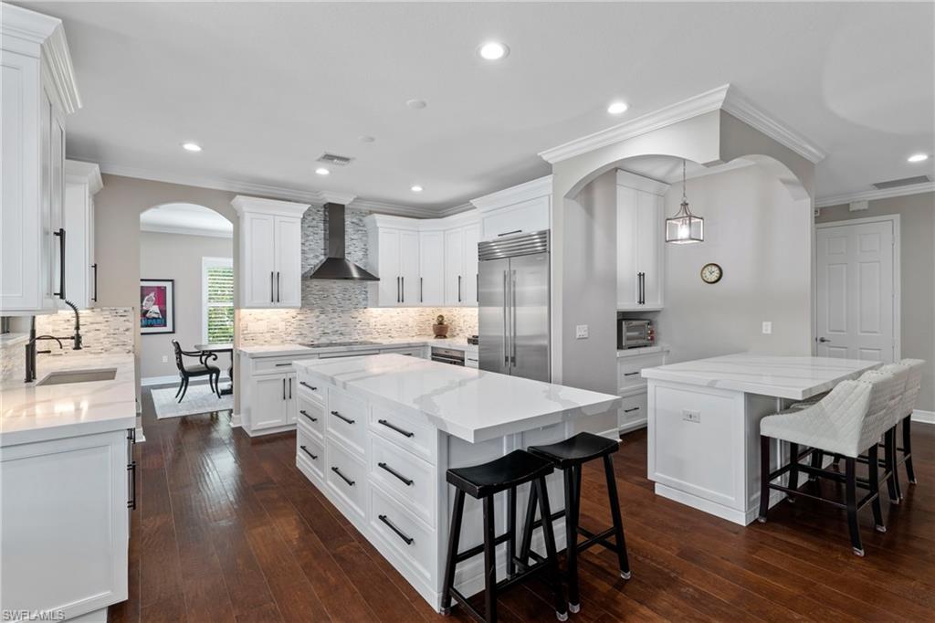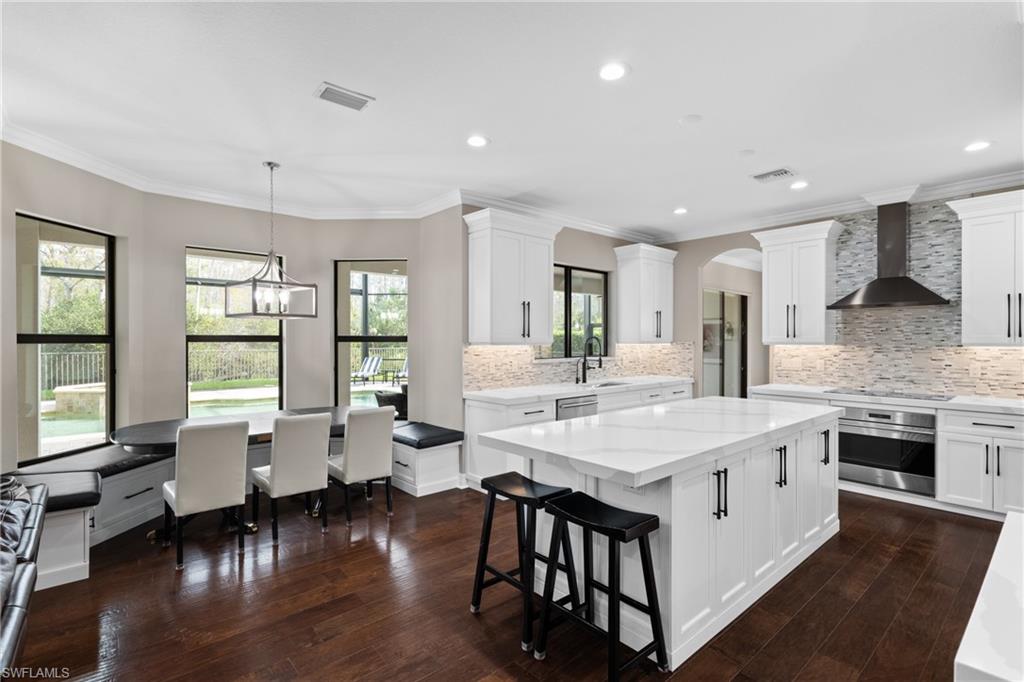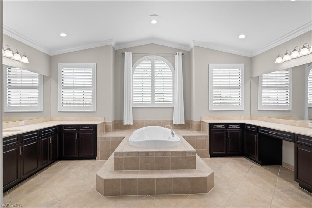 Nestled overlooking a private and protected preserve, this meticulously maintained "Venetian" floorplan home offers just over 4,500 sq. ft. of luxurious living space. With 5 bedrooms, den, loft, 5 full baths, and a 3-car garage, this residence provides ample room for family living and entertaining. The split floorplan includes formal living and dining rooms, an updated chef’s kitchen, a spacious family room, and a den with an ensuite bath that can easily be used as a 6th bedroom all on the ground floor. Upstairs, you’ll find a generously sized loft, 4 guest bedrooms (3 of which have ensuite baths), and a magnificent primary suite featuring a sitting area, his and her walk-in closets with built-ins, and a luxurious bath with oversized vanities, center soaking tub, and walk-in shower. Both the loft and the primary suite open to a 35’x11’ screened balcony, offering serene views of the preserve. The home is designed for both comfort and entertaining, with a stunning outdoor living area complete with a fully-equipped outdoor kitchen, and heated saltwater pool with raised spa. Special features abound, including a recently remodeled kitchen (2023) with custom cabinetry, double-thick quartz countertops, and high-end appliances, including a 48” built-in Sub-Zero refrigerator/freezer, Wolf oven, microwave, and induction cooktop. Additional updates include two newer HVAC systems with all-new ductwork; a two-story screen cage with super screen (installed 2019); freshly painted exterior (2024); whole-house water softener; glued-down engineered wood floors on the first floor and updated sculpted carpeting in the den and second floor; custom built-in in the family room; crown molding throughout the common areas and primary suite; plantation shutters; in-ceiling speakers; fenced rear yard; and more! Storm safety and convenience are top priorities with hurricane impact windows on the front of the home, accordion shutters on side windows, and Stormsmart electric roll-down hurricane screens on the rear of the home, enclosing both covered lanais. Located in Riverstone, North Naples' premier community, this home offers access to incredible amenities, including a clubhouse with a fitness center, indoor/outdoor basketball courts, a resort-style pool, lap pool, kiddie water park, playground, 5 tennis courts, billiards room, social hall, game room, and more. Riverstone’s prime location is just minutes from I-75, the beach, Mercato, RSW, and downtown Naples. Top-rated schools are nearby, including Laurel Oak Elementary, Oakridge Middle School, and Aubrey Rogers High School. Low HOA Fees of just $1450/quarter which includes all clubhouse amenities, gated entry, home landscaping, home irrigation water, and home irrigation system maintenance.