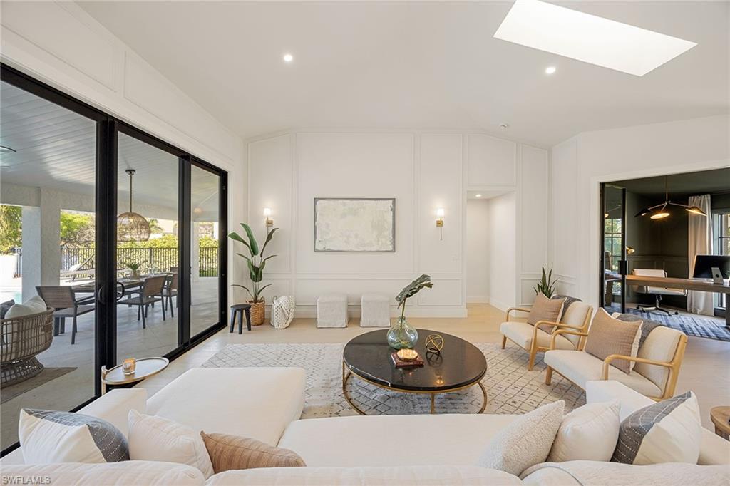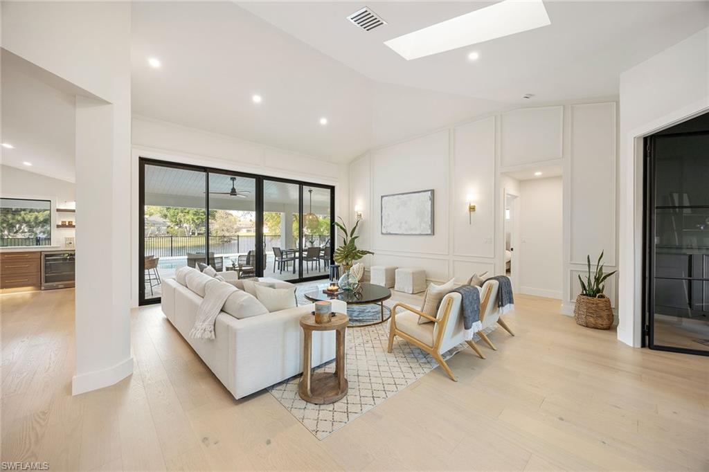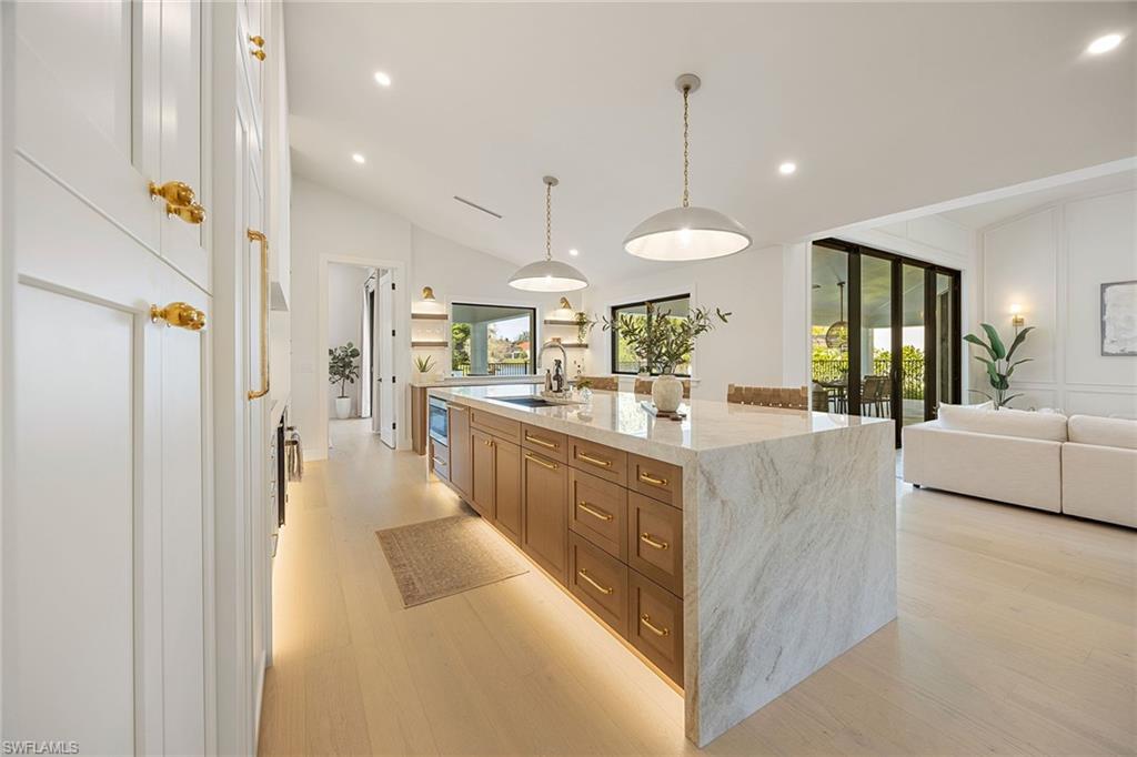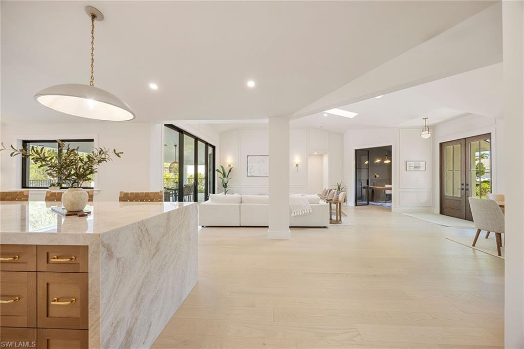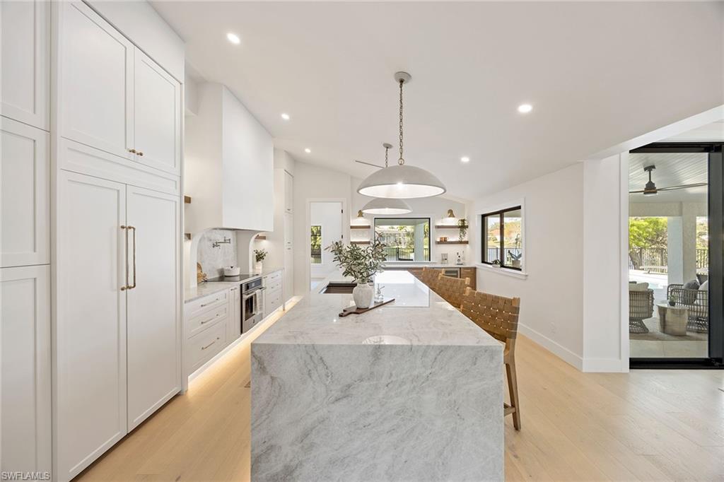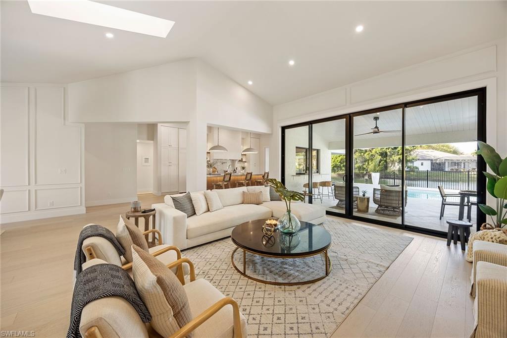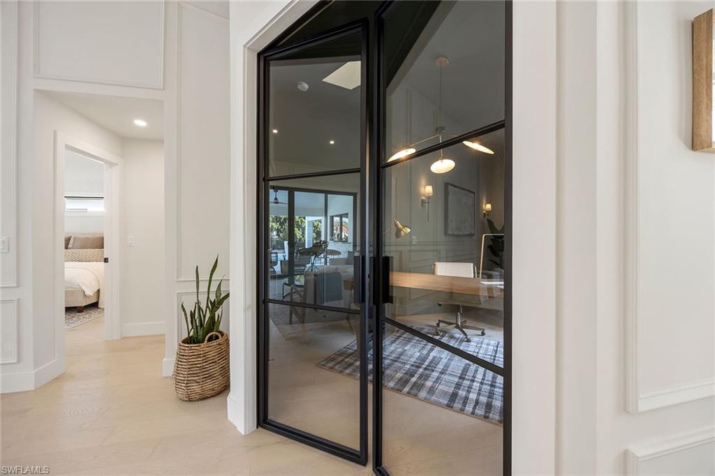 Look no further than this reimagined, redesigned, stunning Monterey residence. This meticulously renovated home boasts four bedrooms plus den/office with three full baths and powder room. Thoughtfully designed, open concept floor plan that flows effortlessly for your comfort and enjoyment. The gourmet kitchen boasts JennAir appliances, Bosch dishwasher, Taj Mahal quartzite counters, custom kitchen shelves and cabinetry with Rejuvenation Brass hardware, LED lighting under cabinets and shelves, custom fluted wood under island, Zephyr beverage refrigerator, Zephyr monsoon hood vent and gorgeous Visual Comfort concrete pendant lights. Additional features are the beautiful white oak hardwood flooring throughout, extensive custom trim work, black iron and glass custom French doors to the office, built-ins in all closets, exquisite tiles and finishes in baths, frameless shower doors, impact 9-foot sliders, 8-foot front doors, new roof and impact windows throughout. Step outside to the expansive open lanai with pool and spa and your putting green. Monterey, is an amenity-rich community and near excellent public and private schools. Amazing location for shopping, dining and our gorgeous beaches! Don’t miss this Monterey gem.