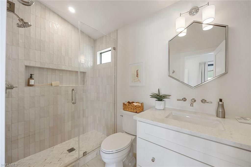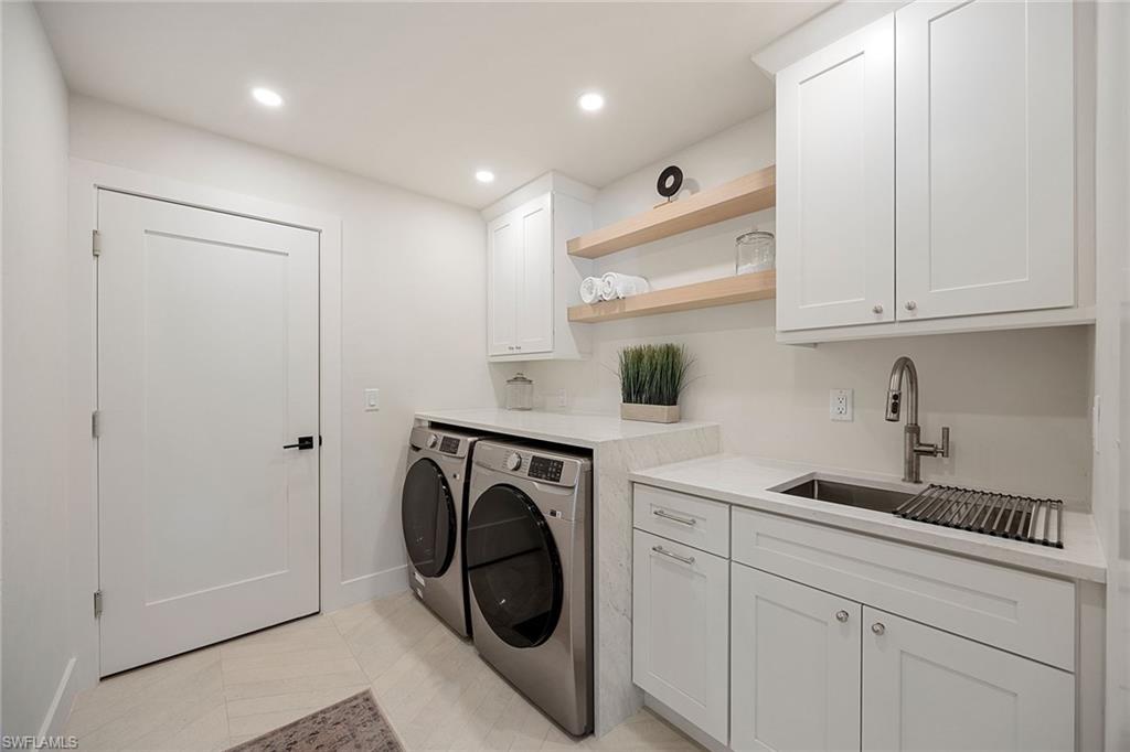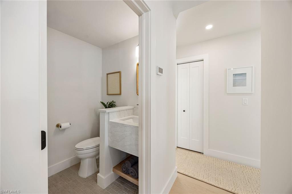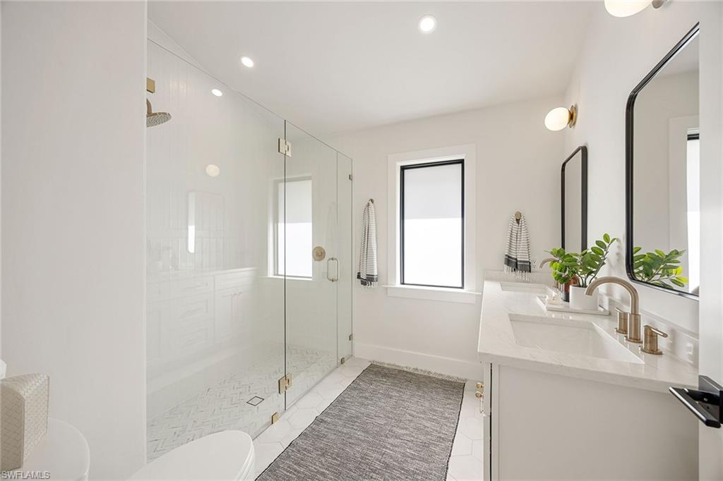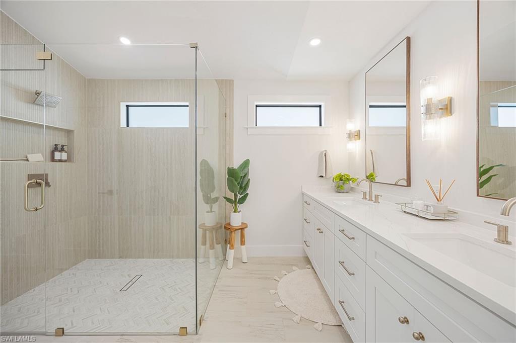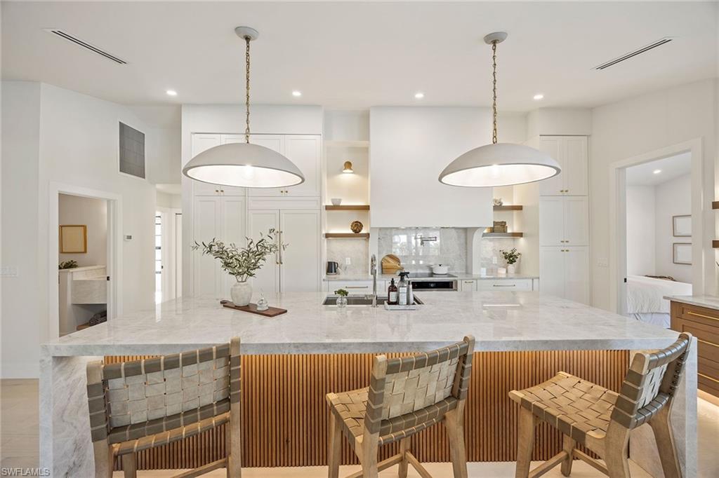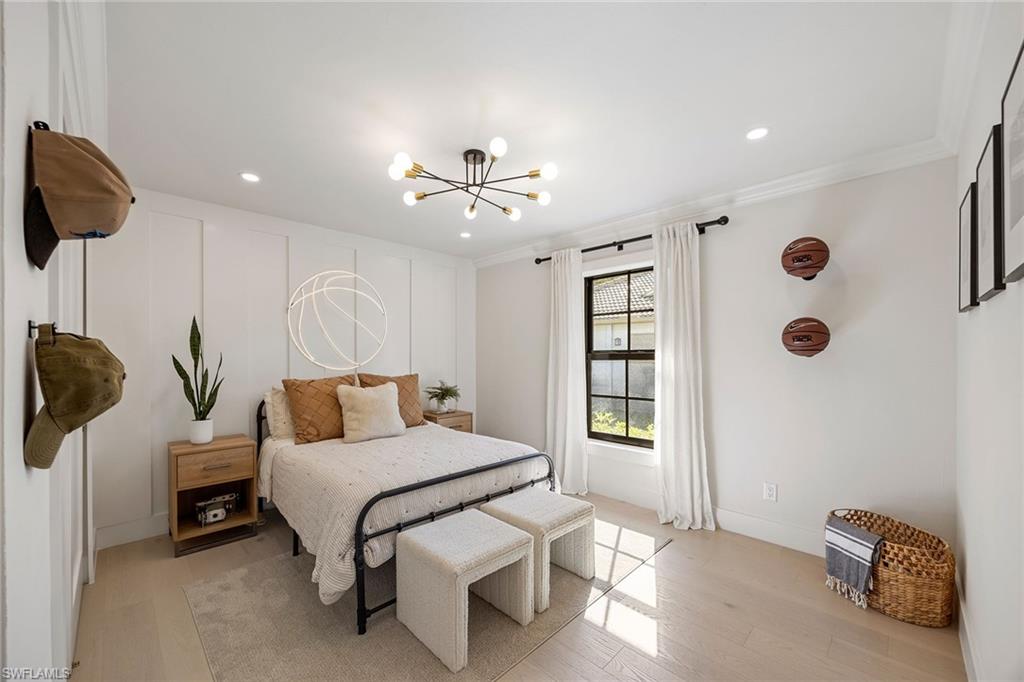 Look no further than this reimagined, redesigned, stunning Monterey residence. This meticulously renovated home boasts four bedrooms plus den/office with three full baths and powder room. Thoughtfully designed, open concept floor plan that flows effortlessly for your comfort and enjoyment. The gourmet kitchen boasts JennAir appliances, Bosch dishwasher, Taj Mahal quartzite counters, custom kitchen shelves and cabinetry with Rejuvenation Brass hardware, LED lighting under cabinets and shelves, custom fluted wood under island, Zephyr beverage refrigerator, Zephyr monsoon hood vent and gorgeous Visual Comfort concrete pendant lights. Additional features are the beautiful white oak hardwood flooring throughout, extensive custom trim work, black iron and glass custom French doors to the office, built-ins in all closets, exquisite tiles and finishes in baths, frameless shower doors, impact 9-foot sliders, 8-foot front doors, new roof and impact windows throughout. Step outside to the expansive open lanai with pool and spa and your putting green. Monterey, is an amenity-rich community and near excellent public and private schools. Amazing location for shopping, dining and our gorgeous beaches! Don’t miss this Monterey gem.