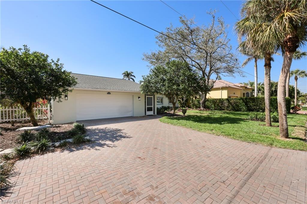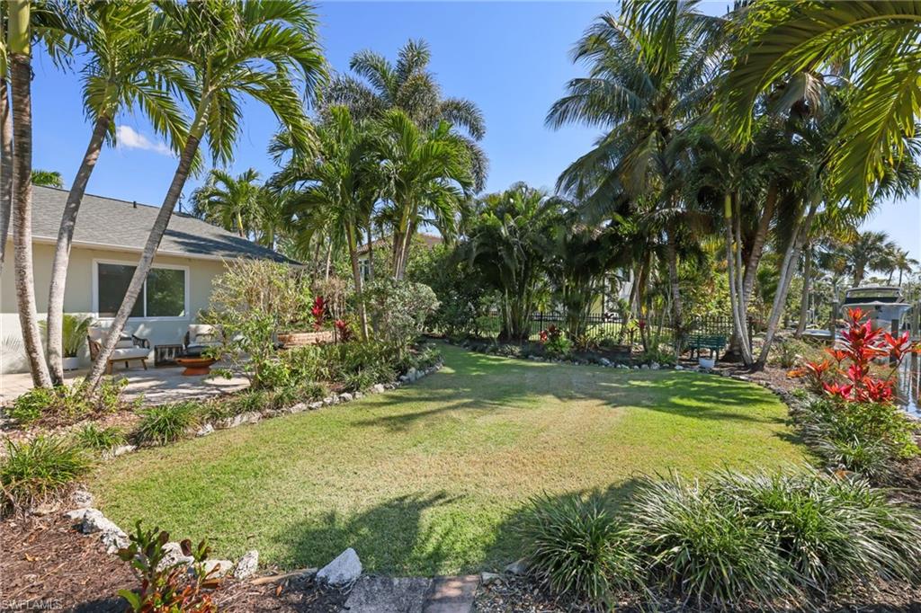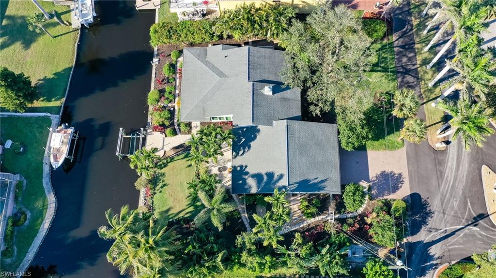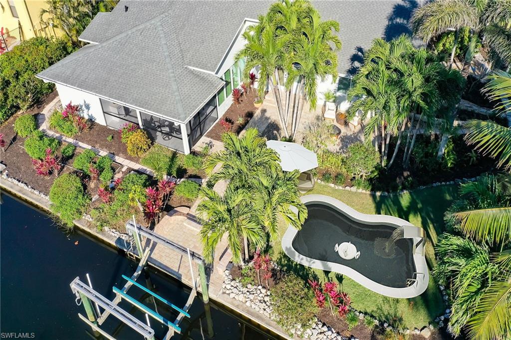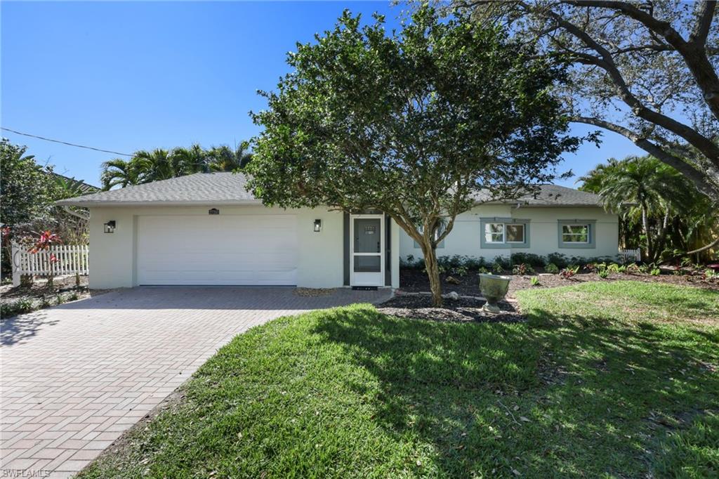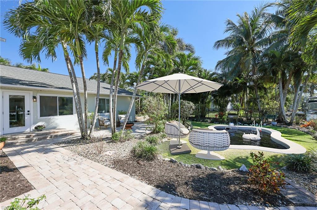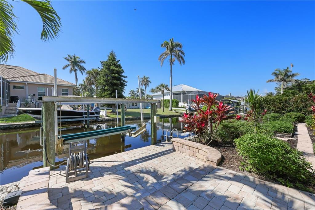 Discover the ultimate waterfront lifestyle in this beautifully renovated 4-bedroom + den, 2-bathroom home, perfectly situated on an oversized 0.4-acre lot with no HOA fees or rental restrictions—ideal for a primary residence or lucrative vacation rental. Vaulted wood-beam ceilings add warmth and character, while elegant wood-look porcelain tile flooring flows throughout. The open-concept layout features a spacious living room, family room, and enclosed lanai, perfect for entertaining. A fireplace with accent lighting enhances the cozy ambiance. The gourmet chef’s kitchen boasts two-tone cabinetry, granite countertops, a sleek tile backsplash, and high-end stainless steel appliances. Every detail is designed for both style and functionality. Additional upgrades include a new HVAC system with UV light, updated ductwork & electrical, hurricane-impact windows, sliders & doors, custom Hunter Douglas blinds, a brand-new water heater, and Roof replaced 2016. Step outside and enjoy a botanical paradise, professionally landscaped with a butterfly garden and tropical greenery. A paved walkway leads to your private boat dock with a 10,000-lb boat lift & remote control operation, making boating effortless. Located on a quiet, palm-lined street, yet just minutes from Bonita Springs' pristine beaches, top-rated schools, hospitals, shopping, and dining. This move-in-ready home offers luxury, location & lifestyle. Schedule your private tour today!