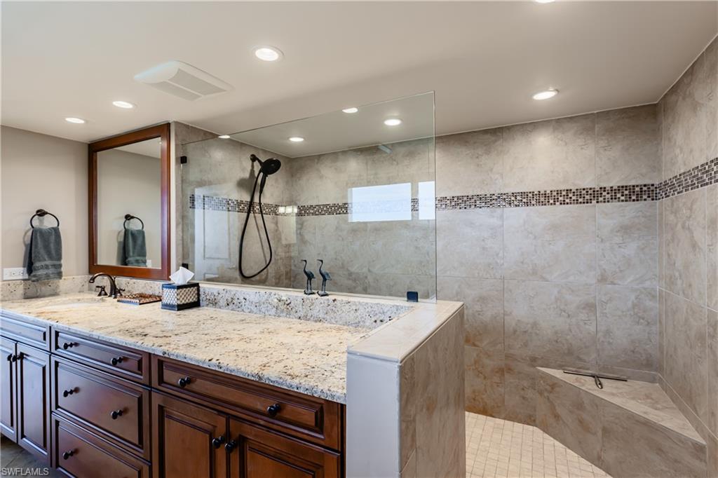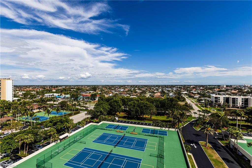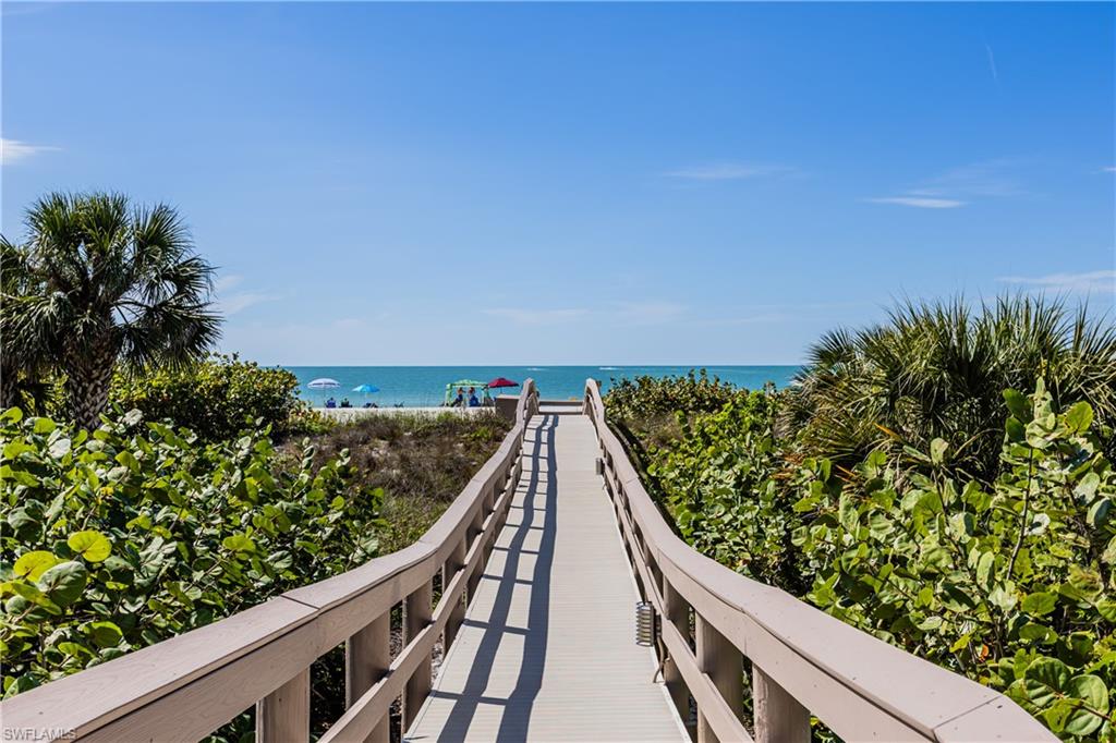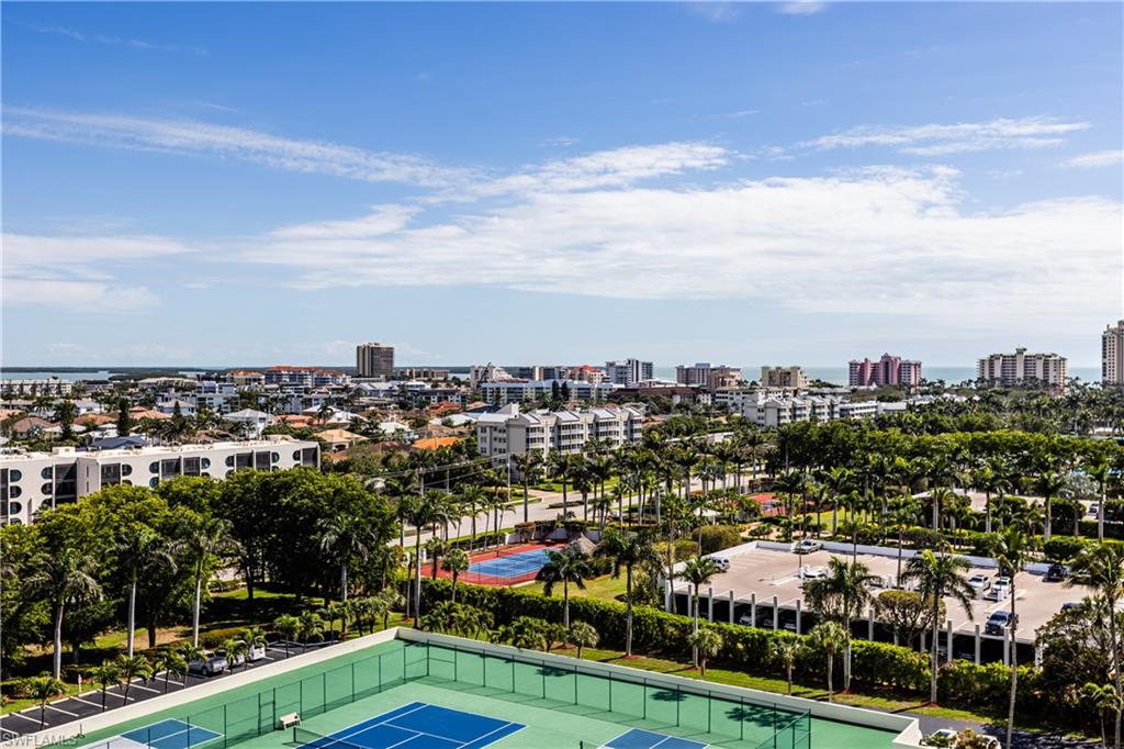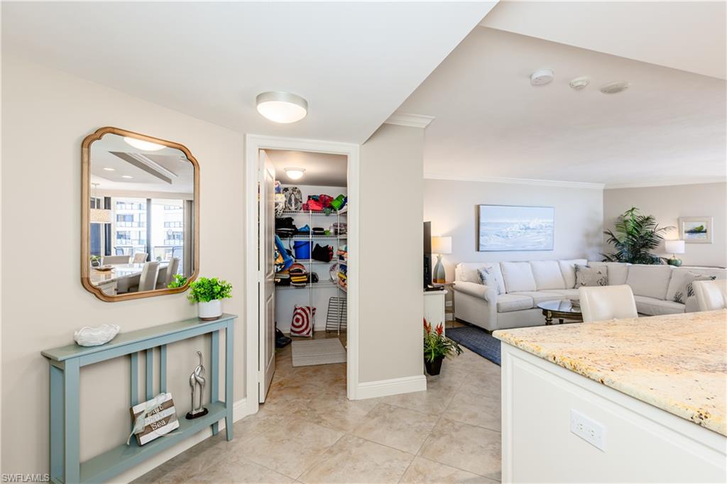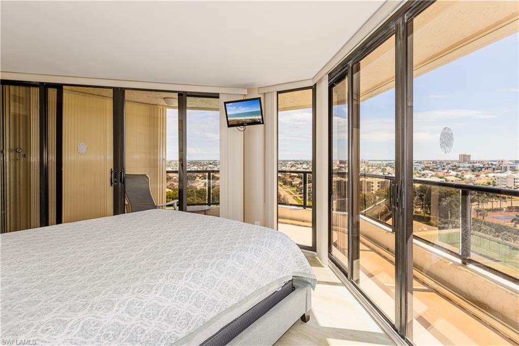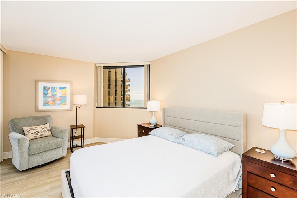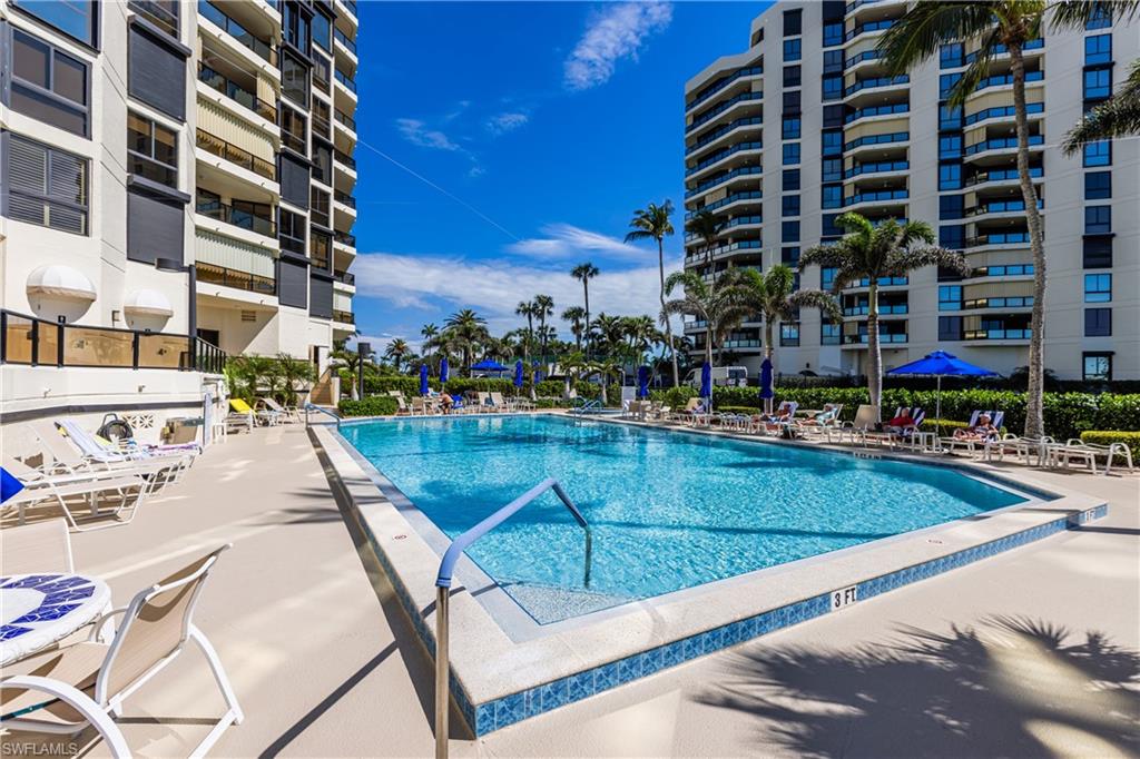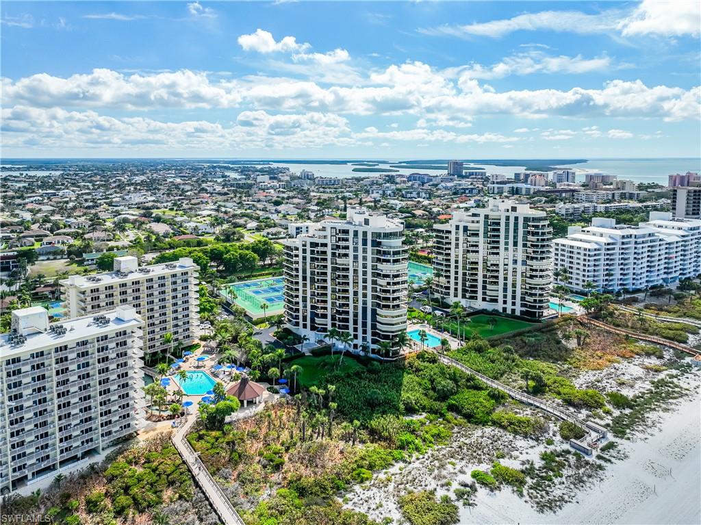 Enjoy both Evening/Dusk’s GLORIOUS SUNSETS from the South Side Lanai & Wake Up to Morning/Dawn’s MAGICAL SUNRISES from The Wrap-Around East Rear Lanai with Clear Plexi Glass Enclosures! Rarely do you find both Exposures in such A GEM of a condo In a Beautiful High Rise at the Desirable South End of Marco’s world class beach! The moment you open the Door to this privately located CORNER Spacious 2 Bedroom Condo, offering a Total of 1,568 SF of Living Space on the ideal 10th floor, you will be greeted with Beaming Natural Light Inviting you inside to delight in the WIDE-OPEN SPLIT FLOORPLAN. Low maintenance Tile & Laminate Flooring flows throughout this unit which features a walk-in Storage/Owners’ Closet in its foyer! The Stunning White, Granite, SS Eat-In Kitchen – boasting Under Cabinet Lighting, Self-Closing Cabinetry, a Desk Area with Custom Wine Rack above it plus A HUGE CENTER ISLAND with Seating/Extra Storage - is OPEN to A Sumptuous Living Area with White Sectional Sofa and Delightful Dining Space with Glass Top Table & New Fixture all of which have Lanai Access to be mesmerized by the Pool/10,000 Island/Beach/Gulf VIEWS. The Adjacent Laundry Area, which features a 2yo Stacked LG Washer/Dryer, leads to the Private Guest Wing offering High Vanity & Combo Shower/Tub Bathroom (that can be used as Powder Room), 2 Walk-In Closets, New Queen Size LIFT BED for storage below it & Sliders to Lanai plus fixed window to enjoy the VIEWS. Opposite the Guest Area Via A Pocket Door is the Private Master Suite boasting WALLS OF SLIDING GLASS DOORS & Access to the Rear East Lanai with PANORAMIC ISLAND VISTAS That twinkle at night & dazzle in the Morning Sunrise Glows. It presents a Spacious Bath w Double Window that Opens, Sprawling Wood/Granite Vanity w Custom Framed Mirror & Ample Storage Space, Adjacent Semi Glass-Enclosed FLOOR TO CEILING TILED ‘HUGE’ Shower with Lovely Glass Tiled Listello, Niche and Seat + Walk-In Closet. Also, there is a private water closet with Commode & Second Wood/Granite Vanity with Wood Framed Mirror! This truly is a Well-Designed Floorplan providing A Substantial Living/Entertainment Space as well as Bedroom Privacy with a Sprawling Lanai Area to MAXIMIZE THE VIEWS from every room. You “MUST SEE” this Jewel to Appreciate all its Unique Facets & Features and the Fine Lifestyle this Beach Tower’s Amenities and Convenient LOCATION - merely a short stroll to Casual and Fine Dining, Hotels, Entertainment, Movie Theatre, Post Office/Book Store, Retail, Mini Golf and MORE - Render! This 'BEACH RESIDENCE at the preferred South End of The Beach truly is "PARADISE FOUND"!