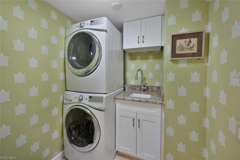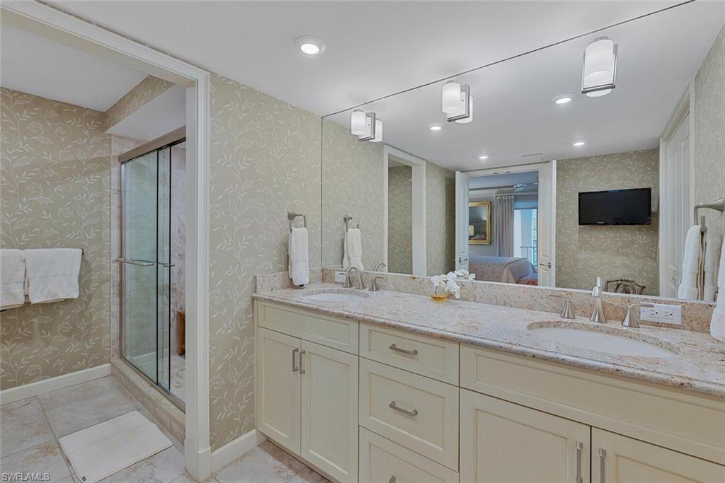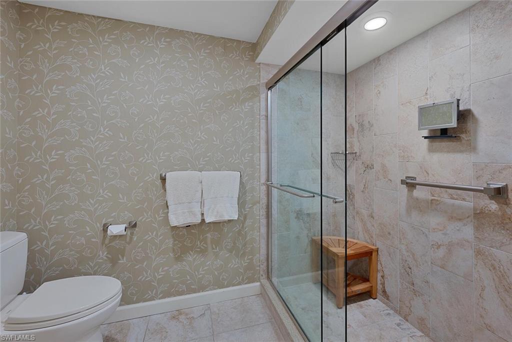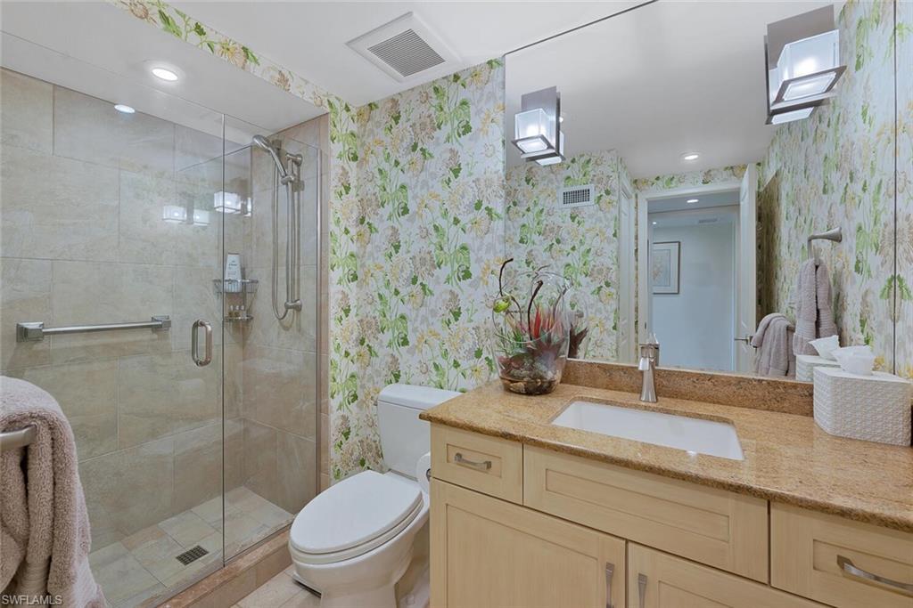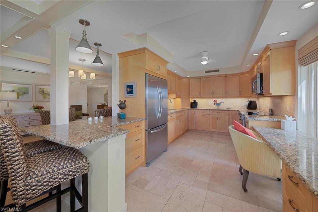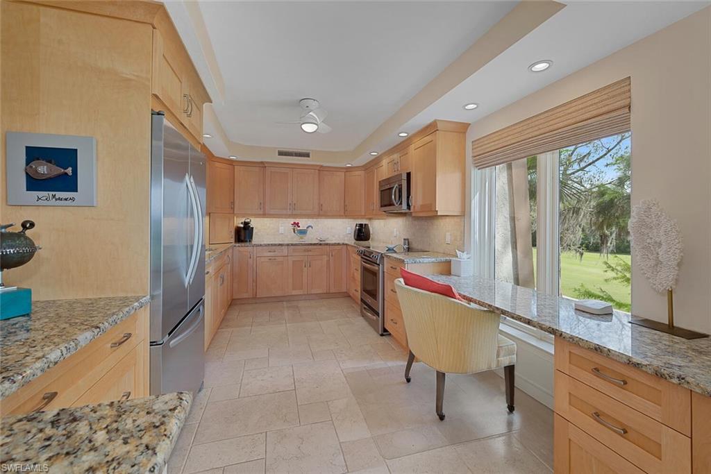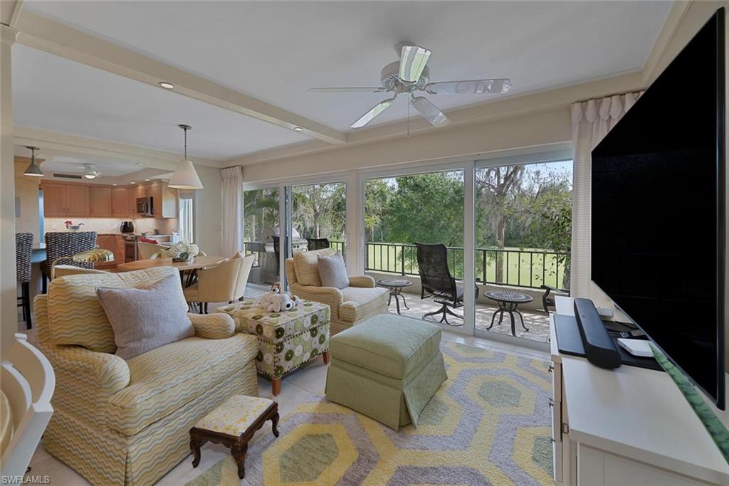 Experience the expansive floor-to-ceiling golf course to lake views of the pristine 2nd hole from your top-floor 2-bedroom stunner with a common elevator. Sold Furnished! Immediate full golf membership at Wilderness with the purchase of this property. This beautifully renovated unit features a light-filled open-concept floor plan showcasing a gourmet kitchen fully upgraded with granite countertops and backsplash, neutral colors, custom built-ins, ivory raised panel cabinetry, impact sliders, and light luxury tile flooring. This residence also features an Expansive Master bathroom with built-in cabinetry, a splendid shower with seamless shower doors, Impressive light fixtures, and a full-size laundry room. Enjoy covered parking, an included golf cart, and a golf cart garage with room for extra storage, too. This gated paradise is situated within a 200-acre forest, boasting stunning landscaping and mature trees lining the roadways. Residents enjoy unlimited access to an 18-hole Arthur Hills course, five Pools, four tennis courts, bocce, croquet, and a dog park. Brand new State-of-the-Art Clubhouse. Just minutes away from the vibrant shopping, pristine beaches, and dining destinations of 5th Avenue and Old Naples. This exceptional condominium offers a lifestyle of luxury and leisure. Purchase of a Wilderness Country Club membership is required and readily available to elevate your living experience.