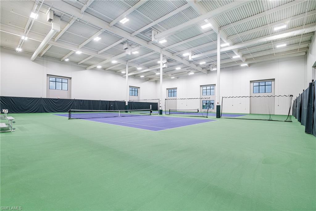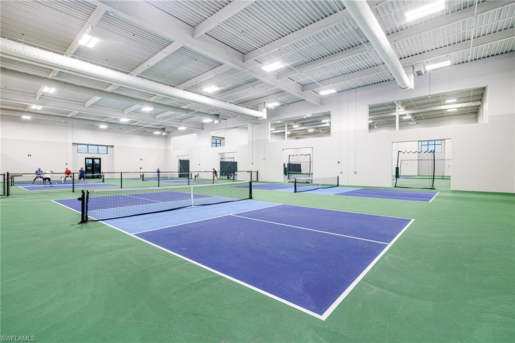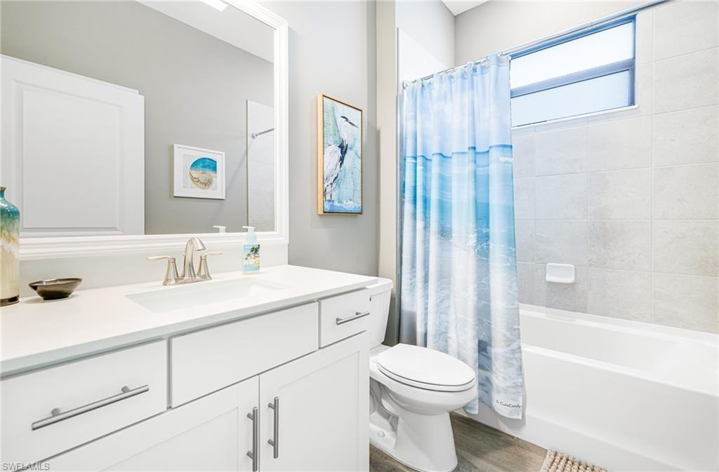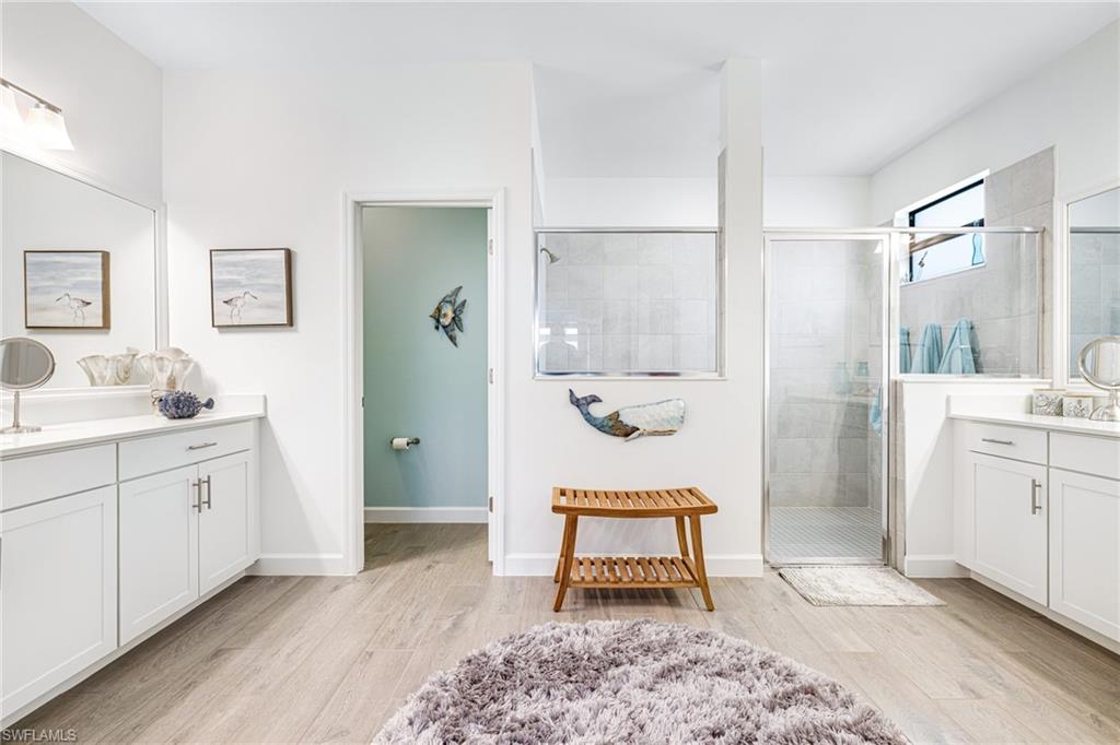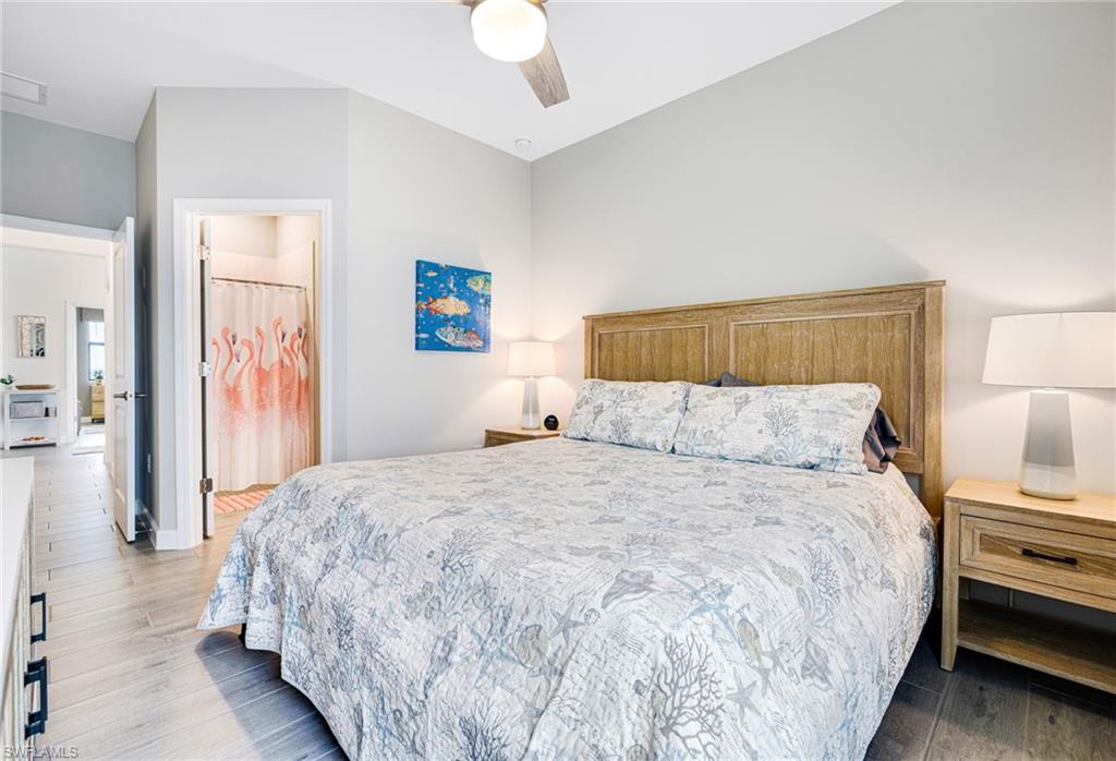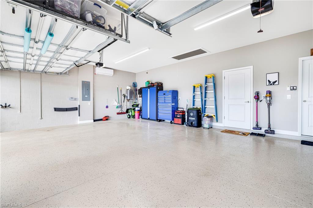 Discover a haven of luxury and tranquility in this exquisite three-bedroom + den, three-bathroom home. Meticulously landscaped grounds, showcasing lush new grass and vibrant landscaping, create a captivating first impression as you arrive via the long paver driveway to this beautiful oasis, instantly revealing the tranquility and luxury within. Upon entering, a warm ambiance welcomes you into the bright entryway with plank tile flooring throughout. Double doors reveal a versatile flex/den, while the entryway seamlessly transitions into the expansive family room and chef’s kitchen. The kitchen boasts new, upgraded appliances, 42-inch cabinets with under-cabinet lighting, and quartz countertops with a tile backsplash. An oversized island provides ample workspace, and an adjacent eat-in dining area is perfect for entertaining. Glass sliding doors open to a screened patio, fostering a harmonious blend of indoor and outdoor spaces. The owner's suite is a true retreat, featuring two spacious custom closets and a luxurious spa-like bathroom with an oversized shower and separate vanities. Sliding glass doors provide direct access to the pool area. Two spacious guest bedrooms, each with custom closets, provide comfortable accommodations; one features a private bath, while the other shares a full bath. Step outside through the sliding glass doors onto an oversized, screened in, covered lanai and patio, where you can slip into the soothing waters of the heated saltwater pool, soak in the hot tub, or relax on the large sun shelf as a breathtaking sunset shimmers across the water, while Florida wildlife grace the endless preserved landscape. Every detail of this well-cared-for home has been thoughtfully considered. Additional features enhance this exceptional property: a three-car garage with AC and dehumidification, added storage with wall and ceiling-mounted racks, custom lighting throughout, impact-resistant windows and generator for extra peace of mind. As evening falls, landscape lighting transforms the property into a magical oasis. Verdana Village features a unique Amenity Center including resort-style pool and spa, restaurant, café, fitness center, indoor/outdoor pickleball courts, tennis courts, indoor basketball court and much more. Conveniently located to I-75 and RSW Airport, FGCU, Restaurants, Shopping, a two-story grocery store and a short drive to some of Florida’s most beautiful beaches.