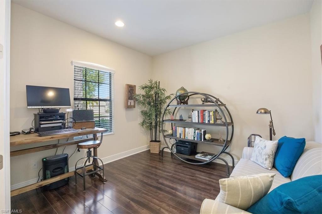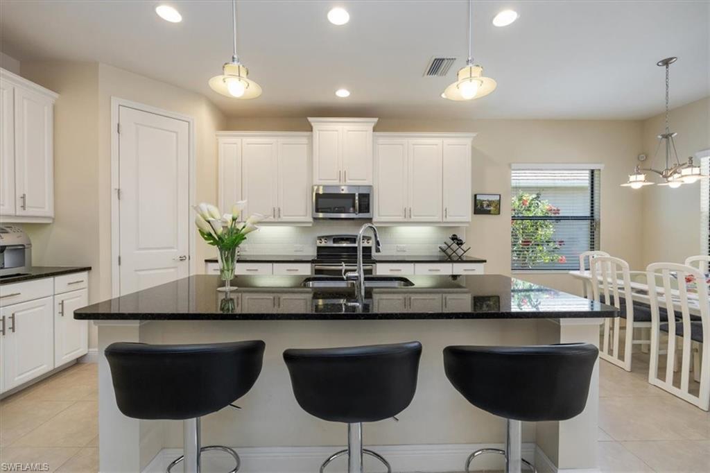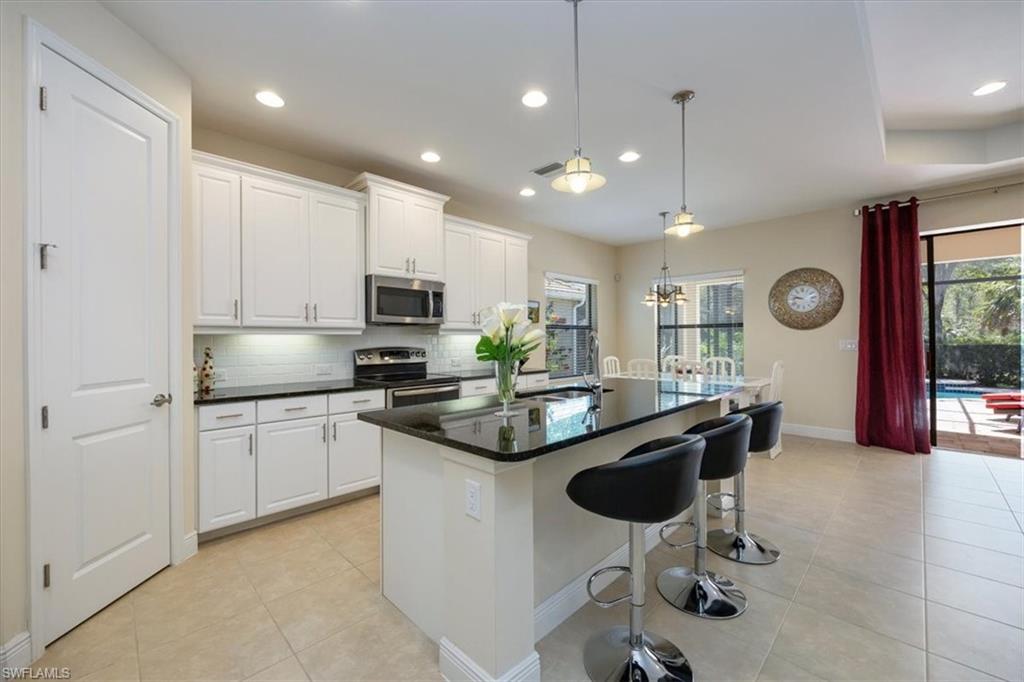 Welcome to your dream home! This beautifully maintained 3-bedroom + den, 2-bathroom residence offers the perfect blend of comfort and elegance. The open-concept floor plan features tile flooring throughout the living areas and laminate wood flooring in the bedrooms & den for easy maintenance and style. The heart of the home is the gorgeous kitchen, equipped with stainless steel appliances, white shaker-style cabinets, granite countertops, and a spacious center island with additional storage—perfect for meal prep and entertaining. Step outside to your private oasis—a large pavered lanai with a sparkling pool and a covered sitting area overlooking the peaceful, private preserve. It's the ideal spot to unwind and enjoy Florida’s beautiful weather year-round. Additional highlights include a newer AC, a 2-car garage, pavered driveway, a versatile den perfect for a home office or extra guest room, and a thoughtful layout designed for modern living. Located in the desirable Canopy community, just minutes from top rated schools, restaurants, shopping, entertainment and the sparkling Gulf beaches. Don’t miss out on this opportunity to enjoy the Florida lifestyle.