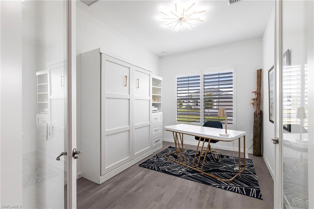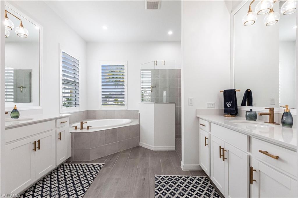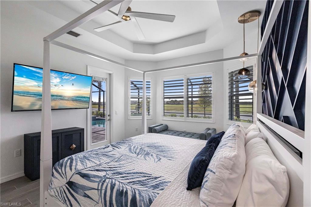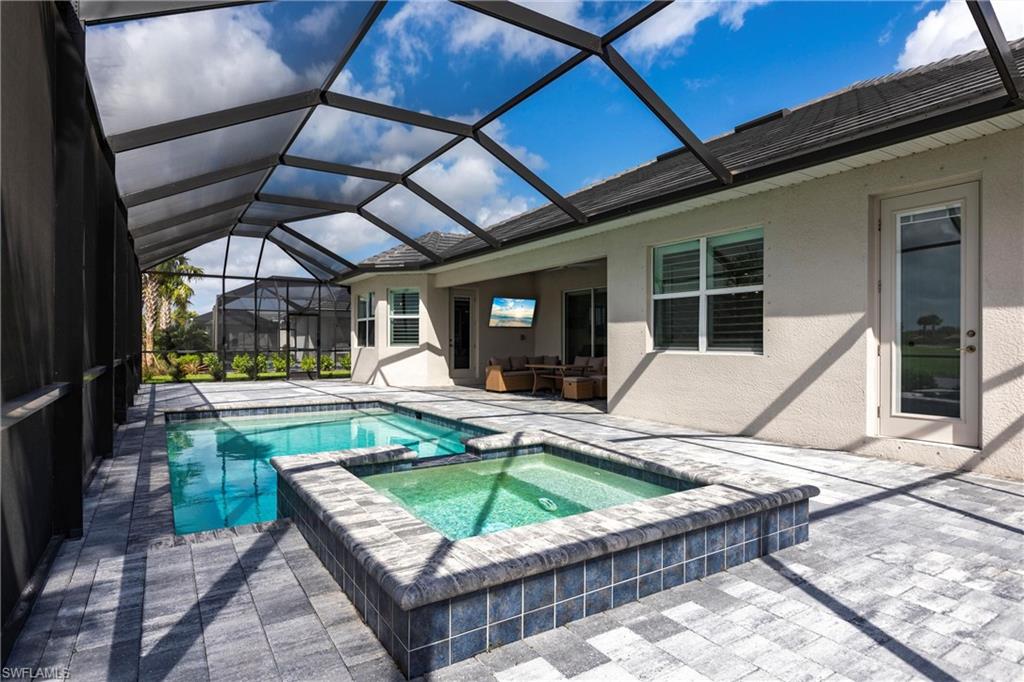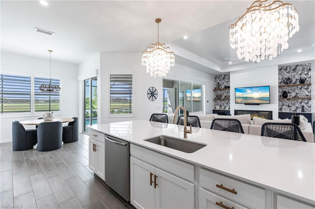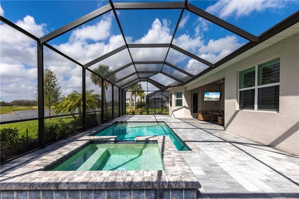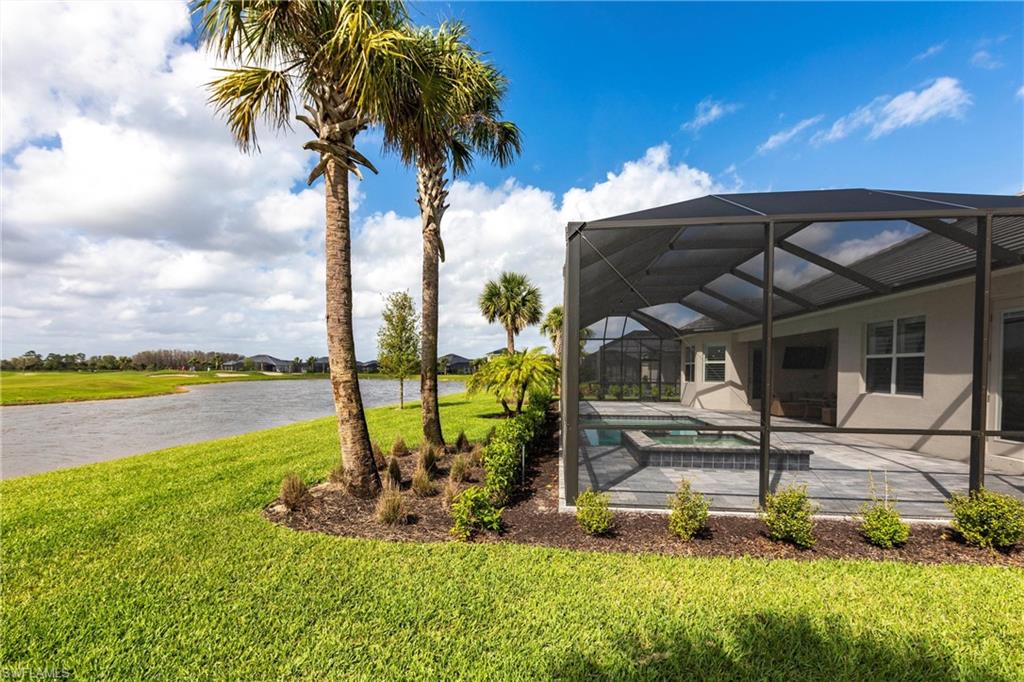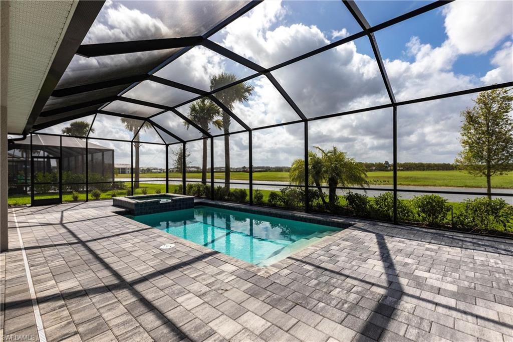 UPGRADES, UPGRADES, UPGRADES…You DON’T get a home like this from the builder! One of the BEST southwest, breathtaking backyards, overlooking the most picturesque lake & golf course views in The National Golf & Country Club. This 4 bedroom, 2 1/2 bath, 3 car garage home is LOADED w/ UPGRADES & beautiful WOODWORK! From the extra BUILT-INS cabinetry -to- the WINE/COFFEE BAR area -to- SHIPLAP work on the fireplace & ceilings -to- the PLANTATION SHUTTERS & wood-look PLANK TILE throughout this entire home! Wait till you see the primary oversized bedroom w/ a beautiful accent wall, hanging pendants lights, door to the lanai w/ built-in blinds & to top it off, the shiplap ceiling & beautiful ceiling fan. Entertain in your HUGE screened in lanai w/ pool & spa plus extra bonus a pool bath. The National is a state-of-the-art clubhouse w/ luxury amenities for residents to enjoy like resort-style pool & spa, 24/7 manned gate for peace of mind, state-of-the-art fitness center, pickleball, tennis & bocce ball courts, pamper yourself at the full service spa, dine at The Hammock Bar & Grill the brand-new clubhouse restaurant. Enjoy all this & MORE w/ your SOCIAL membership that comes w/ this home. Life in Ave Maria offers so much more than just a home. Ave Maria residence love the charming downtown center filled w/ dining & many shops, college & schools, parks & water parks. New to the town is their very own Dunkin’ Donuts, Ace Hardware & much more to come! This is an active community w/ year-round events, social calendar like weekly farmers market & more, creating a sense of connection & community that’s hard to find elsewhere. Book your showing today…this home is a SHOWSTOPPER!!!