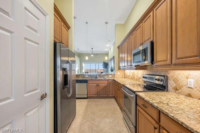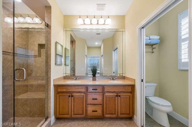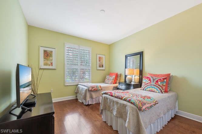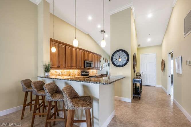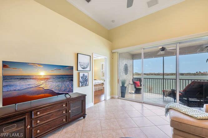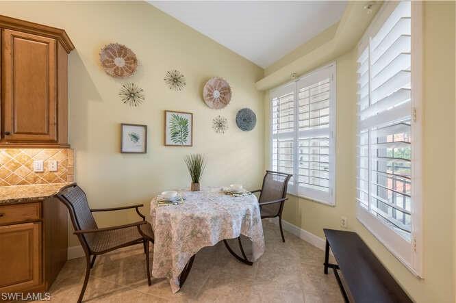 Welcome to effortless elegance in Vasari—an exceptional bundled golf community where resort-style living meets everyday convenience. This turnkey, waterfront condo is ideally located just steps from the Matera community pool, and as a 2nd-floor corner unit, it enjoys abundant natural light and highly desirable Southern exposure for year-round sunshine. Step inside to a freshly updated interior, featuring Sherwin-Williams linen paint, newly painted white trim and doors, sleek LED lighting, and tasteful finishes throughout. The kitchen is a standout, equipped with 42-inch cabinets, granite countertops, a stone backsplash, under-cabinet lighting, and stainless steel appliances—perfect for both everyday living and entertaining. The open-concept layout offers tile flooring in the main living areas and warm wood flooring in the bedrooms and den/flex space. The primary suite is enhanced with California Closets, plantation shutters, a frameless shower door, and serene lake views from your private screened lanai. Additional details like crown molding, pocket doors on the den, and ample storage add even more appeal. Recent upgrades include a new washer and dryer (2022), water heater (2019), and bonus storage. Even better—the Renaissance Project has been paid in full. Residents of Vasari enjoy maintenance-free living, access to a championship golf course, practice facilities, fitness center, indoor and outdoor dining, a lively social scene, and a warm, welcoming community. Just minutes from Naples and Bonita's white sand beaches, SW Florida International Airport, and top-tier shopping and dining, this home delivers the ultimate Florida lifestyle. ________________________________________