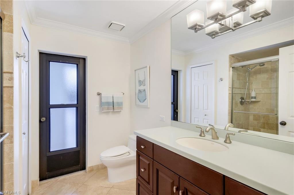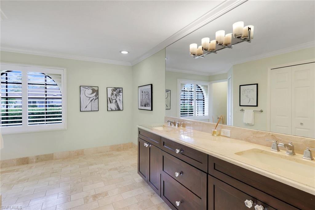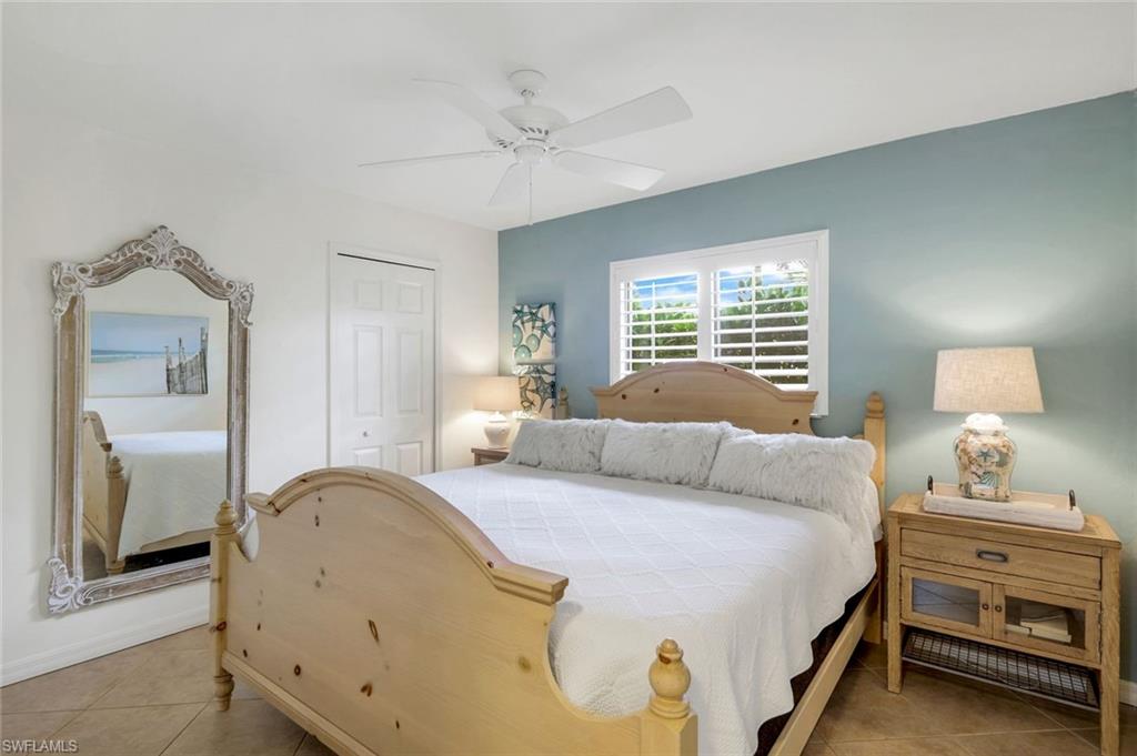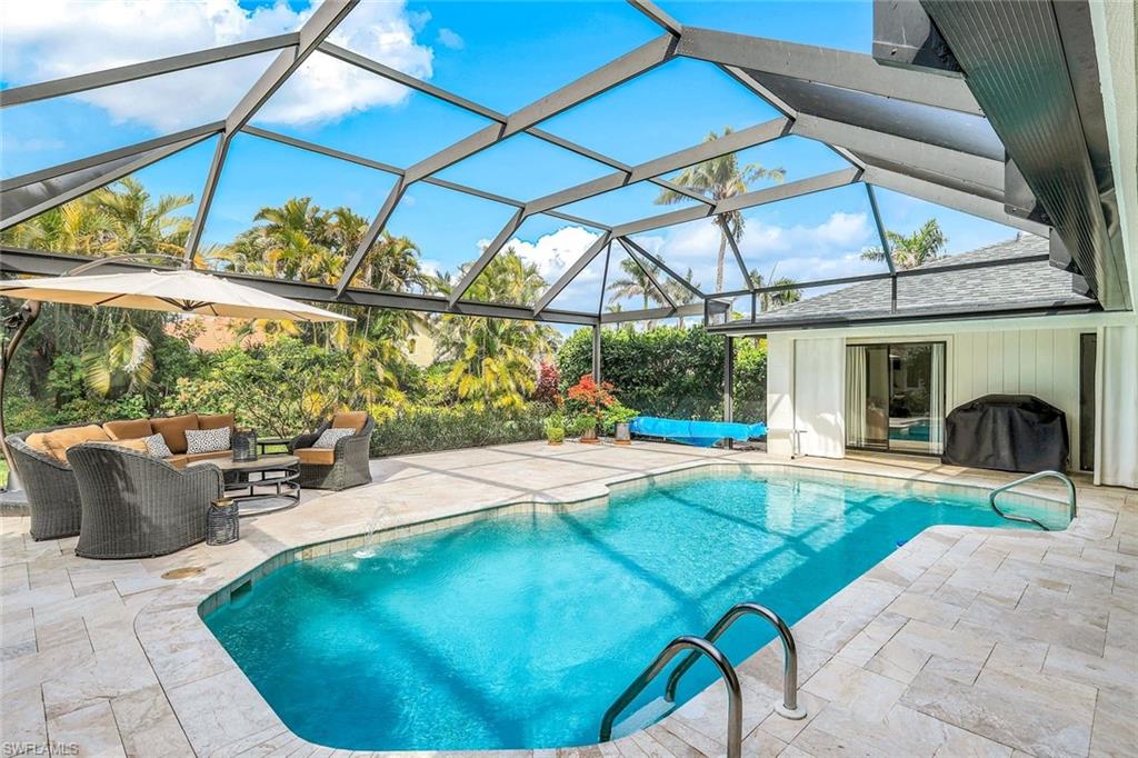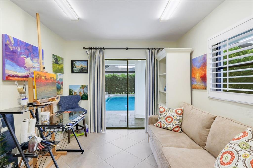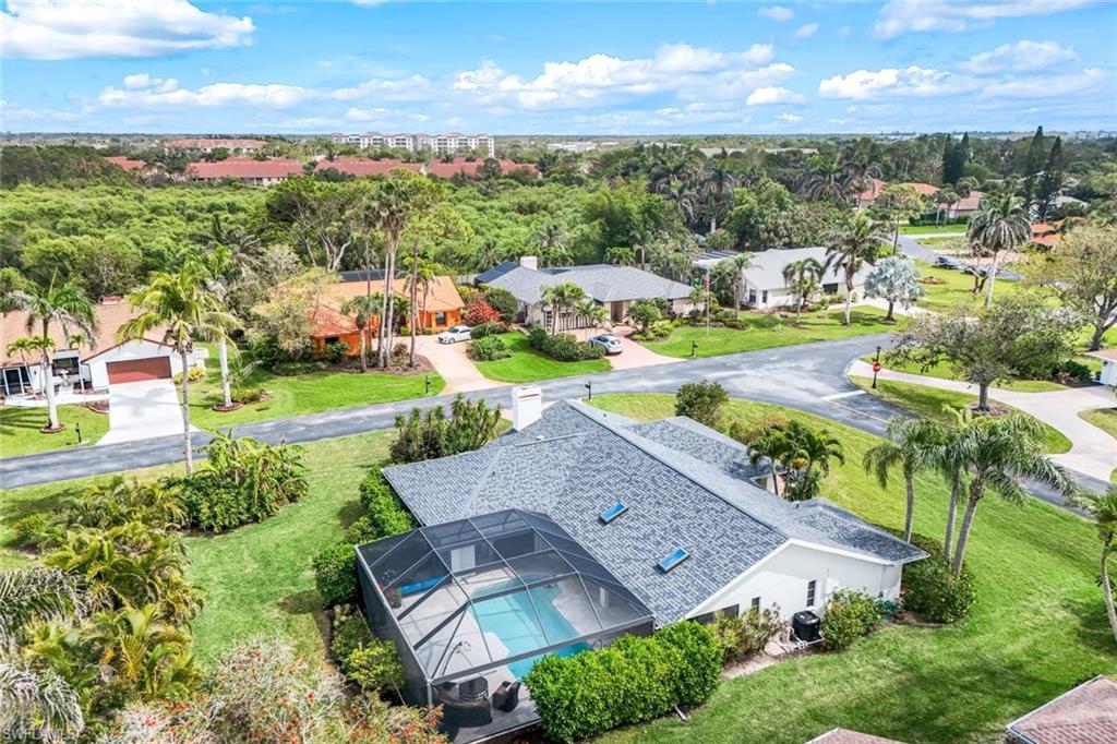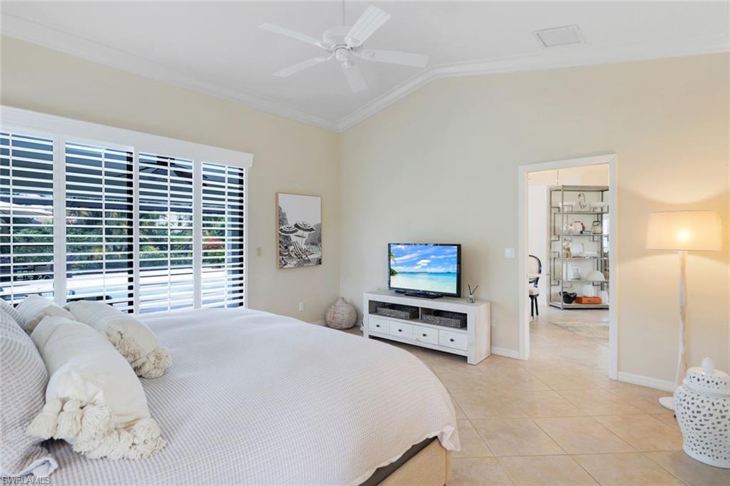 This home lives large and has the perfect blend of privacy and glimpses of the lake. Neutral tile flows from room to room and makes cleaning a breeze. The kitchen has a large pass through window for outdoor entertaining. There is plenty of space under cover as well as a large area for basking in the sun on this travertine pool deck. The picture screens create a bug free outdoor experience. The open floor plan allows the family to enjoy conversation with the cook and have a fire burning in the fireplace on the chillier evenings adding ambiance. The kitchen has an upgraded double granite counter and stainless steel appliances. Off the kitchen is the oversized utility room with a butlers pantry for all the entertaining extras you might need. The owner's suite has a large walk in closet and bath with dual sinks and lots of cabinets. The split bedroom plan allows your guests complete privacy with a pocket door creating a 2 bedroom and bath suite. The guest bath doubles as the pool bath with direct access to the lanai. Each bedroom has walk-in closets. The major components have been updated: Roof 3 years, water heater 2 years & the AC 7 years. The paver drive and walkway and oversized garage top this off beautifully. Vanderbilt is a quiet neighborhood west of 41 in biking distance to the beautiful sandy beaches. Walk to Royal scoop in the evenings for ice cream. Low fees and great location make this an exceptional home to enjoy the coveted Florida lifestyle.