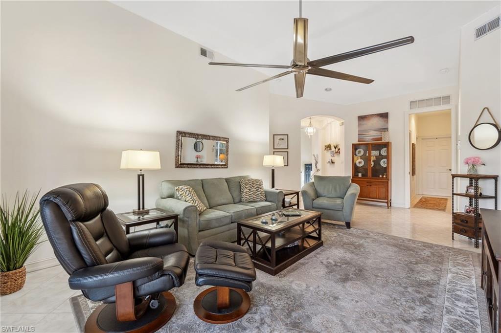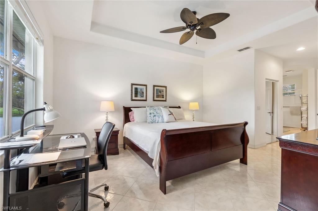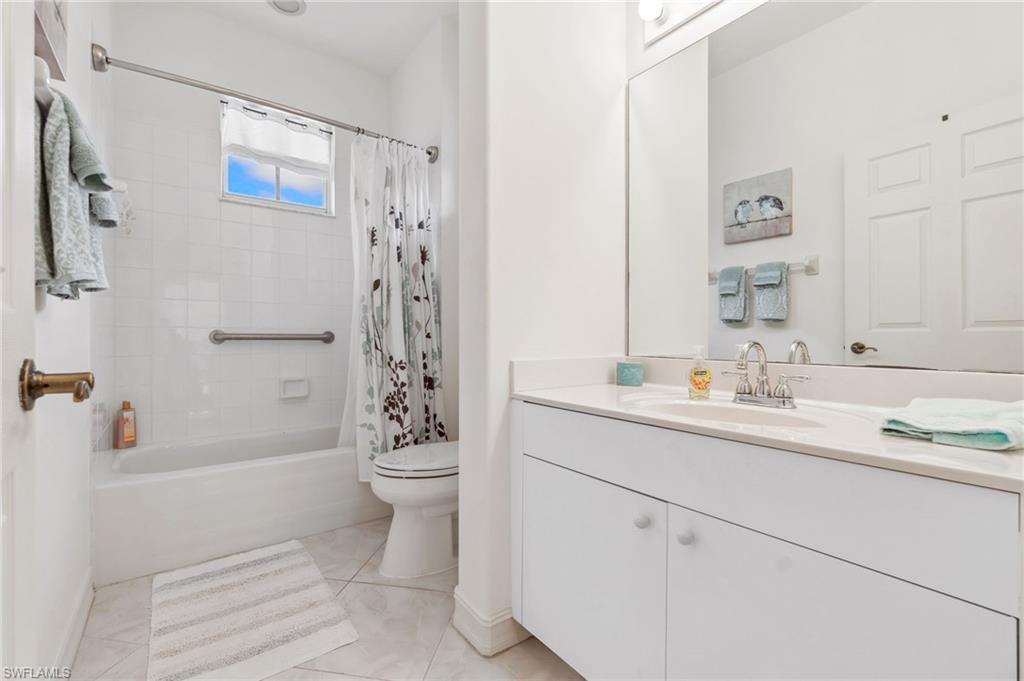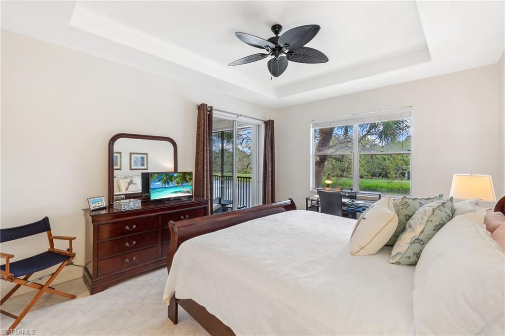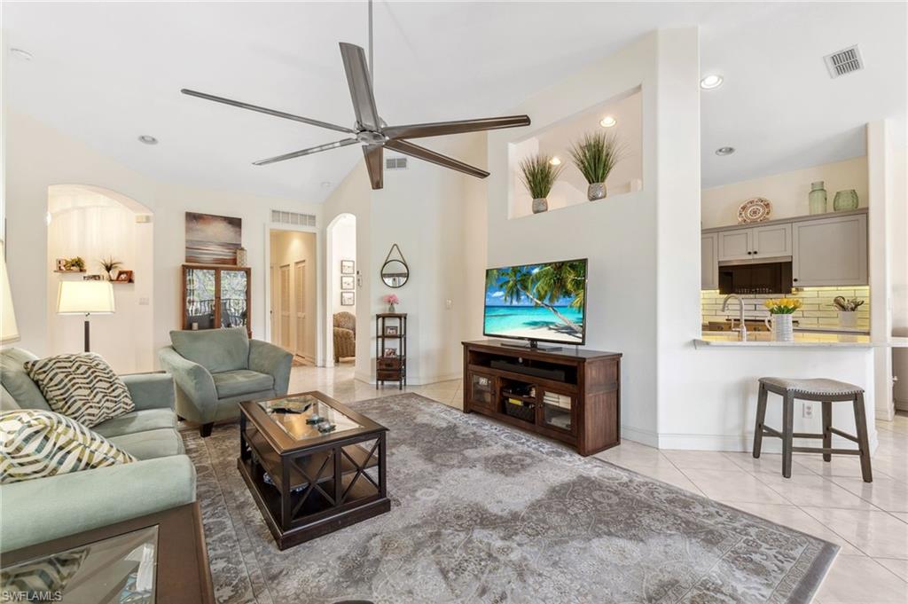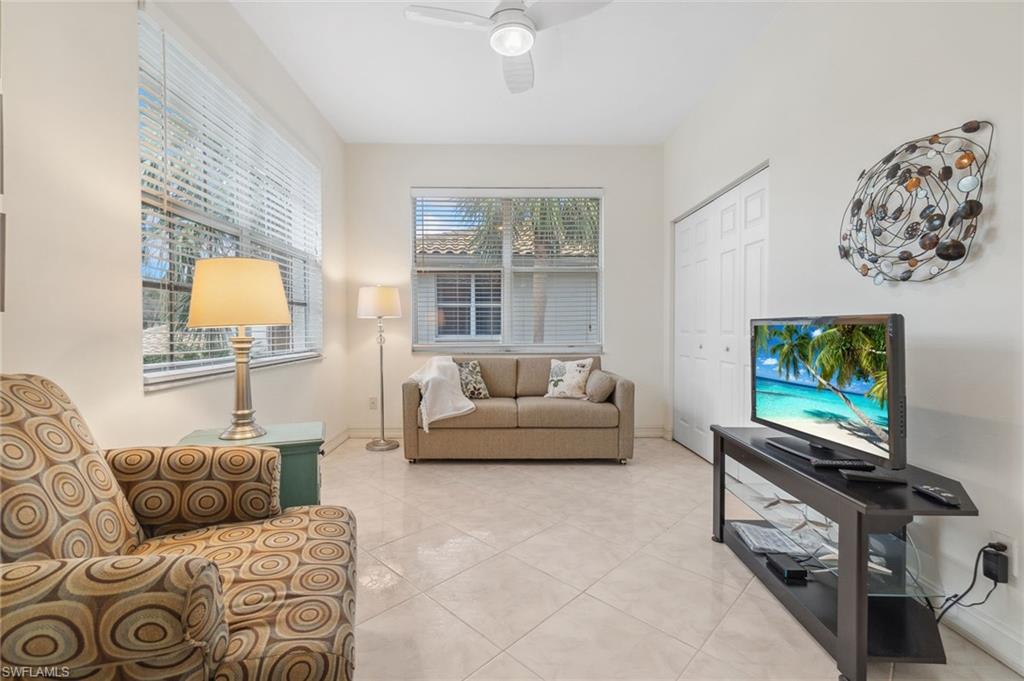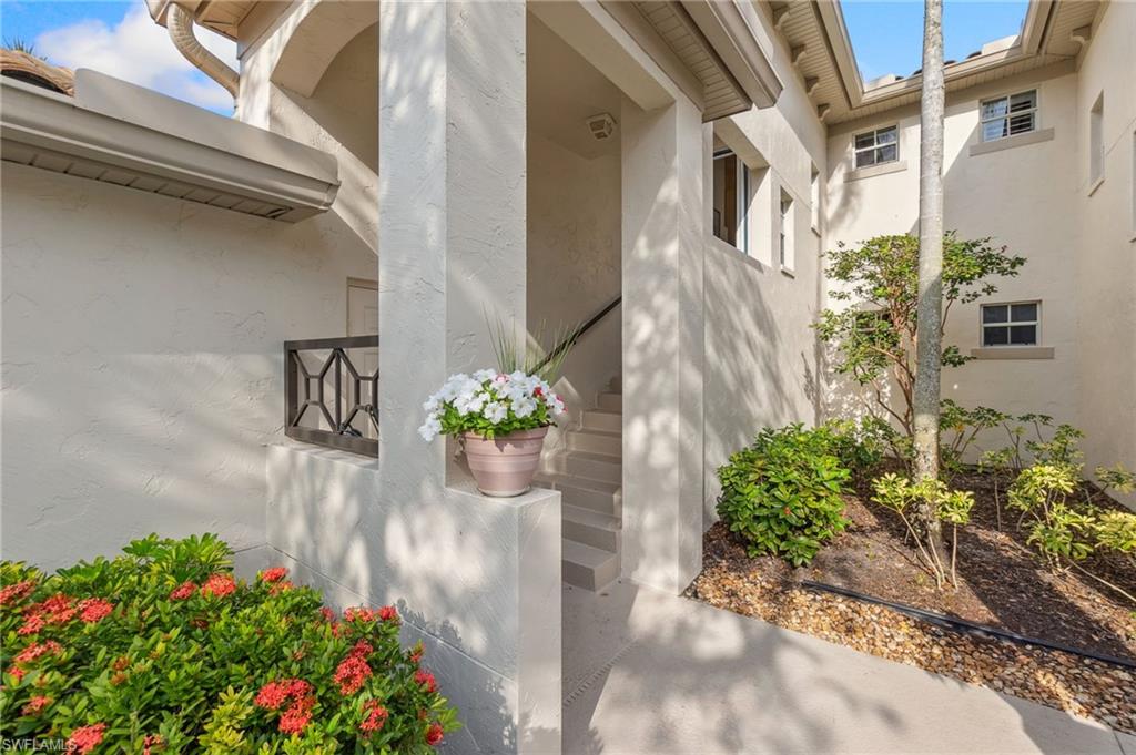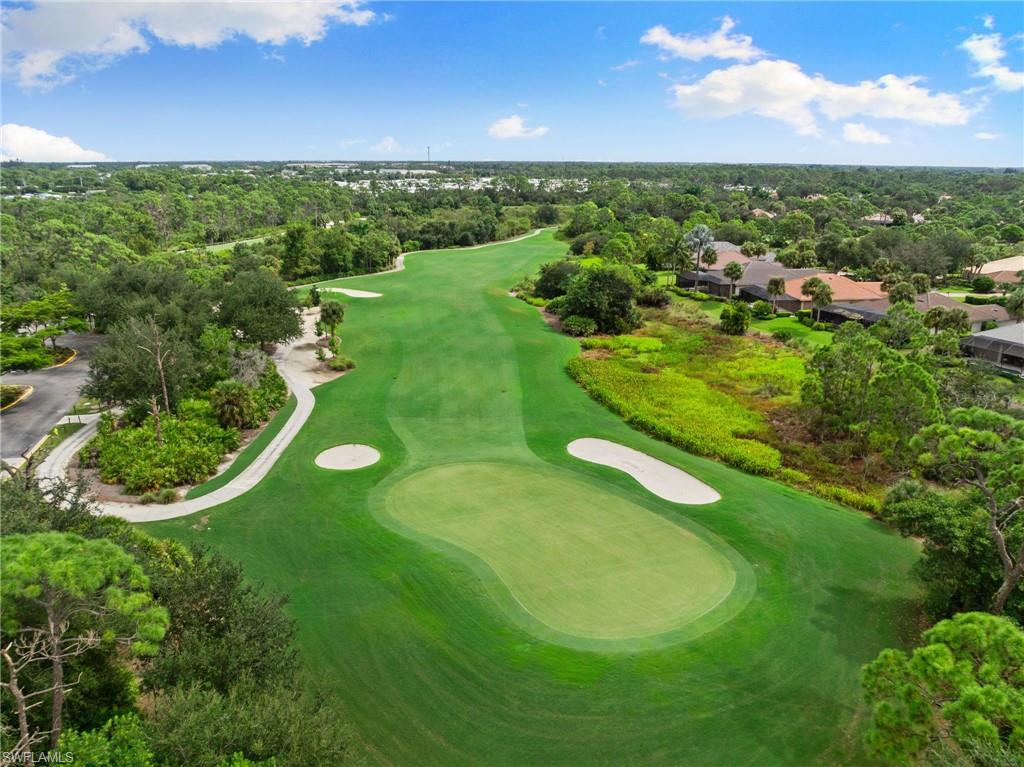 Enjoy the soothing breeze and terrific views from the lanai of this gorgeous 2nd floor end unit condo overlooking the water on hole number 1 of The Lake Course at Pelican Sound Golf and River Club. This outstanding open floor plan residence is being sold turnkey furnished, and offers 2 bedrooms plus den with closet, and 2 full baths. Luxury features include a new updated kitchen (2024) with extra cabinets and undercabinet lighting, all new stainless steel appliances, beautiful quartz countertops, subway tile backsplash & nice pantry area. The morning room off the kitchen offers plenty of space and terrific views of the lake from 3 windows. The master suite features a large walk-in closet and spacious bath with dual sinks & large walk-in shower with natural light that shines through the overhead window. The AC is new (2023), and the attached 1 car garage is perfect for storing your personal golf cart. Pelican Sound is located West US41 and nestled up to the Estero River. The community really has it all…27 holes of Championship Bundled Golf, resort style pool, Estero River access with boat launch and boat storage, a boat shuttle to a private beach, racquets center with 8 tennis courts, 14 pickleball courts, multiple restaurants and bars, state-of-the art fitness center, 5 bocce courts, and a very active social calendar.