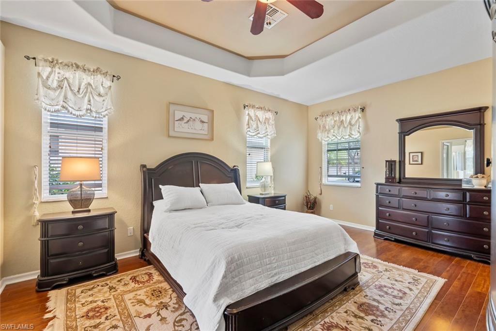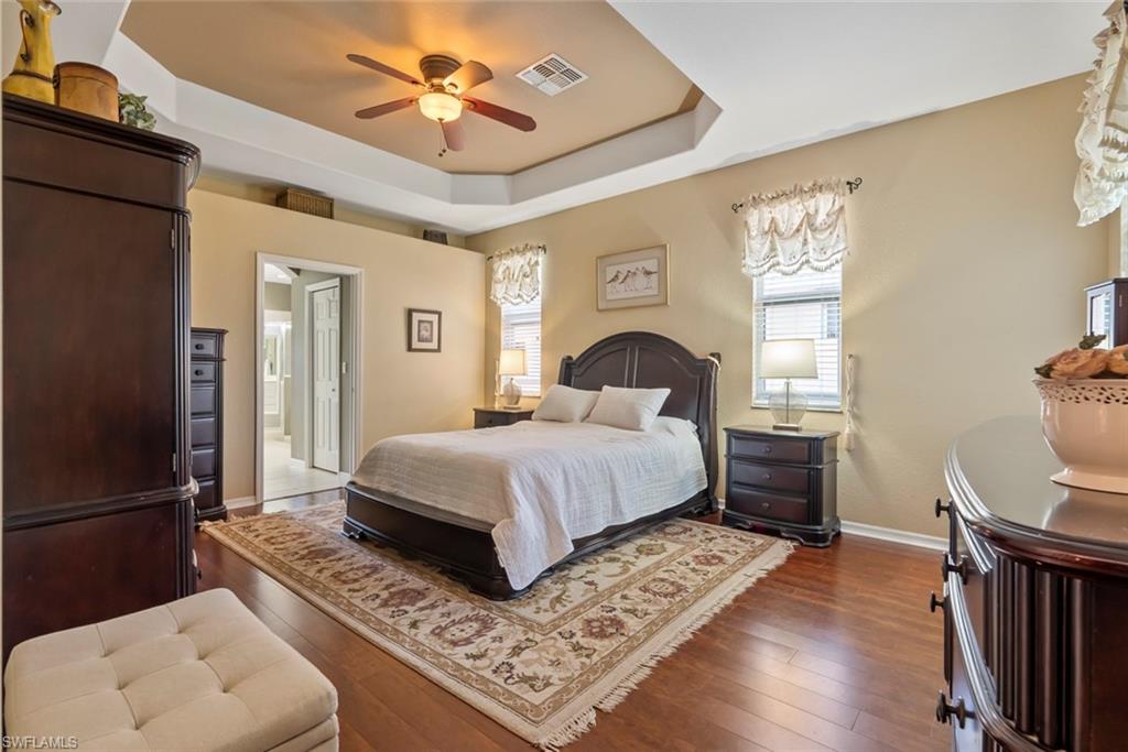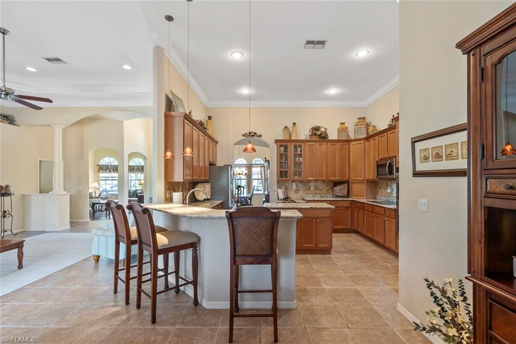 IMPECCABLY MAINTAINED HOME ON CUL D SAC IN DESIRABLE INDIGO LAKES - MOTIVATED SELLERS Welcome to this beautifully designed 4-bedroom, 3.5-bathroom home in Indigo Lakes offering almost 2,800 sq ft. of elegant living space. Nestled near the end of a quiet cul-de-sac with no through traffic, this home offers the perfect balance of privacy and convenience. Step inside to 10ft-14ft coffered & tray ceilings, tile and wood flooring throughout, leading you to a spacious living area filled with natural light and enhanced by lake views. The open floor plan seamlessly connects to the chef’s kitchen, which boasts stainless steel appliances, granite countertops, a double oven, pantry, kitchen island, and a cozy breakfast nook. Retreat to the luxurious primary suite, featuring tray ceilings, a spa-like en-suite with a soaking tub, separate shower, and dual vanities. The additional bedrooms provide ample space for family and guests. Outside, enjoy breathtaking lake views from the oversized, extended and covered lanai, perfect for morning coffee or evening gatherings. The private pool, surrounded by lush landscaping and lake views, creates a serene backyard oasis. An amazing opportunity to live in desirable Indigo Lakes! Easily accessible to all Naples has to offer - close to I-75, shopping, restaurants and more!