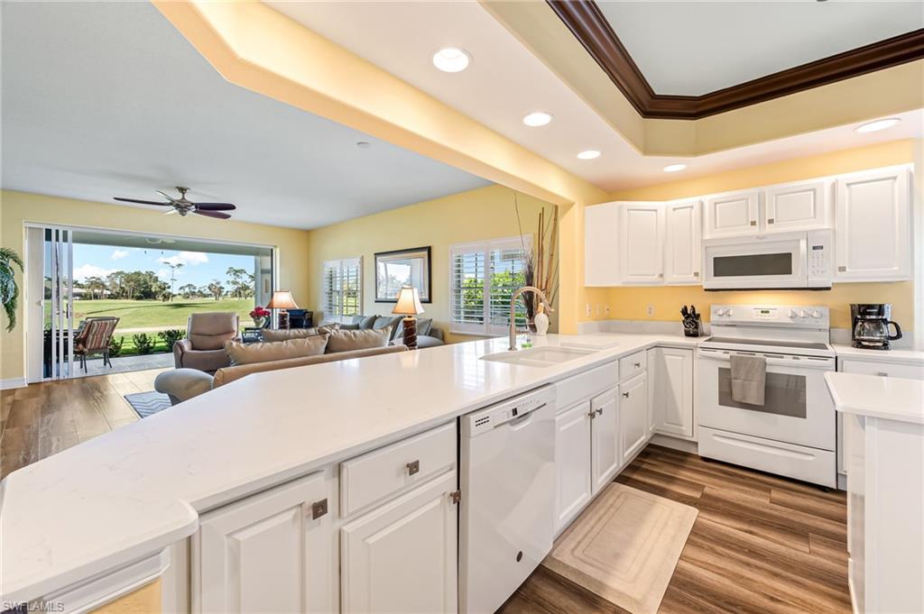 Indulge in nightly sunsets painting the golf course in vibrant hues from your turnkey retreat within Saratoga at Lely Resort. This ground-floor gem boasts everything from sleek kitchen appliances to stylish flooring and modern lighting, ensuring effortless luxury. Recent community enhancements, including fresh roofs and a chic exterior makeover, elevate curb appeal, while your private Saratoga pool and clubhouse offer exclusive relaxation. Lely Resort's allure extends with three championship golf courses and the option to join the award-winning Players Club & Spa, an eight-time Club of the Year winner. Membership at The Player's Club grants access to top-tier resort facilities including walk-in pools, a 22-foot waterfall, tiki huts, comprehensive dining with an indoor/outdoor bar, 6 bocce courts, 13 tennis courts with available pros, and a full-service spa and fitness center. This is where you'll meet the most contented residents in Naples! Even pets have their social spot at the Bark Park. Embrace the coveted Naples lifestyle, the Lely Life, where every evening is a masterpiece and every day feels like a vacation.