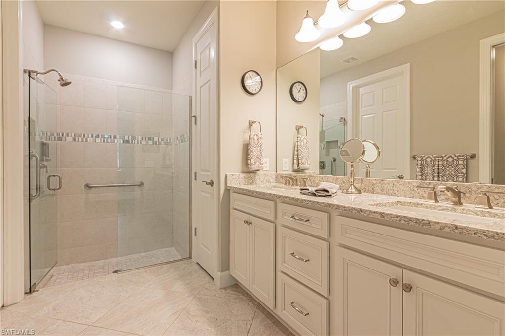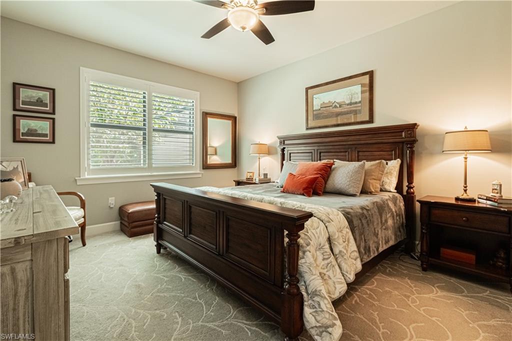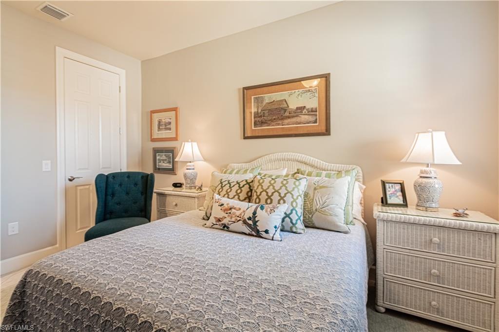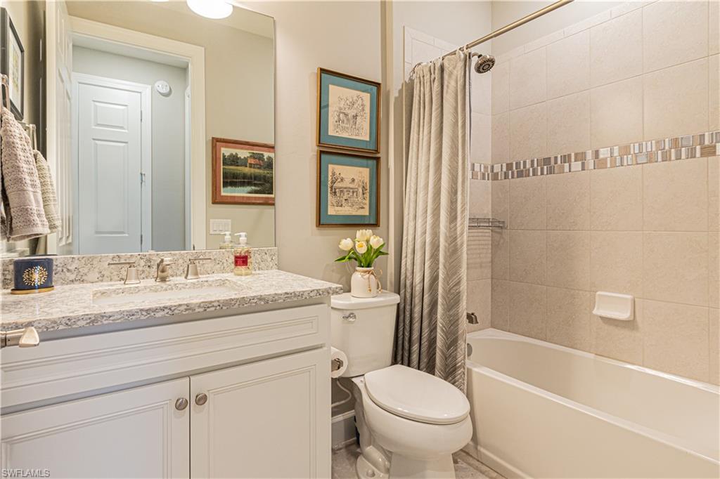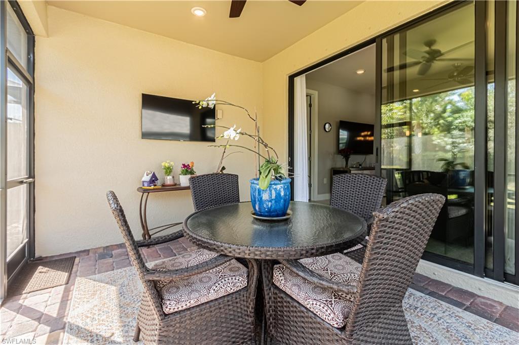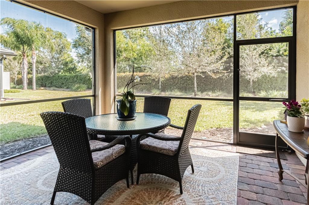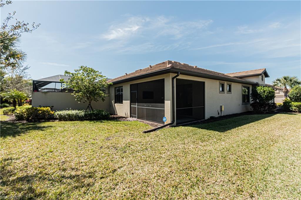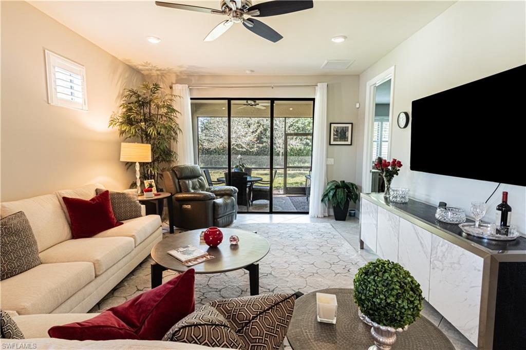 This beautiful Winding Cypress Serenity Villa home offers 1,554 sq. ft. of comfort with 2 bedroom plus den, 2 bathrooms, screened lanai, and a 2-car garage. It features multiple quality upgrades including stainless appliances with both gas and electric connectivity for the stove, 22" porcelain tile on the diagonal throughout, plantation shutters, Quartz countertops in kitchen and bathrooms, den with French doors, and much more. The full list of upgrades is in supplements. Located near downtown Naples and Marco Island, the community features a clubhouse with a resort style pool, spa, state of the art fitness room, restaurant, tennis, bocce and pickleball. Shopping and restaurants are nearby. The 800+ acre preserve with a boardwalk adds to the outdoor appeal. Ideal for those seeking a stylish home in a prime location.