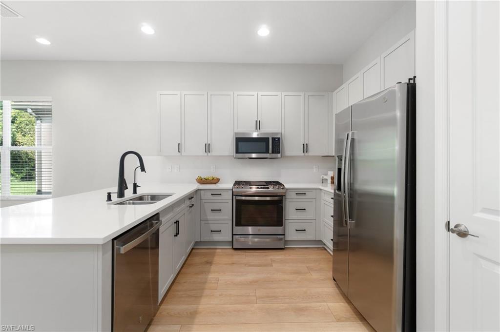 AMAZING DEAL ON THIS LIKE NEW HOME! By far the lowest-priced 3+ den home and best value in Valencia Trails. Welcome to Valencia Trails, a premier 55+ community in North Naples! This stunning and highly sought-after "Pelican" floor plan boasts over $50K in builder upgrades, offering both style and functionality. With 3 bedrooms plus a den, 3 full baths, and an extended 2-car garage, this home is designed for effortless living. With nearly 2,000 sqft of thoughtfully crafted space, this home is perfect for entertaining and everyday comfort. The kitchen has been enhanced with upgraded lower cabinets converted to drawers for maximum ease and storage, complementing the sleek quartz countertops and full quartz backsplash. Hurricane impact windows and doors throughout, a tankless water heater, and a Kinetico whole-house water system with R/O filtration at the sink and fridge provide peace of mind and convenience. A split floor plan ensures privacy for guests, while the large den/flex room offers versatility. Step outside to your screened and covered patio, where you can enjoy tranquil, private landscaped views—and there’s room for a future pool if desired! Exciting news for the community: A new entry/exit is coming soon along the Vanderbilt Beach Road extension, providing even more accessibility and convenience! Valencia Trails offers a world-class 43,000 sq. ft. clubhouse with an array of amenities designed to enhance your lifestyle. Start your day with a scenic walk along three miles of private trails winding through 160 acres of preserve. Stay active with tennis, pickleball, bocce, a resort-style pool with beach entry, a lap pool, and a resistance walking pool. The top-tier fitness center provides everything you need for a great workout, followed by a visit to the full-service spa with steam rooms, massage services, and a nail salon. For those who enjoy socializing, the community offers an on-site restaurant with a poolside bar, a lively sports lounge, and a spacious social hall that hosts events, performances, and entertainment. Art and hobby rooms, a cooking studio, and card rooms provide endless opportunities to explore new interests and connect with neighbors. Pet lovers will appreciate the two dedicated dog parks, while the beautifully manicured landscaping throughout the community adds to its serene and inviting atmosphere. Whether you’re looking for an active lifestyle or a peaceful retreat, this one-of-a-kind home in Valencia Trails is your perfect Southwest Florida oasis!