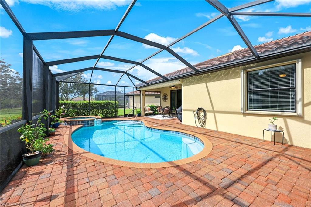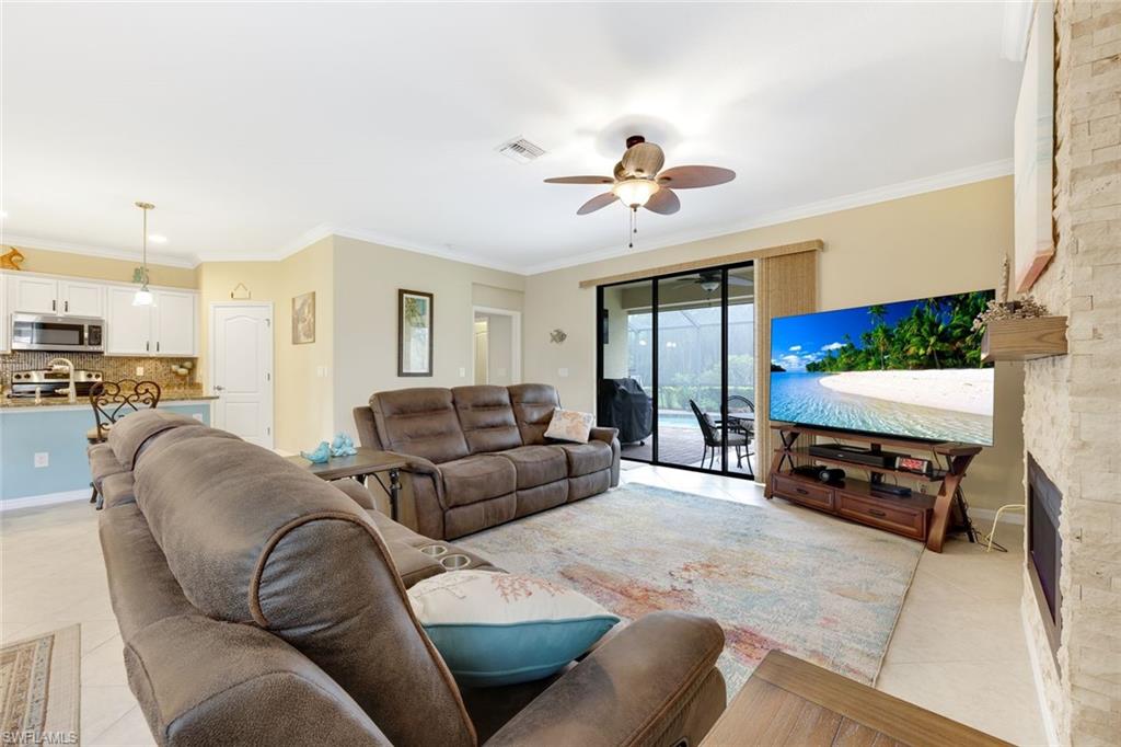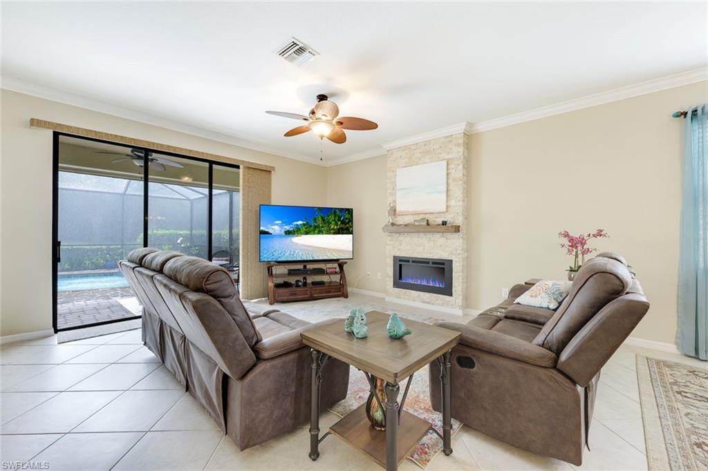LOWEST PRICED POOL HOME IN THE PRESERVE AT CORKSCREW! Opportunity knocks for a pristine, 4 bed Pool Home in one of Estero’s most desirable communities. This beautiful Pool home is Southern rear facing views offers 4 bedrooms, 3 bathrooms, and over 2000 sq ft of indoor living area space. This home is in Impeccable, move-in ready condition! And it gets even better… Seller has paid for a full ONE YEAR HOME WARRANTY transferable at closing. The inviting living room includes a cozy fireplace that is perfect for gatherings, the open kitchen comes with white kitchen cabinetry, granite countertops and updated stainless steel appliances making it a true entertainers delight. Also features a newer Washer and Dryer and crown molding throughout, every room feels bright and welcoming. The main bedroom features a stylish glass-enclosed shower and a separate soaking tub, along with spacious his and her walk-in closets with additional storage space added. The guest suite has a handy entry-level shower with sliding glass doors for easy access. The home has a Trane A/C unit and hot water heater that are only 2 years old, along with a whole-house surge protector for added safety. It also features an upgraded storm shutters package throughout and NOT in a flood zone. Plus an exterior outlet for connecting a portable generator during power outages. Don’t miss this amazing chance to own a piece of paradise in the Preserve at Corkscrew…. The affordable HOA fees include comprehensive lawn care and access to luxurious amenities, such as a cutting-edge gym, yoga/flex room, tot lot, tennis and pickleball courts, and a beautiful pool surrounded by cabanas, beautiful landscape and views of the lake. Location, location ….conveniently near Miromar Outlets, Hertz Arena, unlimited shopping and dining, RSW Airport, white sandy beaches and so much more. Call today!