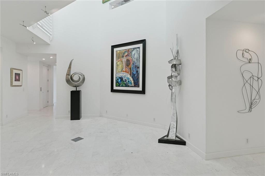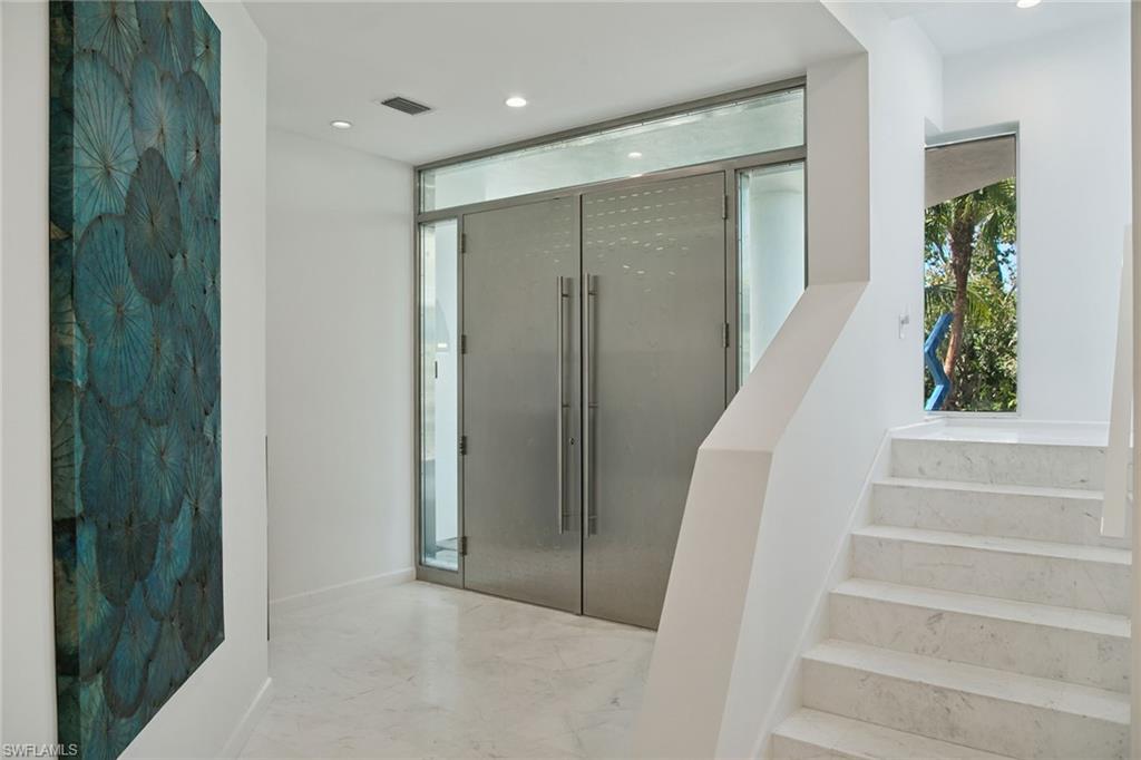 An architectural masterpiece, this Frank Lloyd Wright-inspired estate is a one-of-a-kind sanctuary, seamlessly blending modern luxury, breathtaking design and panoramic natural beauty. Spanning over 4,600 square feet under air, this three-story marvel is in the exclusive Hideaway Beach community, offering unparalleled privacy on a rare lot with no neighboring homes on either side. Designed to bring the outdoors in, the home features floor-to-ceiling glass walls and wraparound balconies, creating a seamless flow between the stunning interiors and the breathtaking surroundings. Starlike skylights on each floor cast a soft, ambient glow, accentuating the home's timeless architectural elegance. This recently updated residence boasts four bedrooms plus a den and four beautifully appointed baths plus a first-floor media room. The chef’s kitchen is a showpiece, featuring a gas stove with warming oven, new Wolf appliances and sub-zero refrigerator with refrigeration drawers! An eye-catching blue glass backsplash with luxurious Caesar stone quartz countertops make this kitchen breathtaking complete with the Star-like skylight above! A chef's dream come true! Italian white Carrara marble floors add an air of sophistication, flowing throughout the expansive living spaces. The updated bar area with an oversized wine cooler makes entertaining effortless, while the open dining space showcases mesmerizing panoramic views. Dual laundry rooms, one in master bath and one in second master bath, provide ultimate convenience. The huge five-car garage offers ample space for car enthusiasts and extra space for Golf cart! Outside, the resort-style pool and spa create a private oasis for relaxation. The crown jewel of this extraordinary home is an incredible rooftop deck that offers un- parallel 360-degree views of Marco Island. From this exclusive vantage point, you'll never miss another sunrise or sunset, with breathtaking beach and gulf views stretching as far as the eye can see. A masterpiece of design and luxury, this home is more than just a residence, it’s an experience, an invitation to live in harmony with nature while enjoying the finest in modern living. * All windows may not be Miami Dade Impact windows*