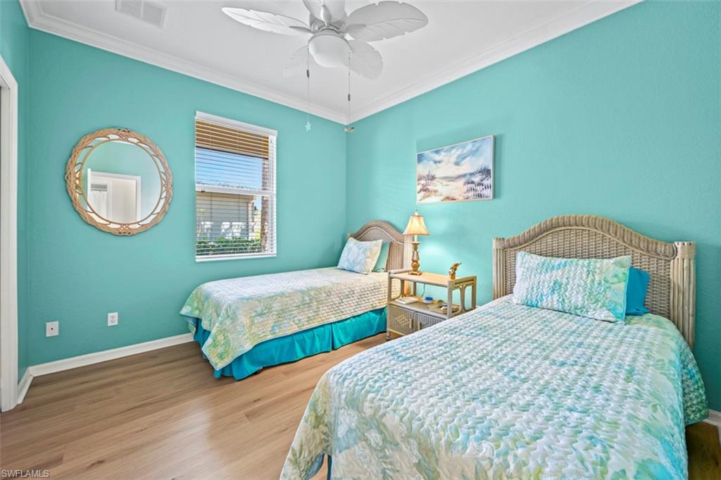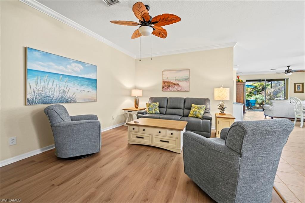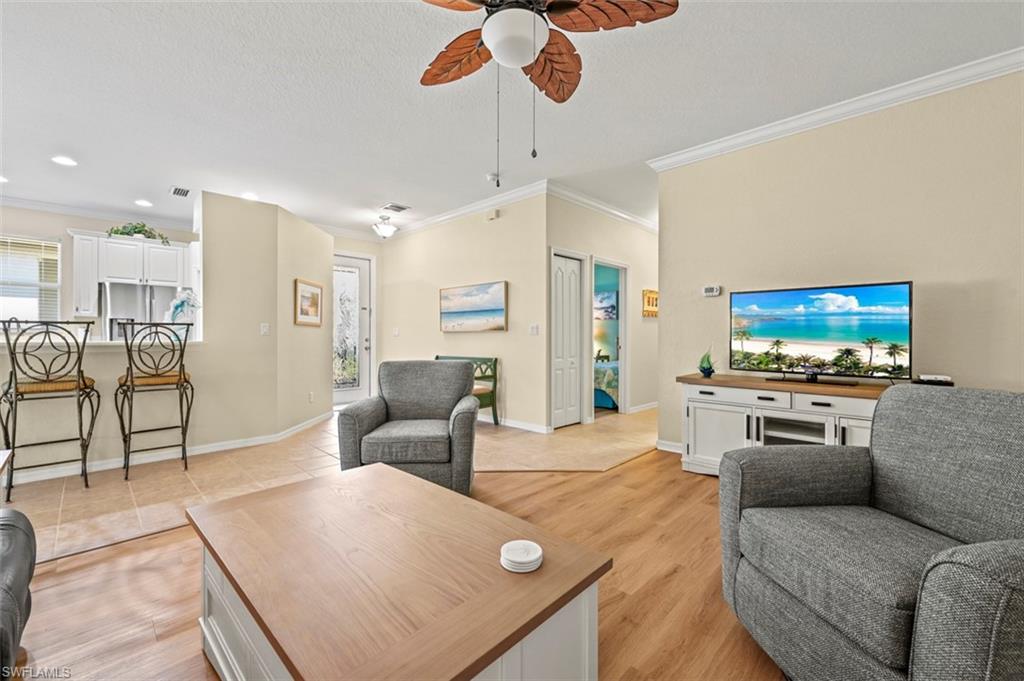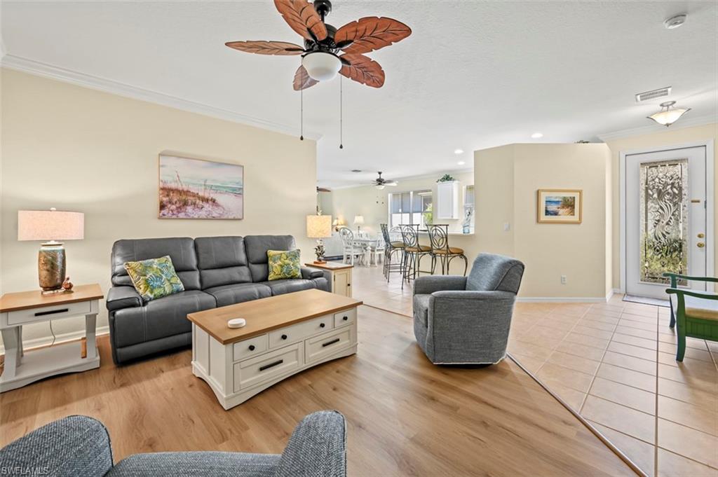 Ready for resort-style living without the resort-style price tag? This spacious twin villa, boasting over 1600 sq ft, is your golden ticket! Imagine: 2 roomy bedrooms, 2 baths, a 2-car garage, AND a bonus space that's begging to be your den, office, or even a 3rd bedroom! Yes, really! Sunlight floods the open floor plan, perfect for entertaining. Whip up culinary masterpieces in the upgraded kitchen, complete with stunning quartz countertops and newer appliances. Sip your morning coffee in the screened-in front entry with panoramic screening – pure bliss! Enjoy the Florida sunsets on your extended lanai, also with panoramic screening, overlooking the gorgeously landscaped yard and a private lake view. Both bathrooms have been completely upgraded for your comfort. Nestled on a quiet cul-de-sac, you're practically steps from the vibrant clubhouse. Low HOA fees and no flood zone means more money in your pocket to enjoy the incredible Bella Terra lifestyle. We also have a newer A/C and water heater for peace of mind. Whether you're a snowbird seeking sunshine or a family craving comfort, this villa is a MUST-SEE. The 999 acre Bella Terra community features 400 acres of conservation preserves and 100 acres of lake encompassing a resort-style clubhouse, a 24-hour fitness center, engaging activities like bingo and boot camp, water aerobics, poker, and food truck nights for a vibrant social life. Every member of the family will find something to enjoy, from the resort-style pool and spa to the secured, shaded children's play area. Sports enthusiasts can partake in sand volleyball, tennis, pickleball, basketball, softball, bocce ball, or even try out the in-line skate rink. Find solace in the peaceful butterfly garden. Bella Terra is a place you'll be proud to call home.