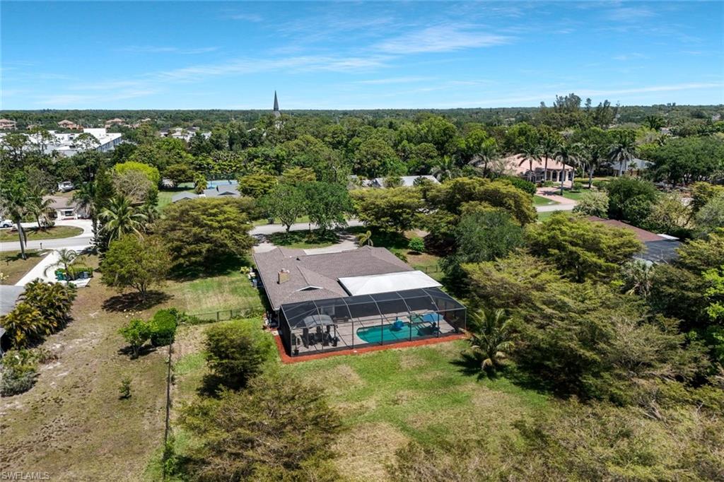 Discover this beautiful spacious home in the highly sought-after Four Seasons neighborhood in North Naples. Situated on almost 1 acre, this stunning property offers privacy, convenience and an unbeatable Florida lifestyle—all with no HOA fees! Step outside to your expansive south-facing lanai, where a heated pool and hot tub with LED lighting await. New roof and impact windows installed in 2021. The caged outdoor oasis is perfect for relaxing or entertaining year-round. Inside, the home boasts two master suites with split-bedroom design, ideal for multi-generational living or hosting guests. The kitchen is a chef’s dream, featuring an oversized island with exotic granite, a wine fridge, and a cozy eating area. All this, just minutes from Naples’ beautiful beaches, top-rated schools and fine dining.