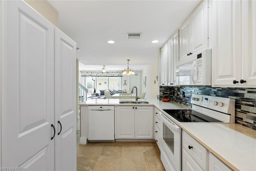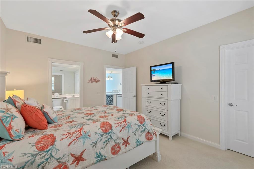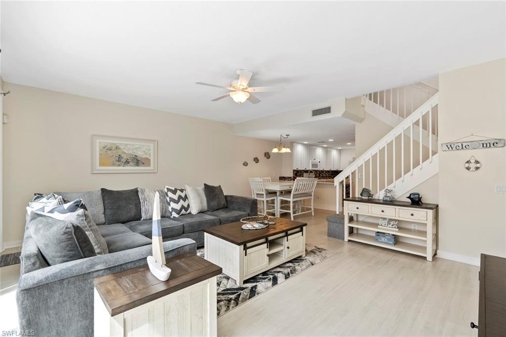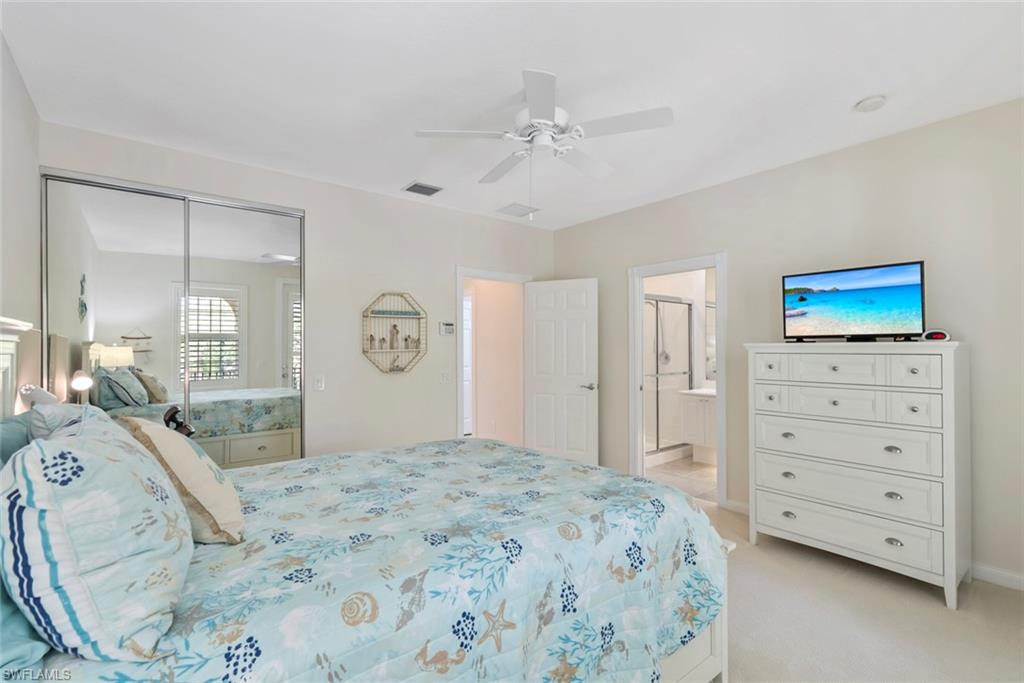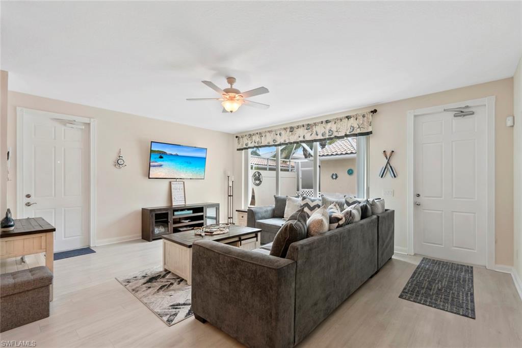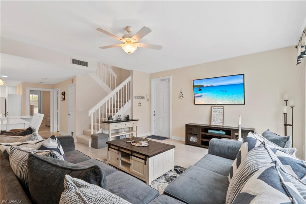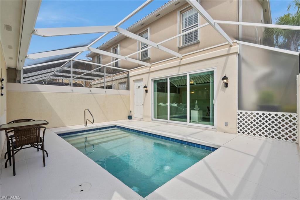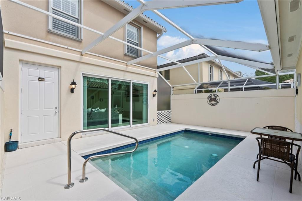 Light, Bright & Thoughtfully Designed Townhome in Village Walk of Bonita Springs, Florida with 2 car garage! Step into effortless Florida living with this meticulously maintained, turnkey-furnished townhome in the highly sought-after Village Walk of Bonita Springs. Designed for both style and functionality, this home is light, bright, and airy, with a flowing floor plan that makes every space feel inviting. The beautifully updated kitchen features white quartz countertops, a stunning glass backsplash, and plantation shutters throughout. Enjoy ultimate privacy with your own courtyard oasis with a heated saltwater pool, perfect for relaxing or entertaining. The versatile ground-floor room offers flexibility as a bedroom, den, or TV room, while both upstairs bedrooms are spacious primary suites, each with its own walk in closet and en-suite bath. Thoughtfully decorated and impeccably maintained, this home is truly move-in ready and storm/security compliant with impact sliding doors and accordion shutters. Located just steps from the amenities center, you'll have access to an array of resort-style features, including a resort pool, lap pool, fitness center, tennis center, pickleball, on-site restaurant, fuel station, car wash, post office, and more. Stroll along the miles of scenic walking paths that weave through the community, including a charming butterfly garden. This stunning home offers the perfect blend of comfort, convenience, and Florida living at it's finest - 20 to 30 minutes to Gulf beaches and RSW International Airport.