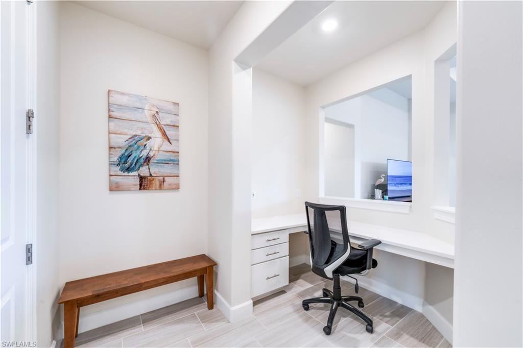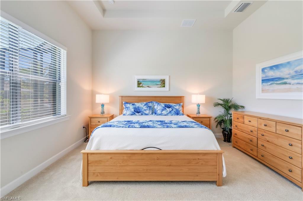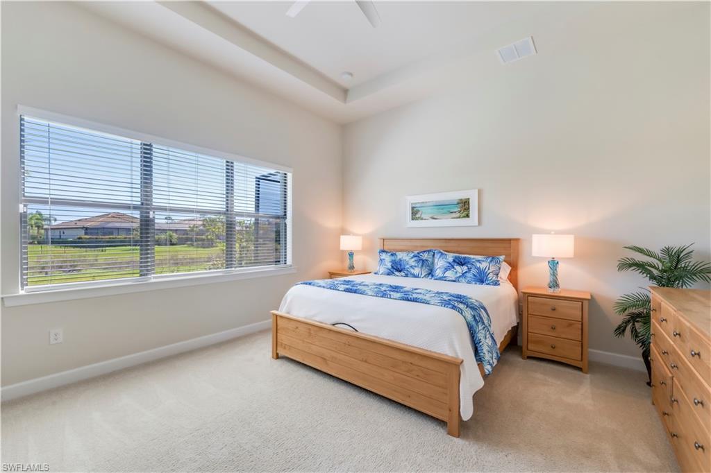 LIVE IN PARADISE! This beautifully upgraded PULTE CREEKVIEW MODEL offers 2,491 sq. ft. of thoughtfully designed single-story living, with 4 bedrooms, 3 bathrooms, & a tranquil outdoor oasis! Perfectly blending modern finishes with a clean coastal aesthetic, this home features SOARNG 12-FOOT CEILINGS, a versatile JUNIOR SUITE ideal for in-laws or guests, HURRICANE SHUTTERS & NOT IN A FLOOD ZONE for peace of mind. Plus, a TRANSFERABLE PULTE HOME WARRANTY adds extra security for the new owner. Arrive to pristine curb appeal, and a spacious THREE CAR GARAGE with EPOXY-COATED FLOORS & OVERHEAD STORAGE. Inside, the living room offers a luxurious COFFERED CIELING! The gourmet kitchen boasts PREMIUM WHITE CABINETRY with PULL-OUT SHELVING, a PANTRY WITH CUSTOM SHELVING, and sleek BUILT-IN STAINLESS STEEL APPLIANCES. The EXPANSIVE ISLAND provides ample prep space and seating with EXTRA STORAGE CABINETS AT BOTH ENDS. The light-filled dining area flows effortlessly to the outdoor space, offering beautiful views of the tropical lanai. Just off the living space is a personal planning area - use as a home office, coffee/wine bar, or organized drop zone! The primary bedroom is a true retreat, complete with a TRAY CEILING, large windows, and serene backyard views. The ensuite bathroom features DUAL SINKS, a FRAMELESS GLASS SHOWER, and a generous WALK IN CLOSET. The JUNIOR SUITE sets this home apart! ALMOST LIKE HAVING A SECOND PRIMARY SUITE! Perfect for family or guests who desire their own private sanctuary. This suite includes a spacious bedroom, an ensuite bathroom with a GLASS STEP IN SHOWER and GRAB BAR FOR SAFETY, and a large WALK-IN CLOSET. Moving outdoors, the EXTENDED SCREENED LANAI is perfect for enjoying morning coffee, hosting gatherings, or relaxing while taking in the peaceful backyard views. For added peace of mind, the home includes a WHOLE HOME SECURITY SYSTEM and EASY-CLOSE HURRICANE SHUTTERS on windows. Living in The Place at Corkscrew means access to world-class amenities, including a 2-story fitness center, lagoon-style pool with a 100-foot waterslide, and THREE DINING OPTIONS including a café for coffee and ice cream, the Barefoot Bar and Grill for poolside meals and full service indoor dining and the BOURBON BAR where the community comes together every Friday and Saturday nights for cocktails and entertainment. The community also boasts pickleball and tennis courts, bocce ball, sand volleyball, basketball, a dog park, a fire pit area, and more! Imagine cruising the community in your new GOLF CART which is available for separate purchase! Golf enthusiasts will appreciate Old Corkscrew Golf Course, located just across the street. Conveniently located in Estero, between Fort Myers and Naples, you're just 15 minutes from the SWFL airport and 40 minutes from the beach. Local shopping at Miromar Outlets and Gulf Coast Town Center is only 10 minutes away. And a brand new Publix Plaza is just 1 mile East for your everyday shopping needs!